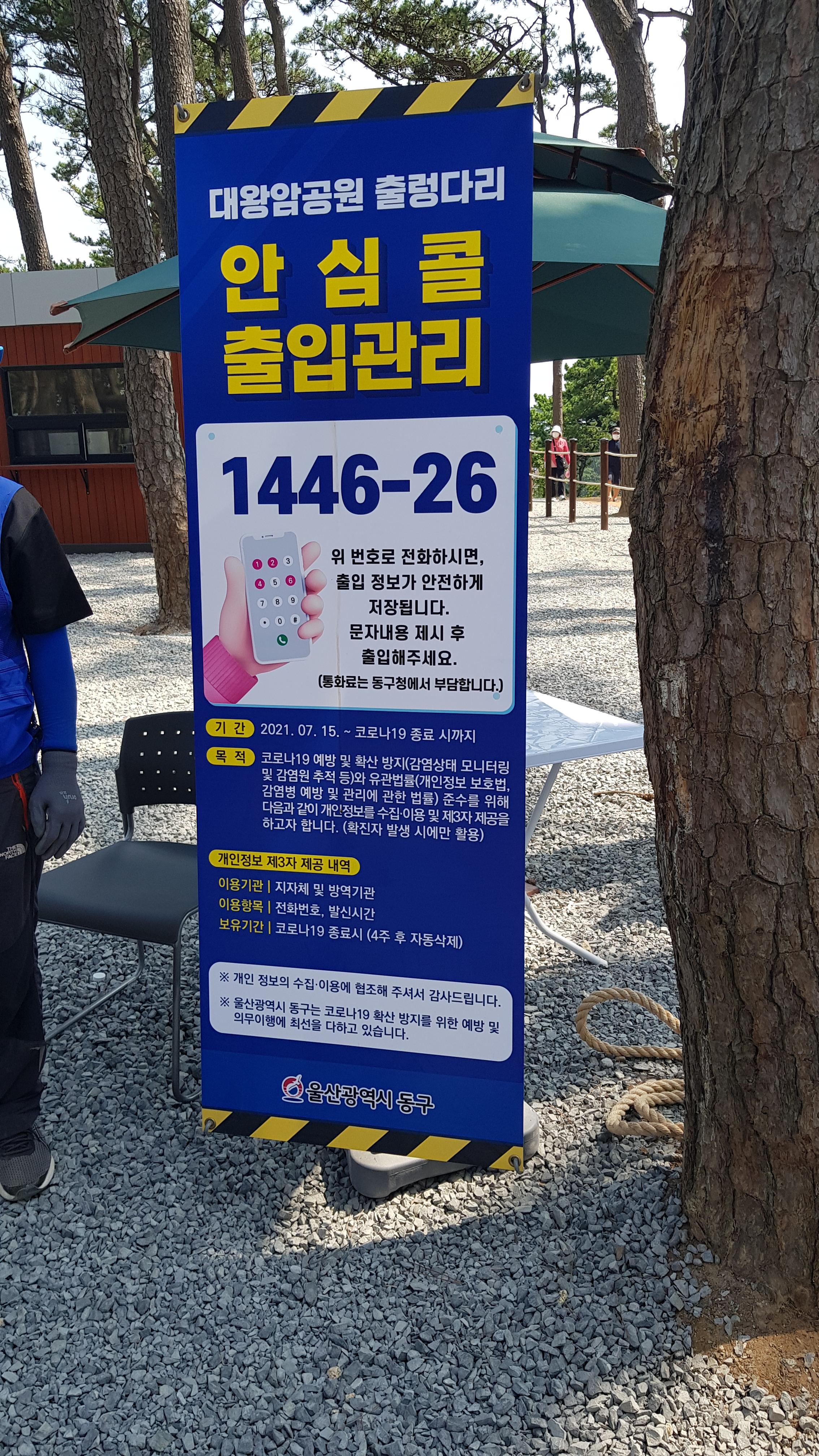 출렁다리 입장전에 안심콜로 전화하면 출입명부작성없이 입장할 수 있다.