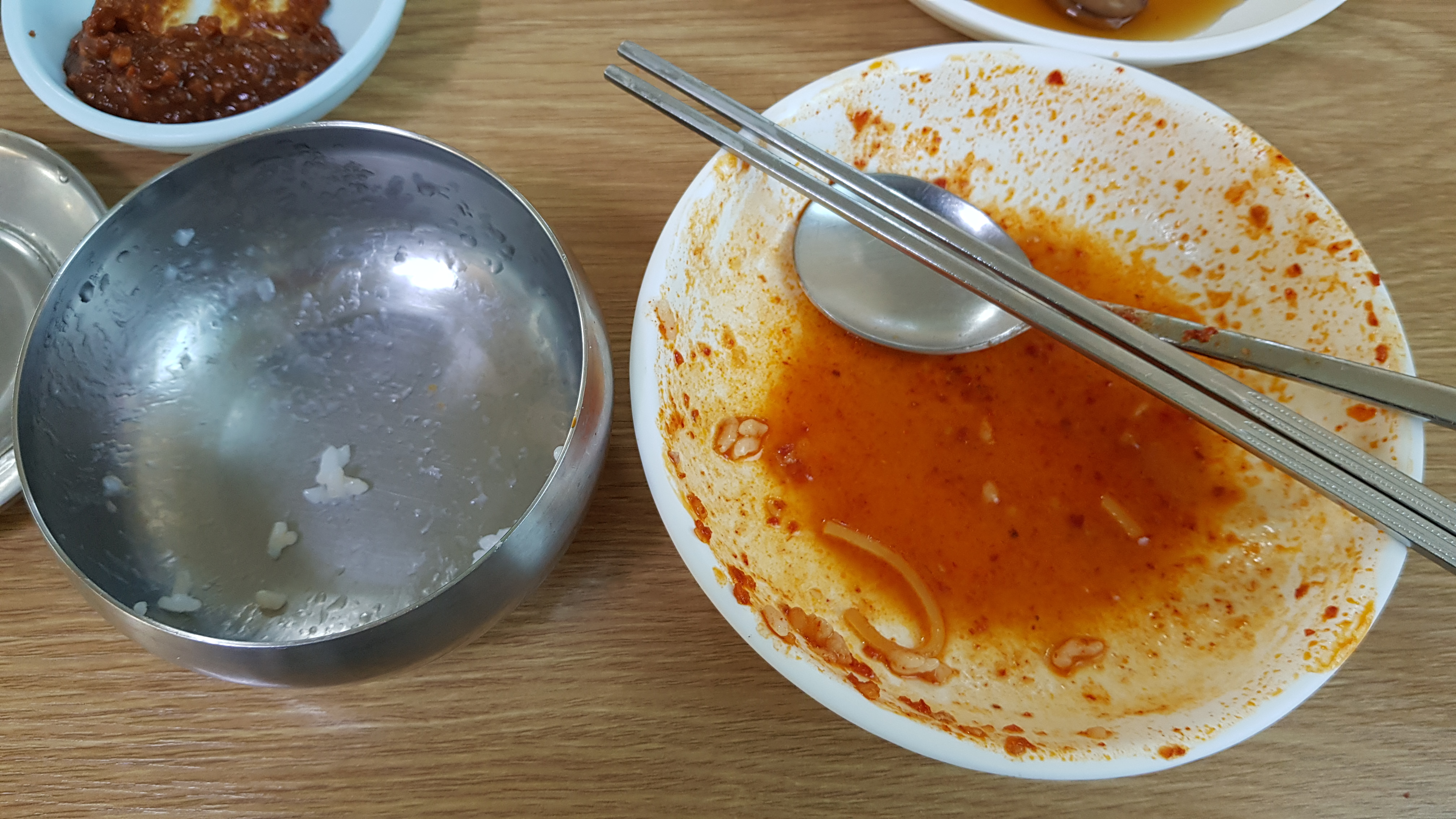 싺싹 긁어 먹은줄 알았는데 지금보니 밥알을 몇개 남겼다.