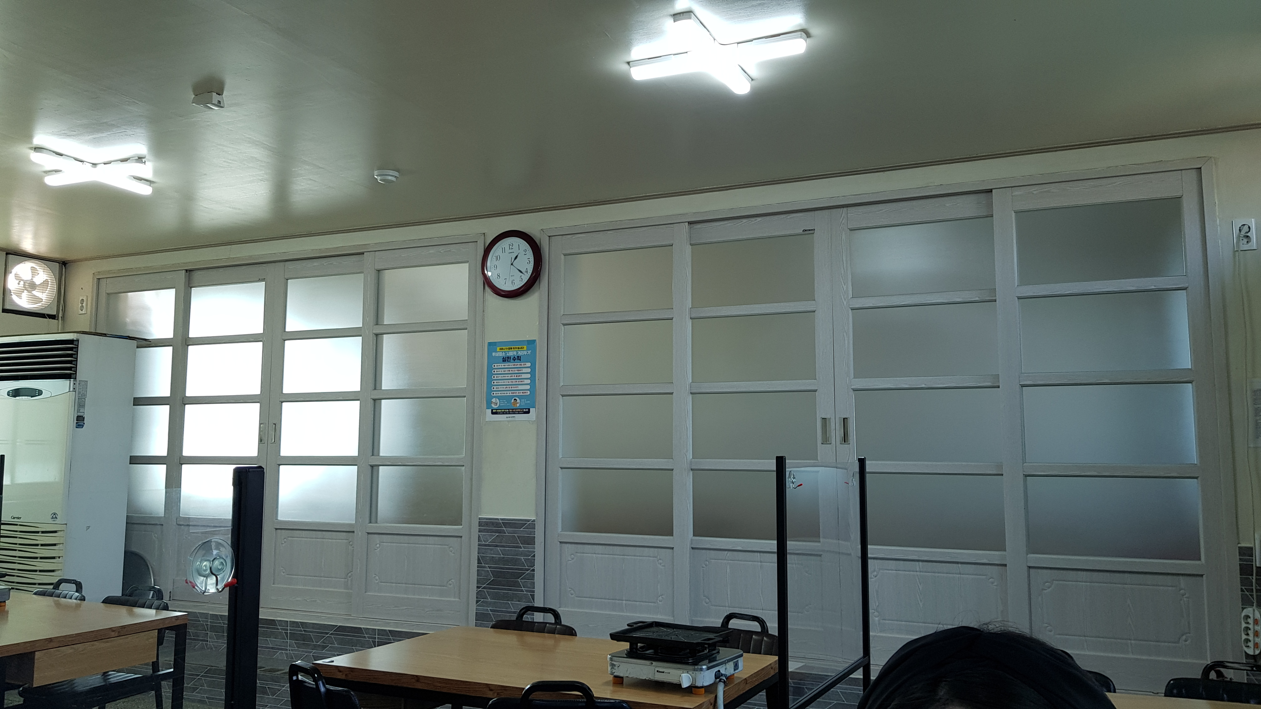 코로나 예방을 위해 테이블 사이마다 칸막이를 해놓았다.
