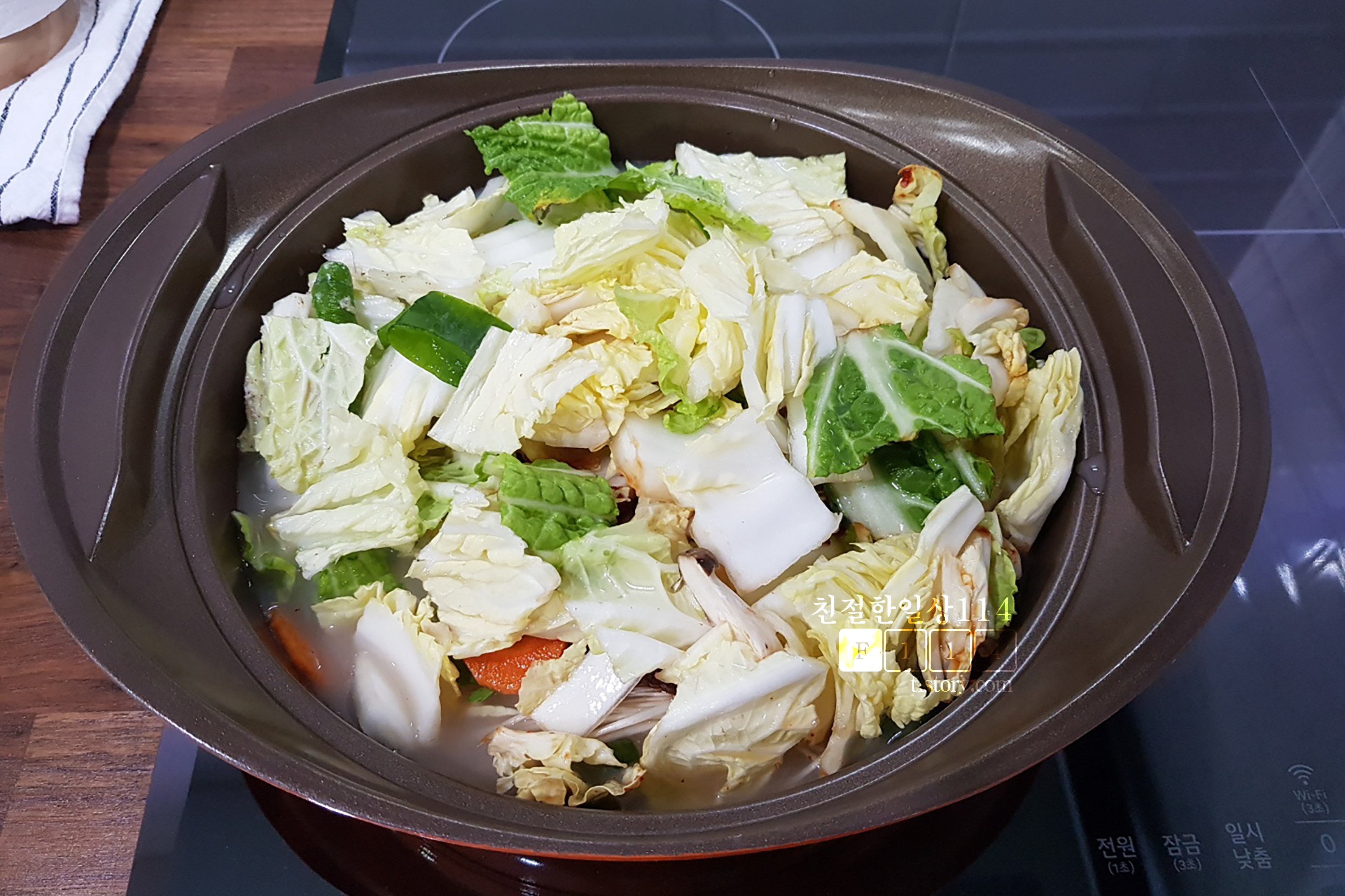 뚜껑을 닫고서 끓기 시작하고 5분정도 더 끓고 뚜껑을 열어본다.
