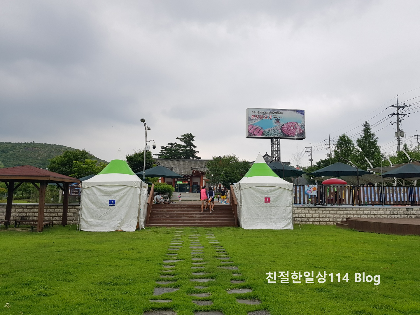 물놀이장에서 보이는 한옥 건물은 '한우 테마관'으로 한우 불고기에 대한 정보를 볼 수 있다고 한다. 들어가 보지는 않는다.