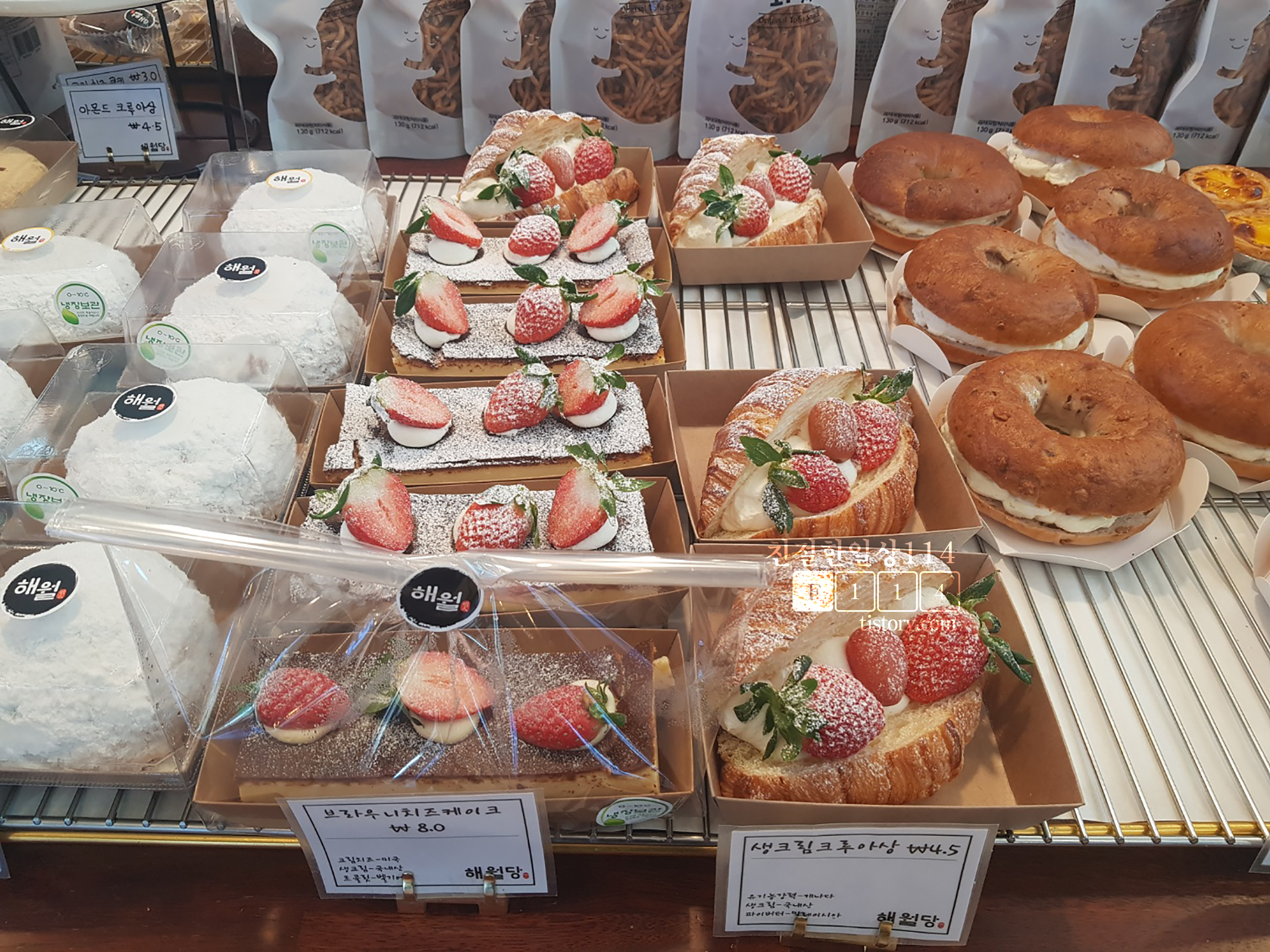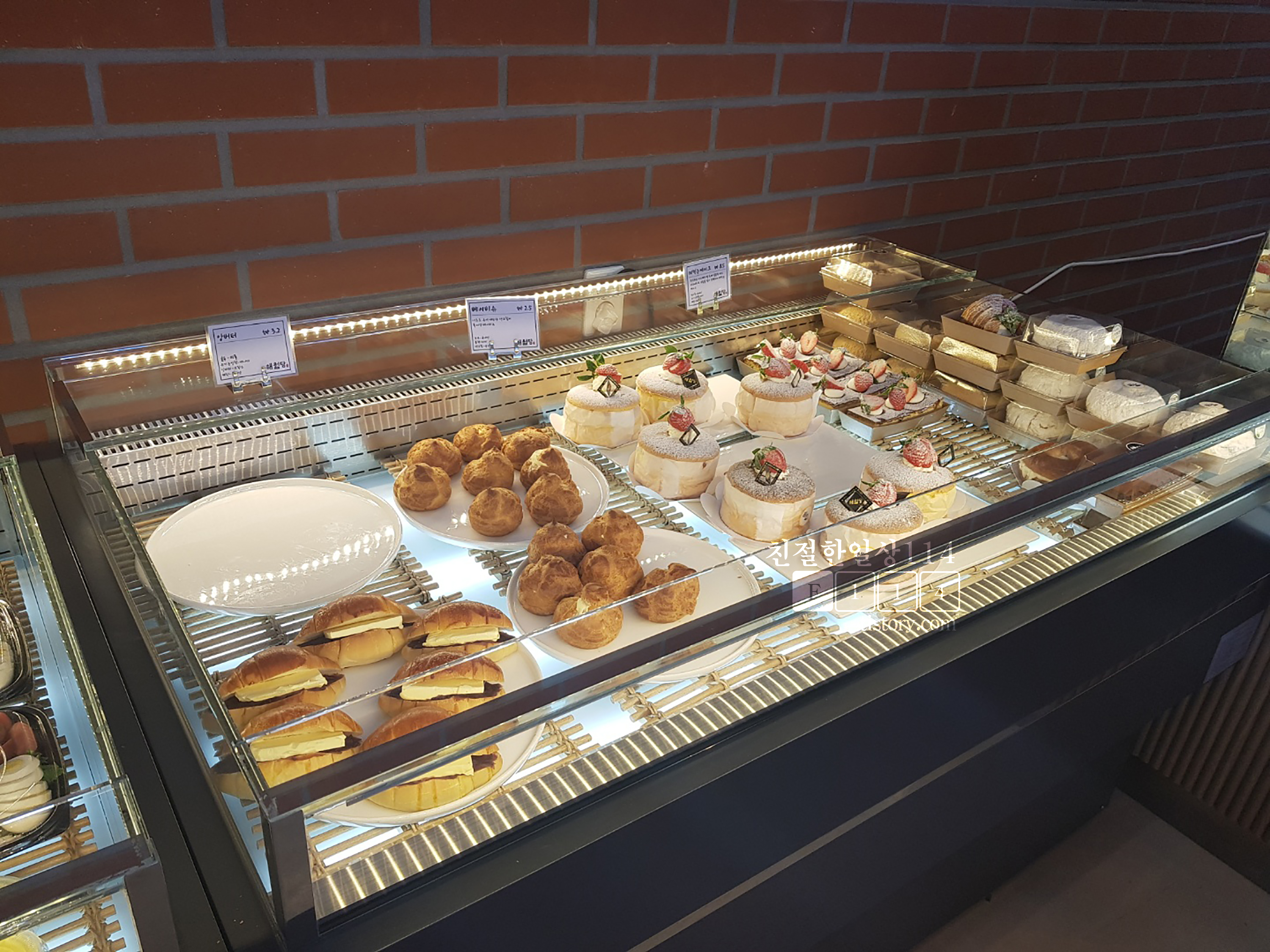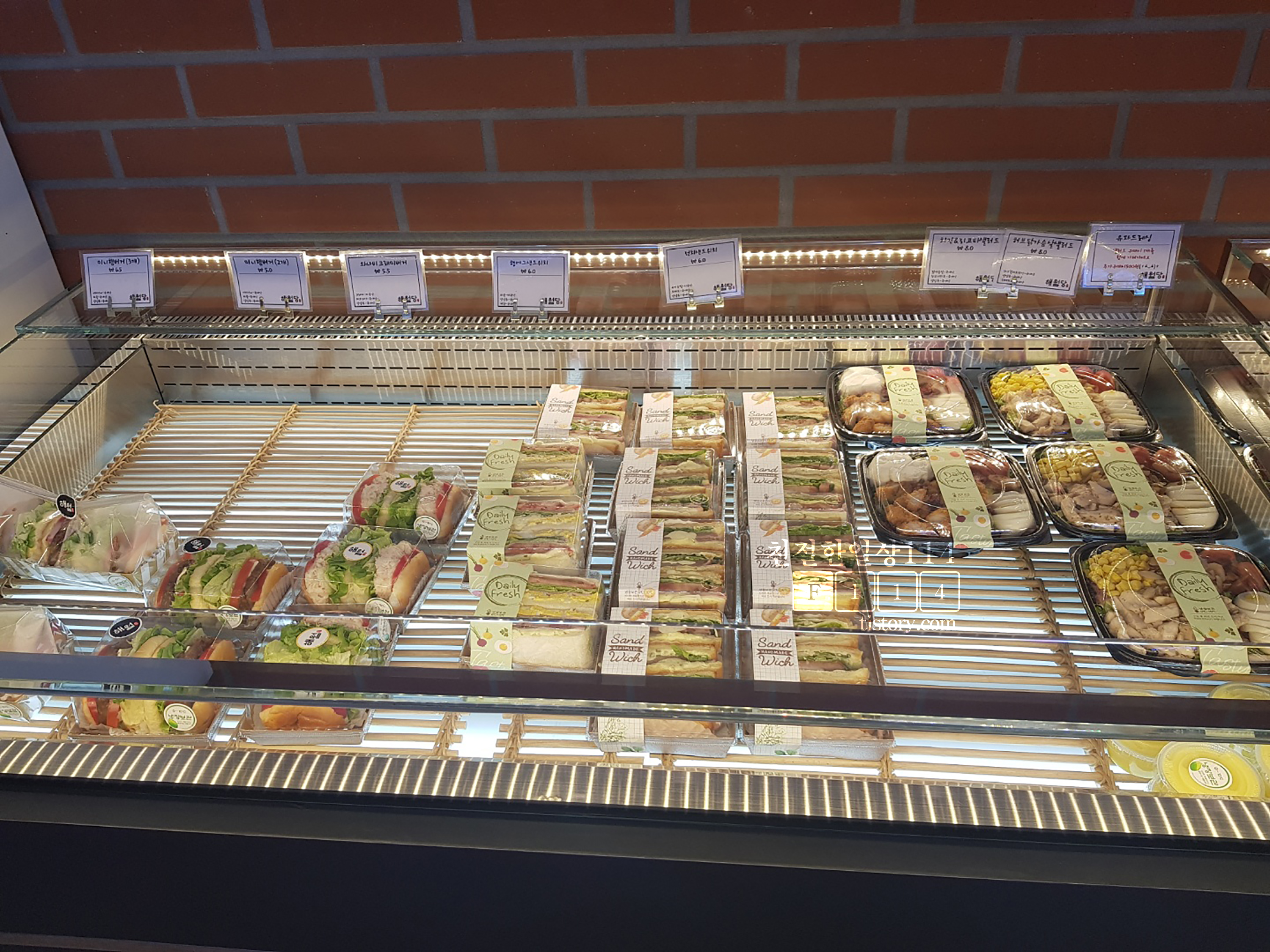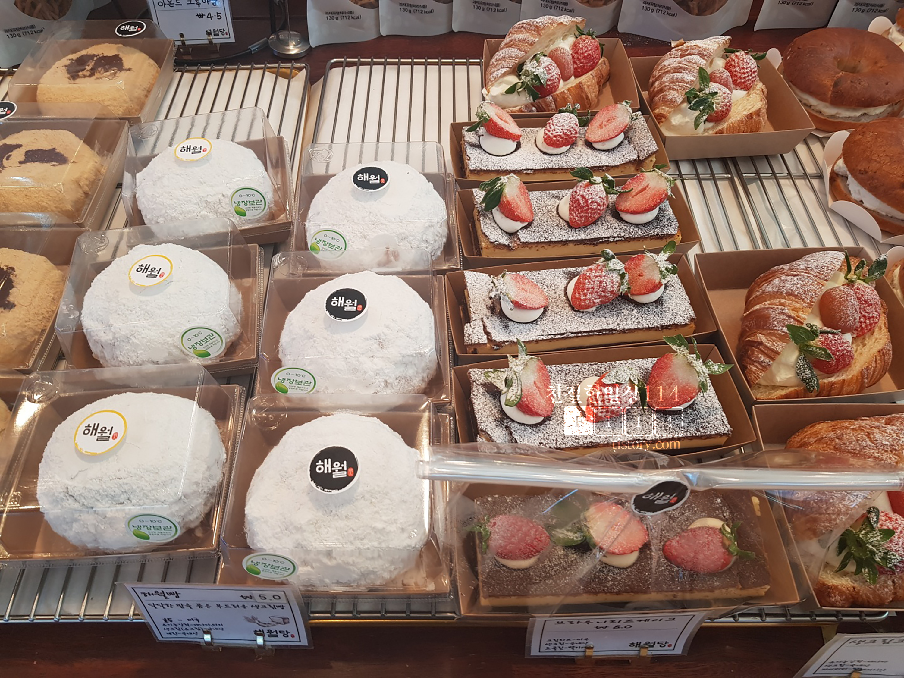 건물 가장 안쪽에는 쇼케이스에 샌드위치류와 케이크가 진열되어있다. 바게트에 찍어먹을 생크림을 사려고 했었는데 해월당에서는 생크림은 팔고있지 않다.