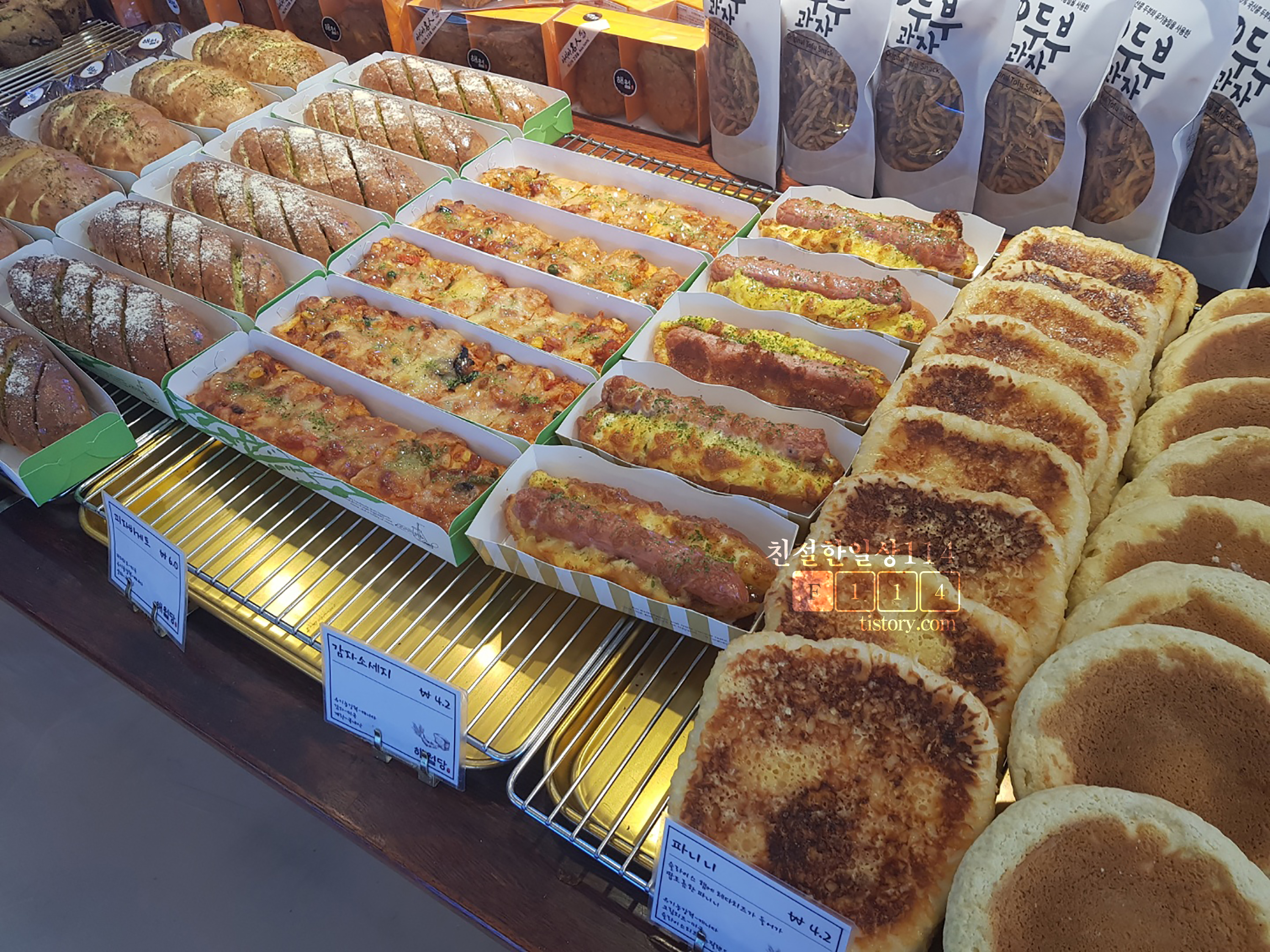 해월당 베스트5 중 위 3개 외 모짜렐라와 치즈퐁듀는 사진에 없다. 치즈가 들어간 빵은 좋아하지 않아서 눈에 들어오지가 않았다. 나머지 진열된 빵들을 사진으로 주욱 남겨본다.