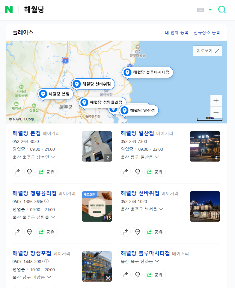 해월당 블루마시티점(산하동): 울산 북구 동해안로 1586