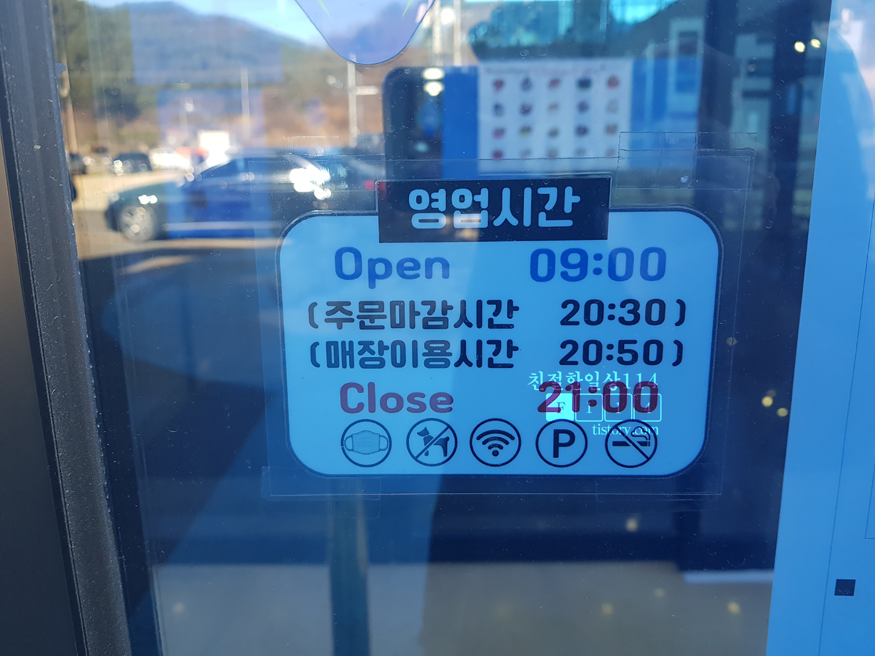 영업시간: 매일 09:00 ~ 21:00 (주문마간시간 20:30 / 매장이용시간 20:50)