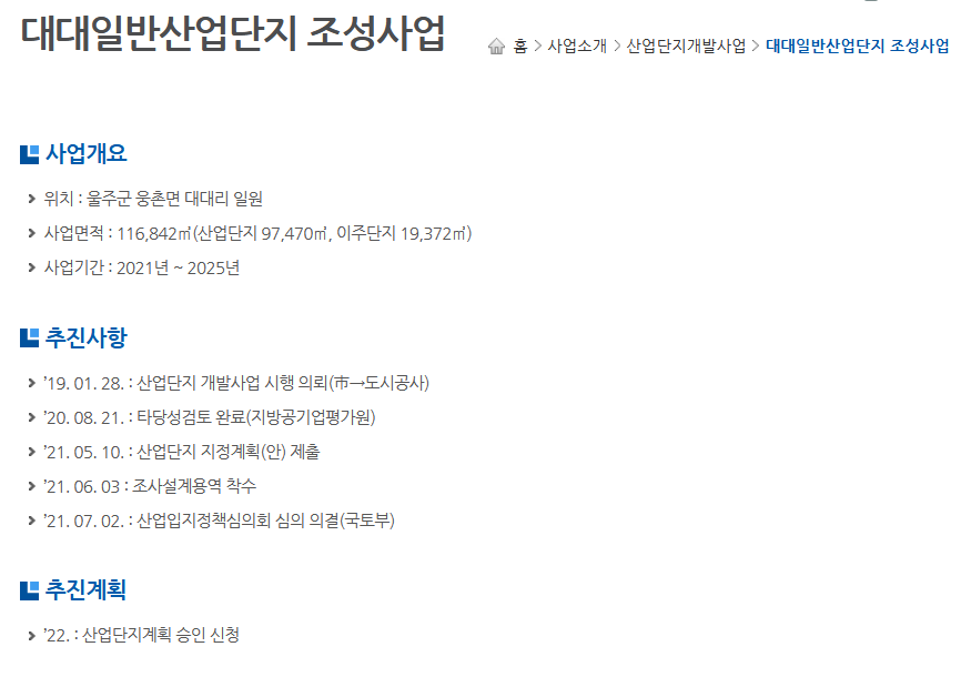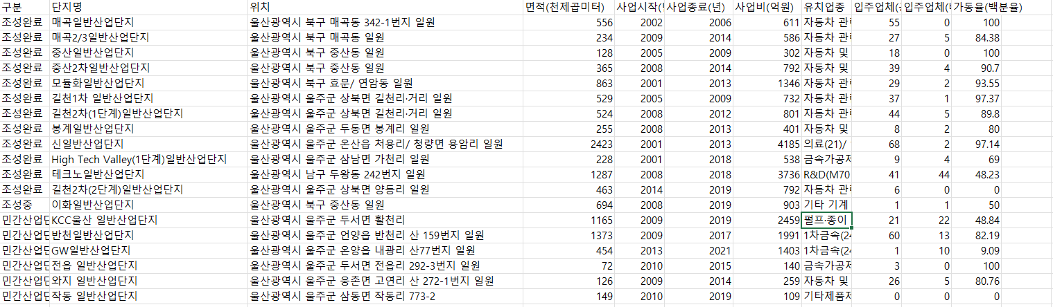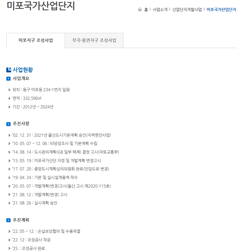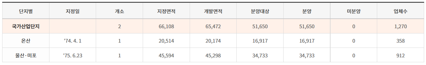 여기까지 온산, 미포국가산업단지 2곳에 대한 세부적인 내용을 사진과 함께 정리해보았다. 이하 기타 산업단지에 대해서도 남겨본다.