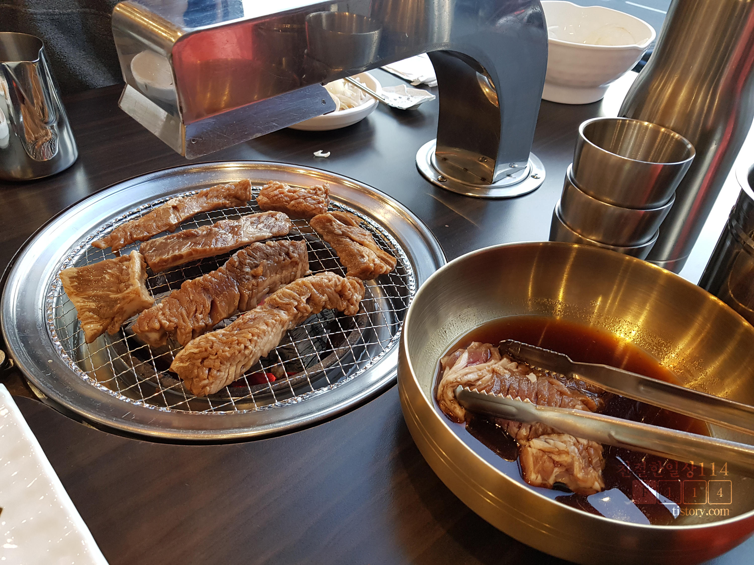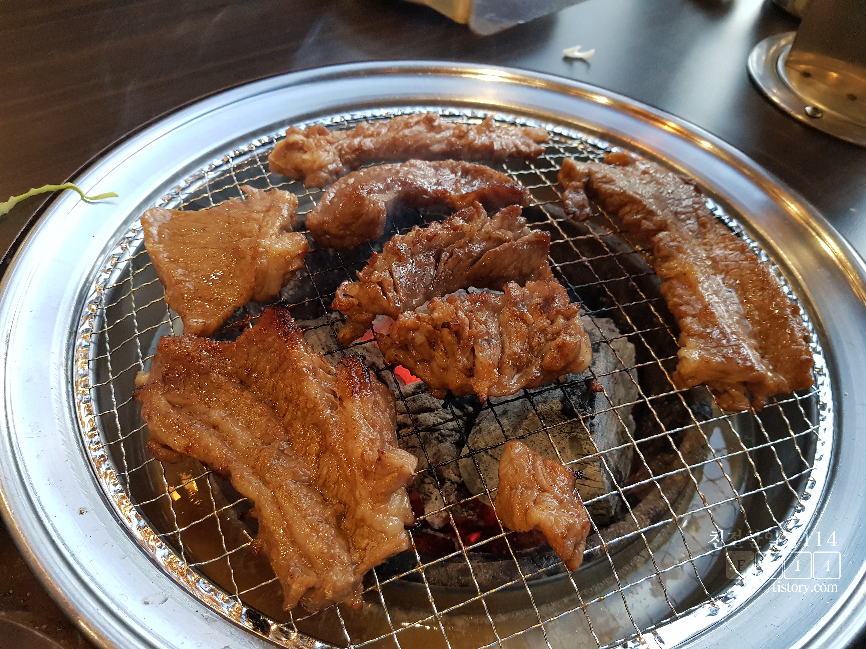 고기가 나왔으니 본격적으로 구워본다. 참고로 굽는 과정 중간까지 밖에 사진을 못 남겼다. 고기가 익고 난 뒤는 필자도 먹고 가족들도 나눠주느라 필름이 끊겨버렸다.
