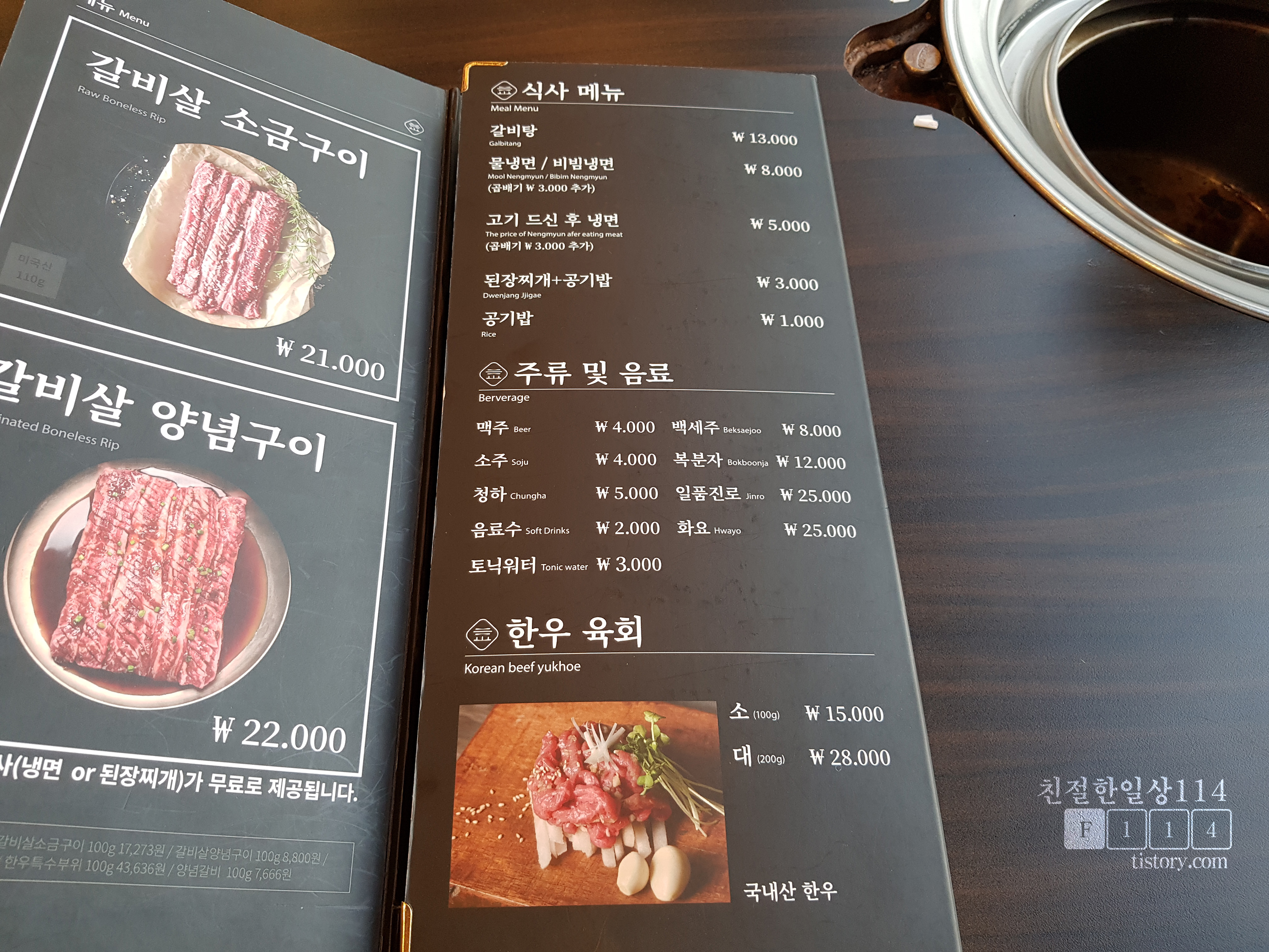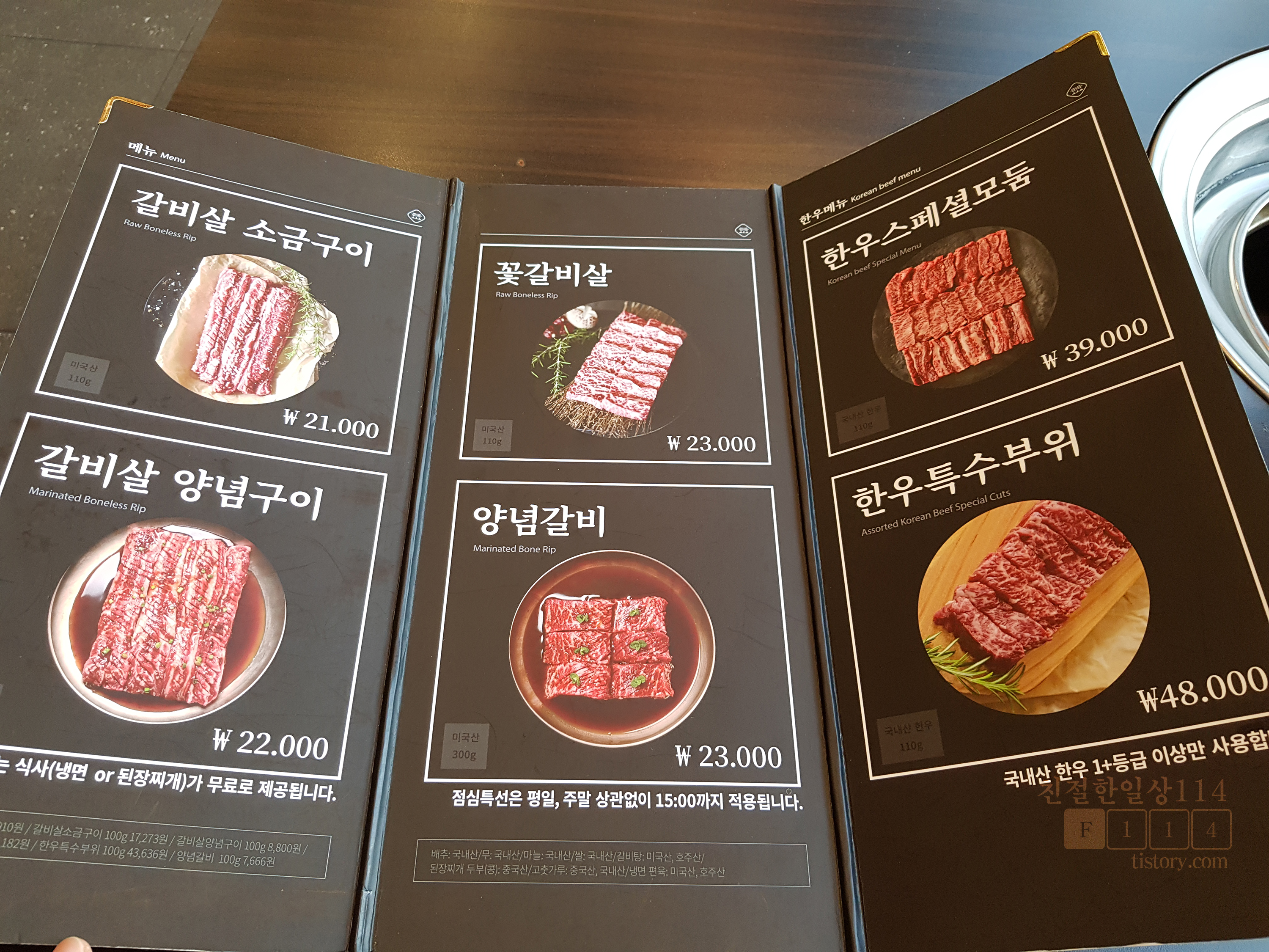 대표메뉴: 갈비살 소금구이 21,000 원 (미국산 110g)