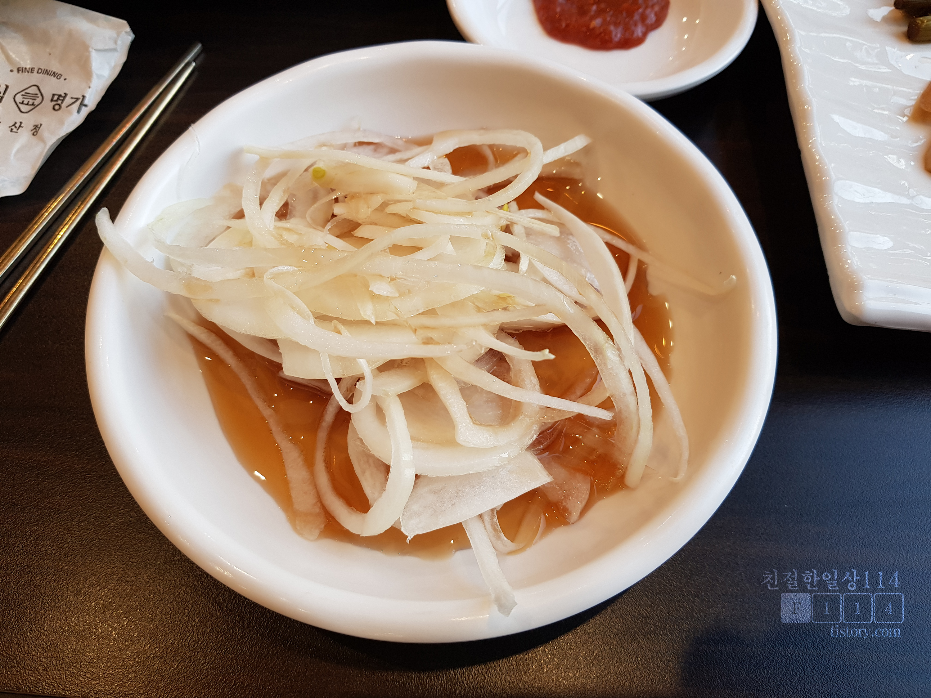 양파 초절임. 이 반찬만 제대로 만들어도 고기의 느끼함과 단맛을 잡아주어 본래 먹던 양 이상을 먹게해 해준다.