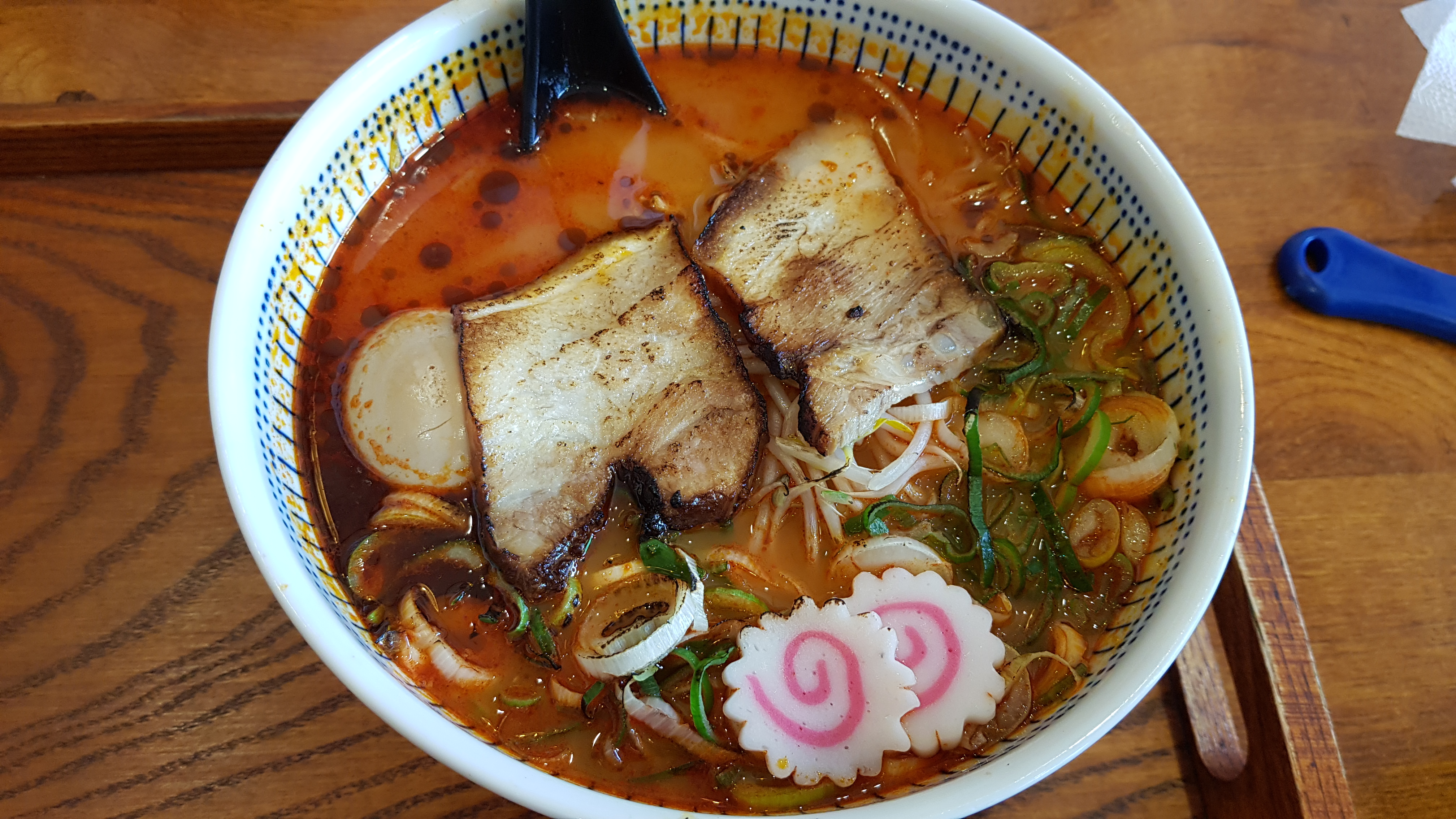 얼큰한 돈코츠라멘의 국물맛도 보았다. 국물을 처음 떠먹었을때 매운맛이 강하게 느껴지며 자극적이게 느껴질 수도 있다. 맵기 조절이 안되기에 매운걸 잘 못 먹는 경우에는 기본으로 먹는것을 추천한다.