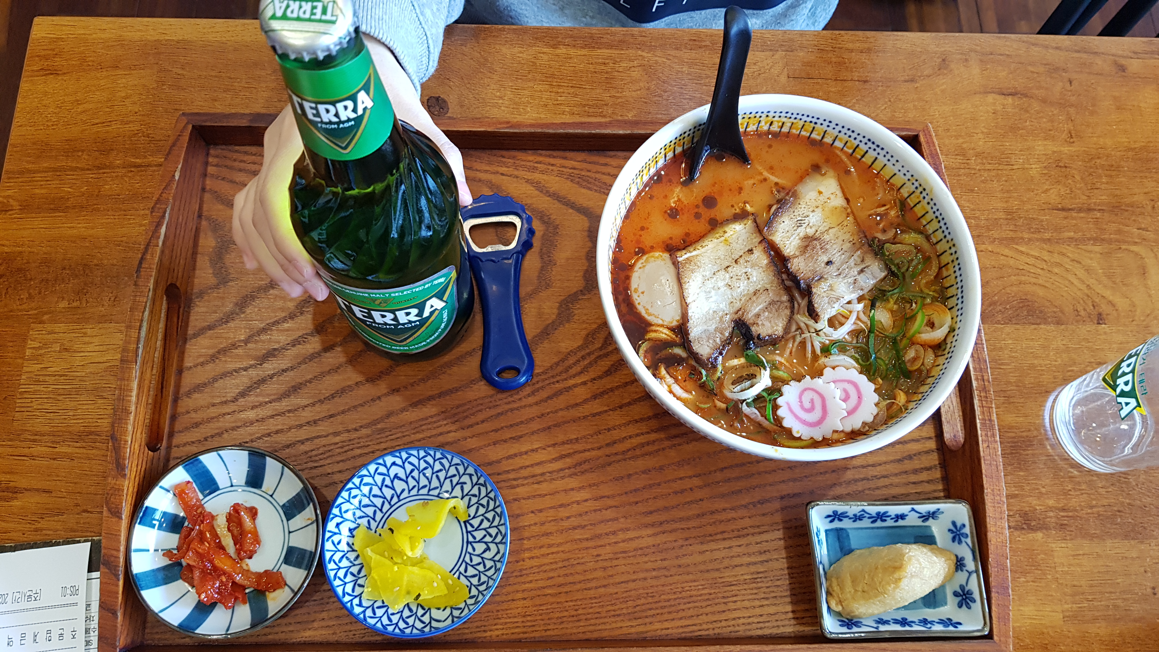 돈코츠라멘 얼큰. 그리고 맥주 한병.