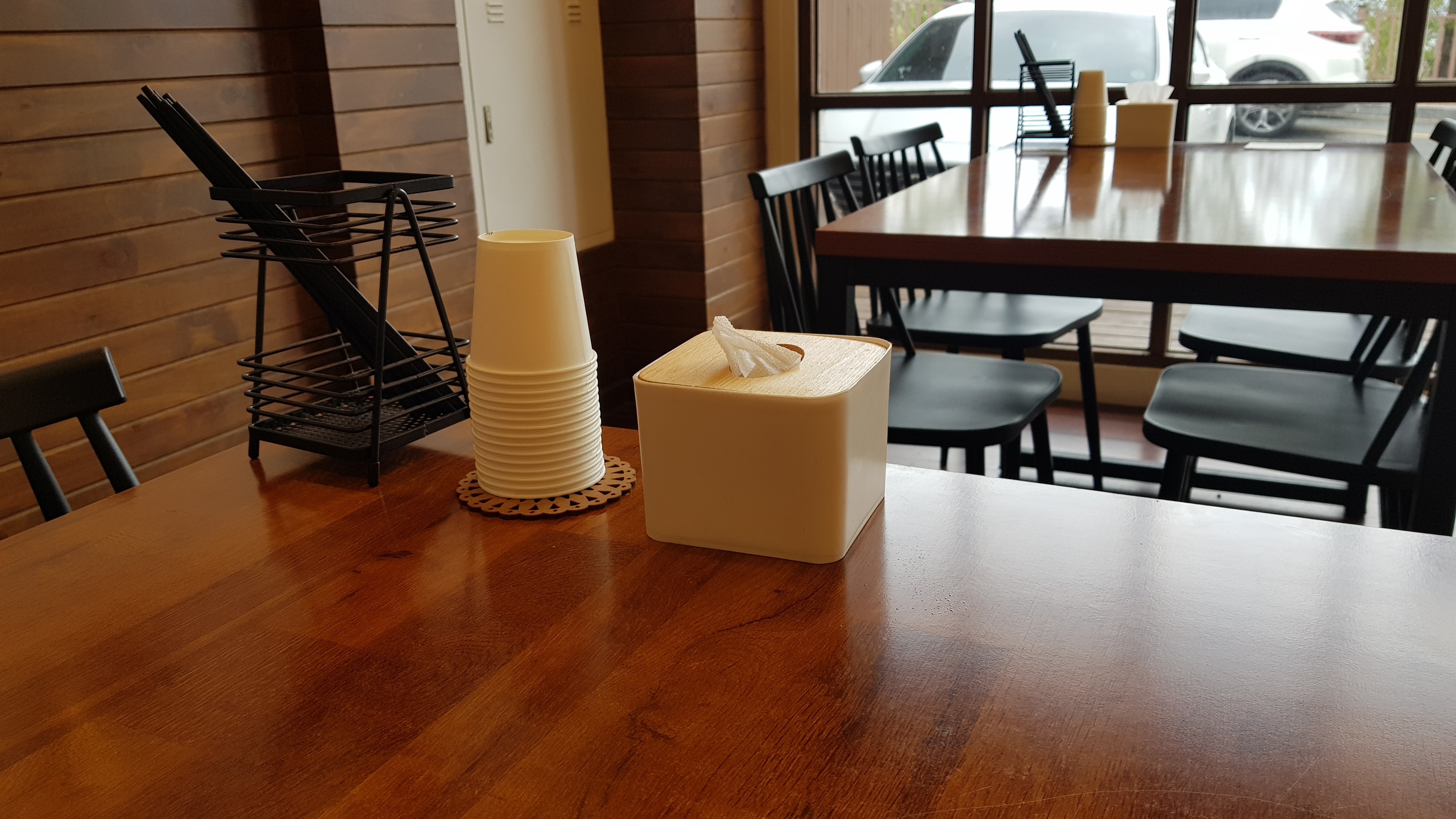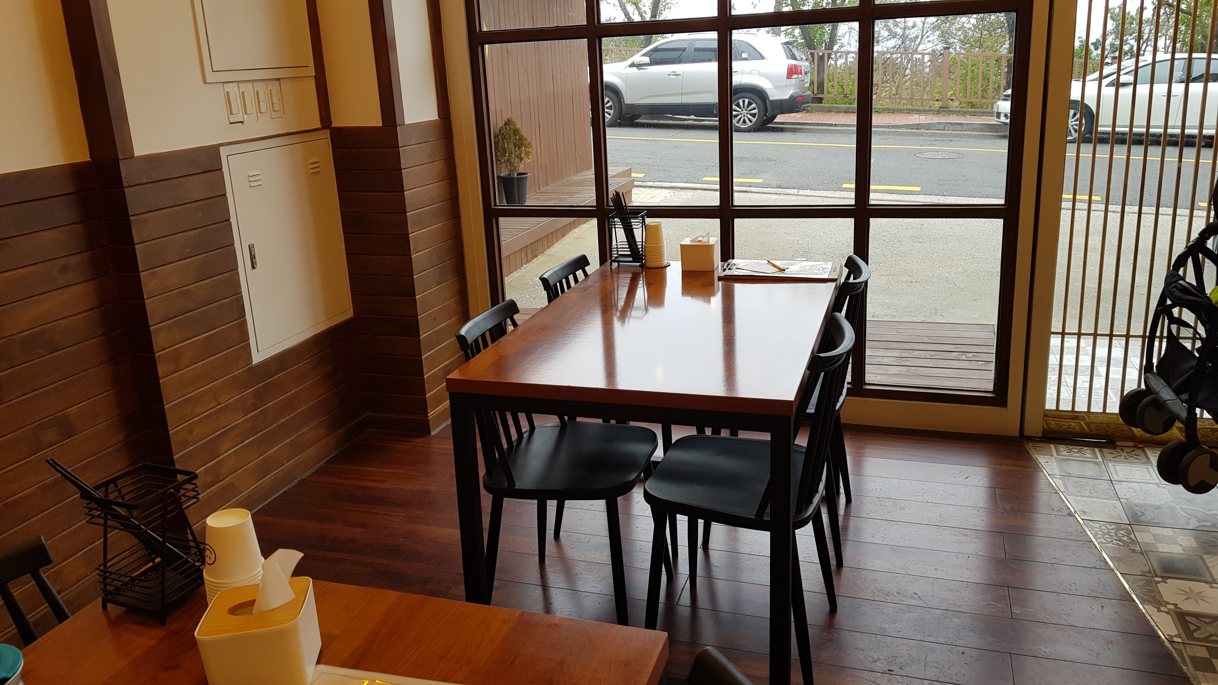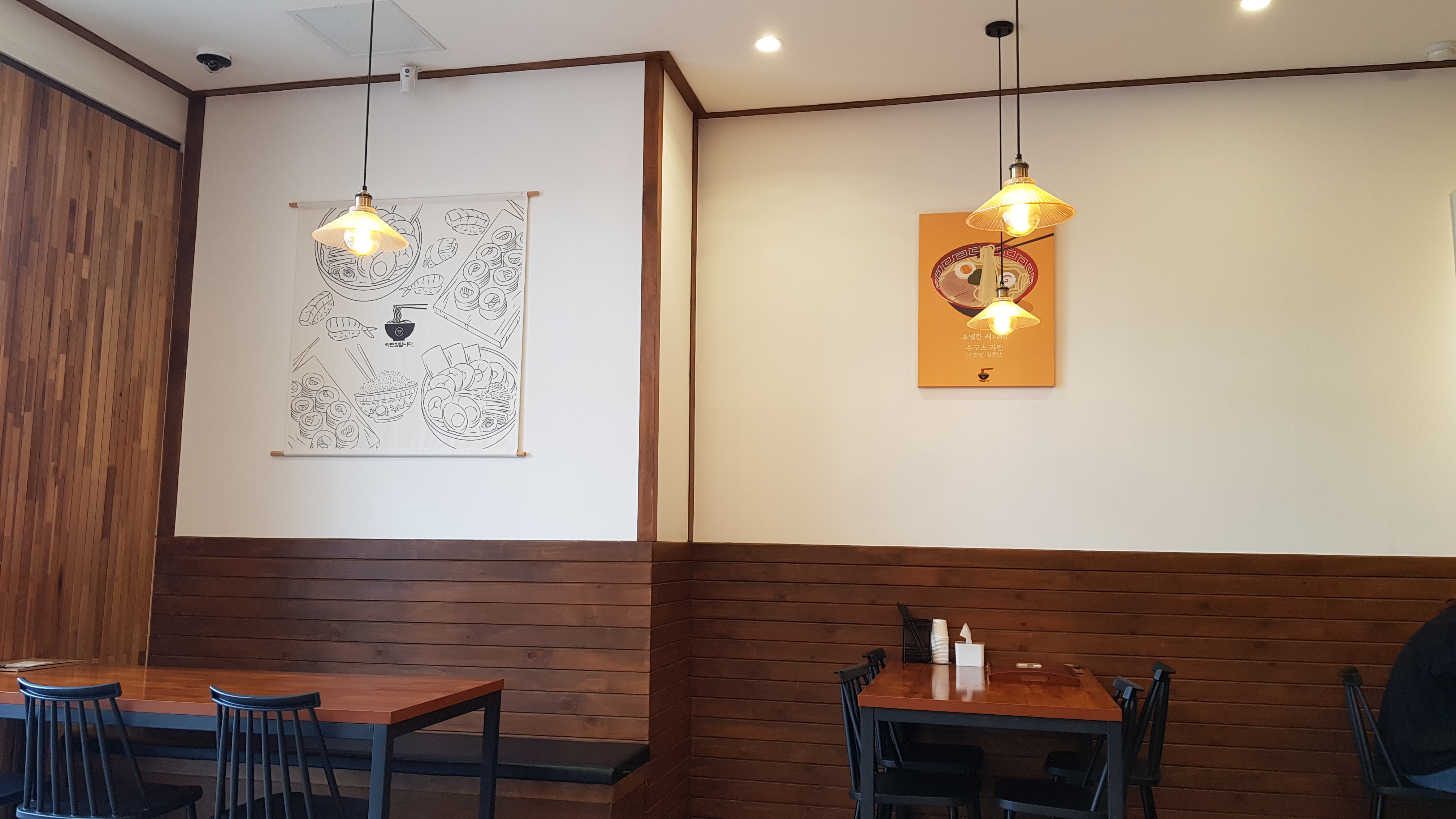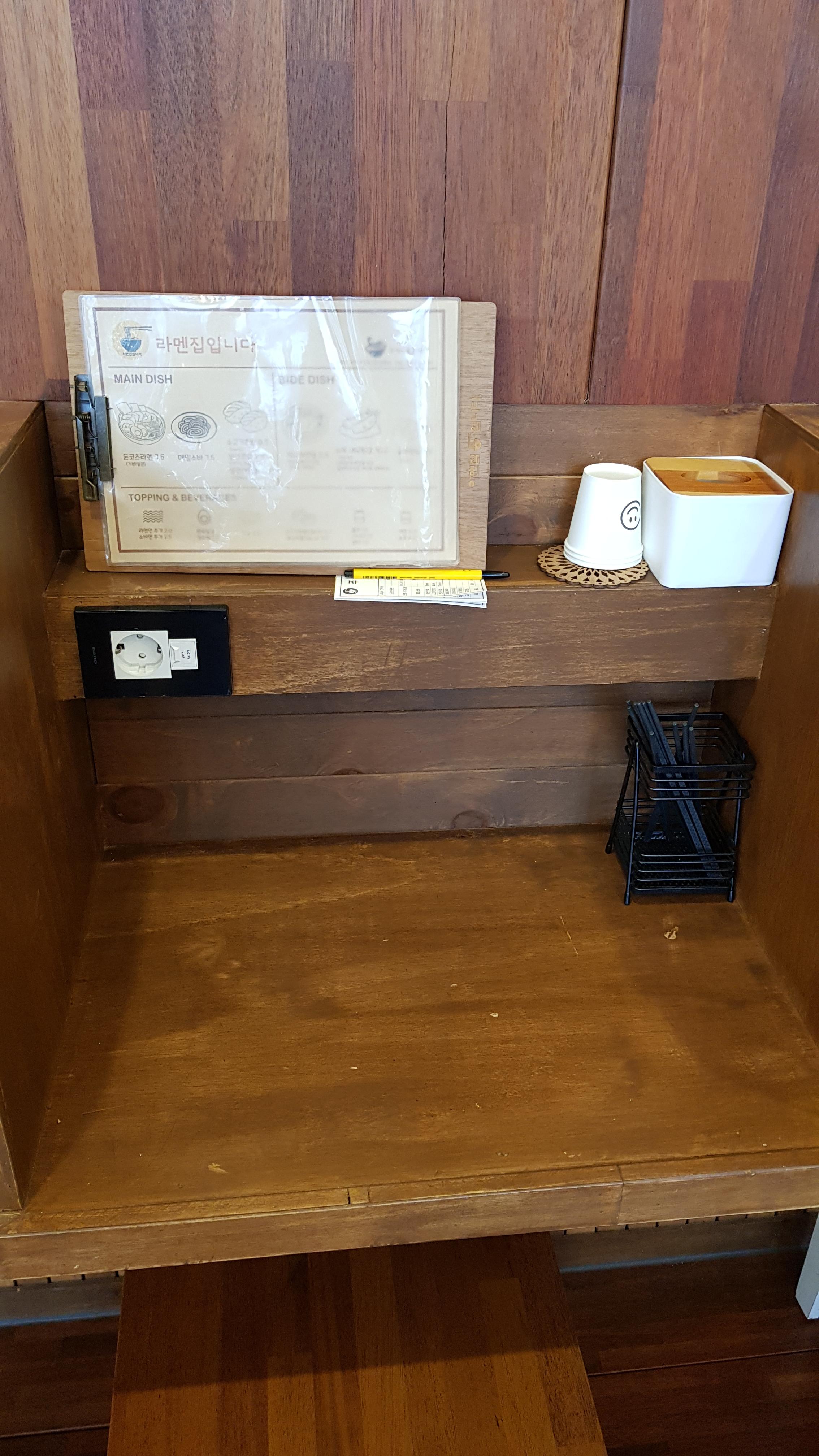 혼자서 와서 부담없이 먹 을 수 있는 1인, 2인 테이블이 마련되어 있다. 코로나로 인한 테이블 사이 방역 칸막이가 따로 필요없는 자리이다.