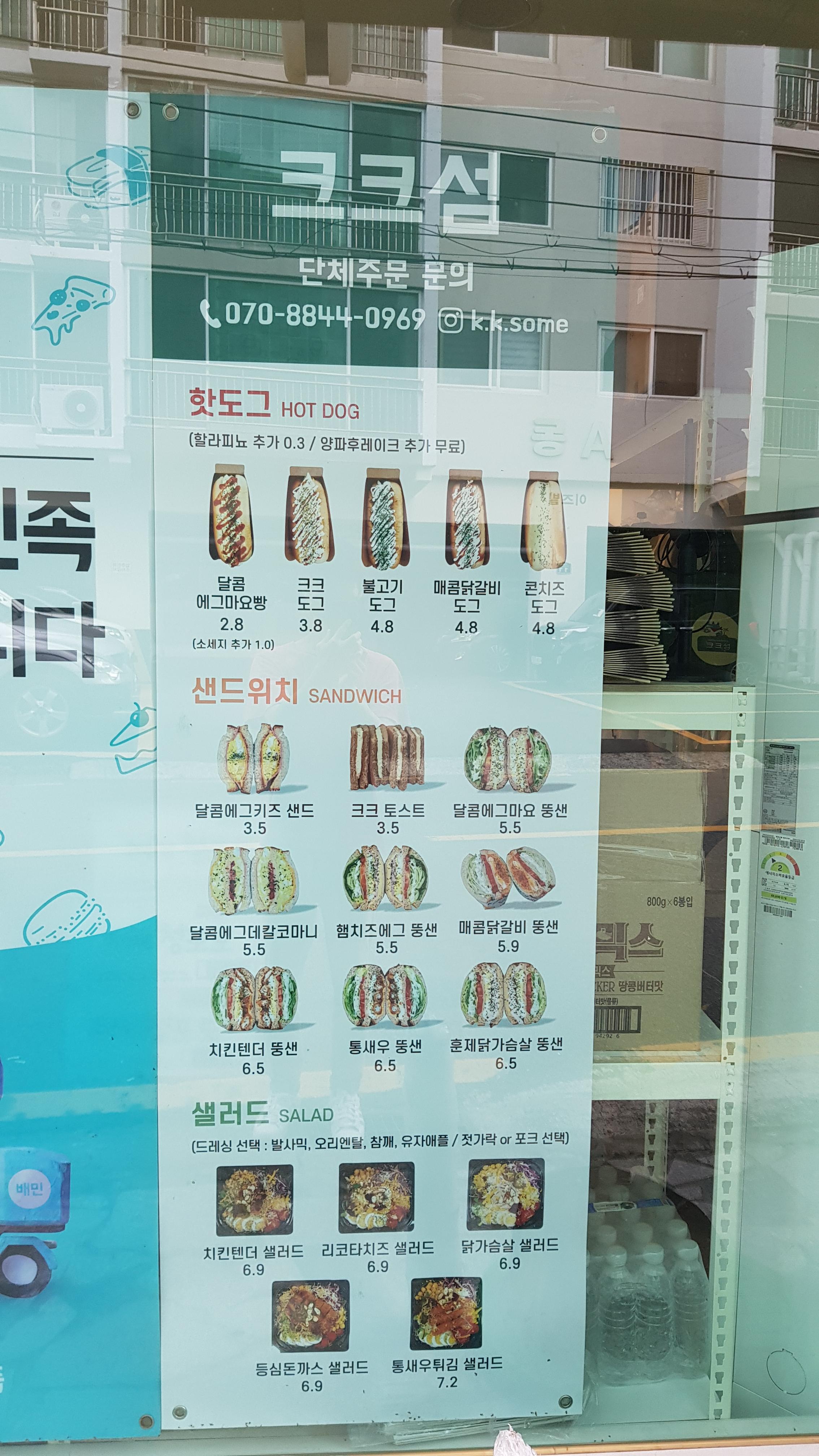 크크섬에서 일주일동안 세번을 주문해서 먹어보며 우리 부부 입맛에 맞는 메뉴와 토핑을 찾아냈다. 크크섬의 메뉴들에 들어가는 재료는 신선하고 몸에 좋은 것들이 들어가 맵지 않은 메뉴는 아이와 함께 먹어도 좋을 듯 하다. 요즘 집 밖에서 밥한끼 사먹으려면 1인분에 7~8천원 하기에 밥한끼를 먹는 것 치고는 비싸지 않지만 핫도그와 샌드위치 치고는 약간 비싼편이다. 하지만 들어가는 재료와 양을 따지자면 한끼 건강하고 맛있게 먹는것 치고는 썩 괜찮은 가격이라고 본다. 음료는 브랜드 카페에 비해 저렴한 편이다. 일주일간 세번을 먹었지만 물리지 않고 좋은 재료들로 기본기가 되어있는 식당이기에 앞으로도 계속해서 다른 메뉴도 시도해보며 먹어볼 생각이다.