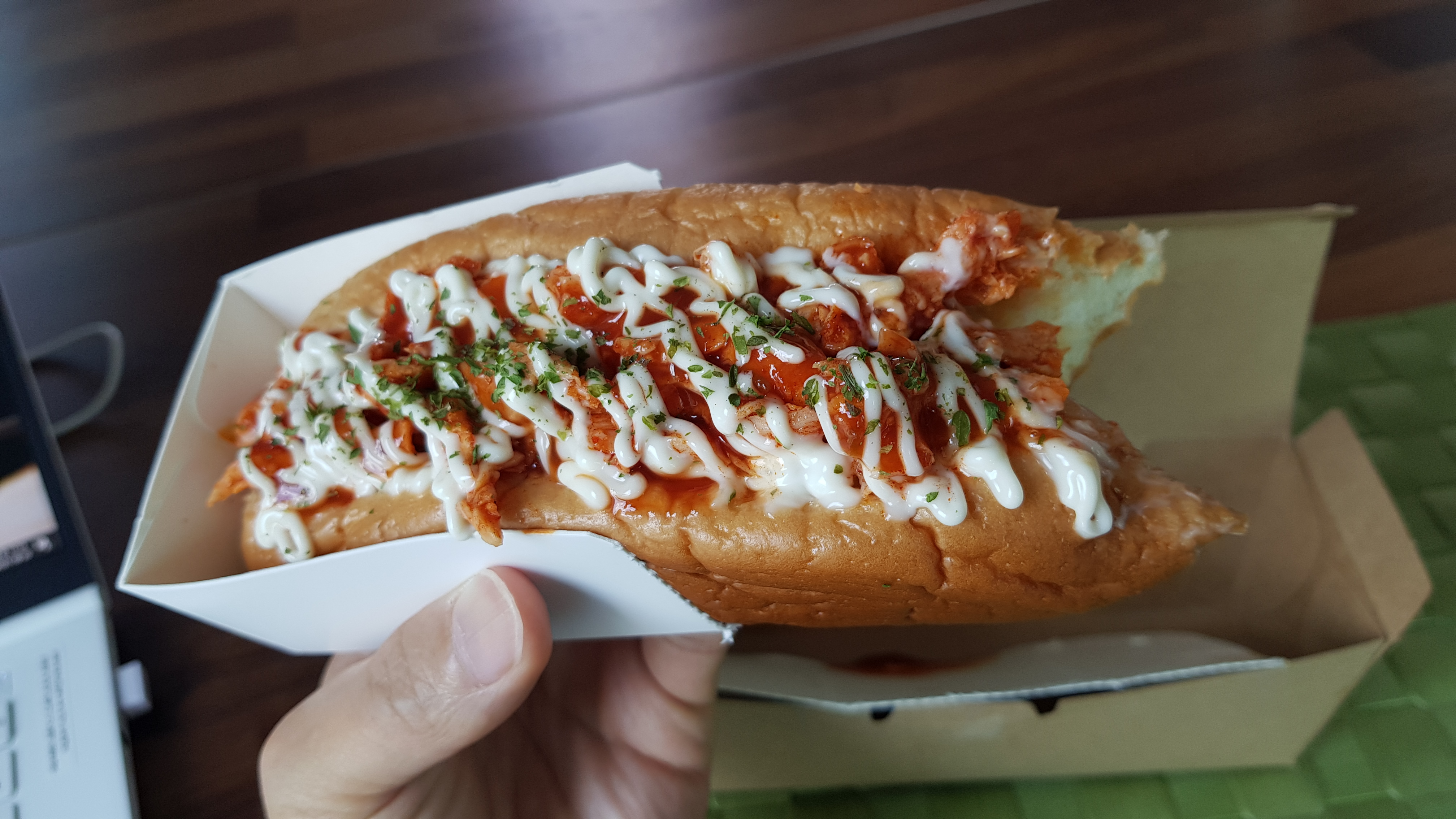 매콤닭갈비도그 처음부터 끝까지 맵지만 필자의 입맛에 가장 잘 맞는다. 아내는 크크도그에 할라피뇨 토핑을 추가해서 먹는걸 좋아한다.
