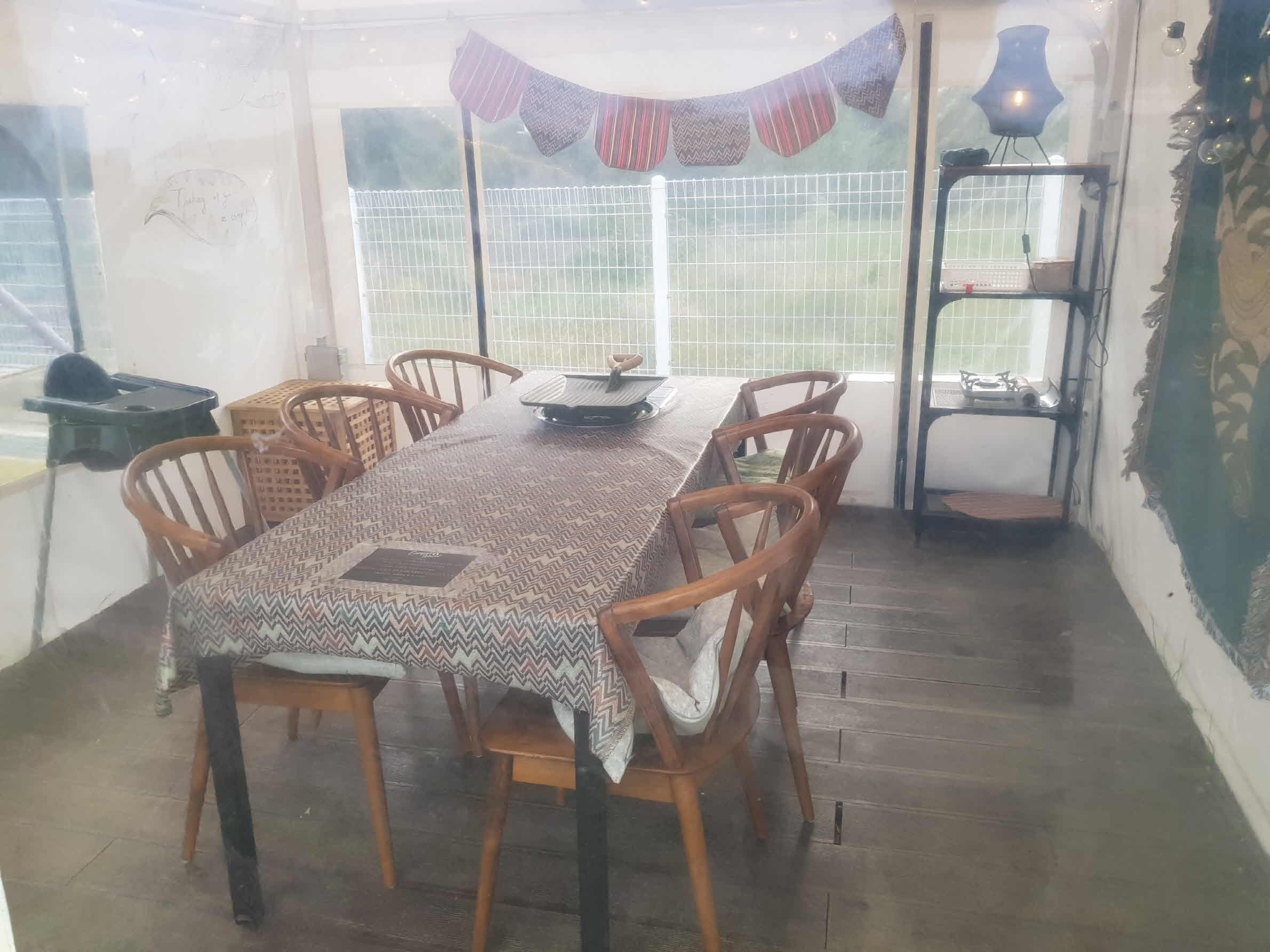 텐트 내부에는 테이블과 의자가 있다. 텐트 크기에 따라 4인 ~ 10인까지의 인원이 사용할 수 있게 준비되어있다.