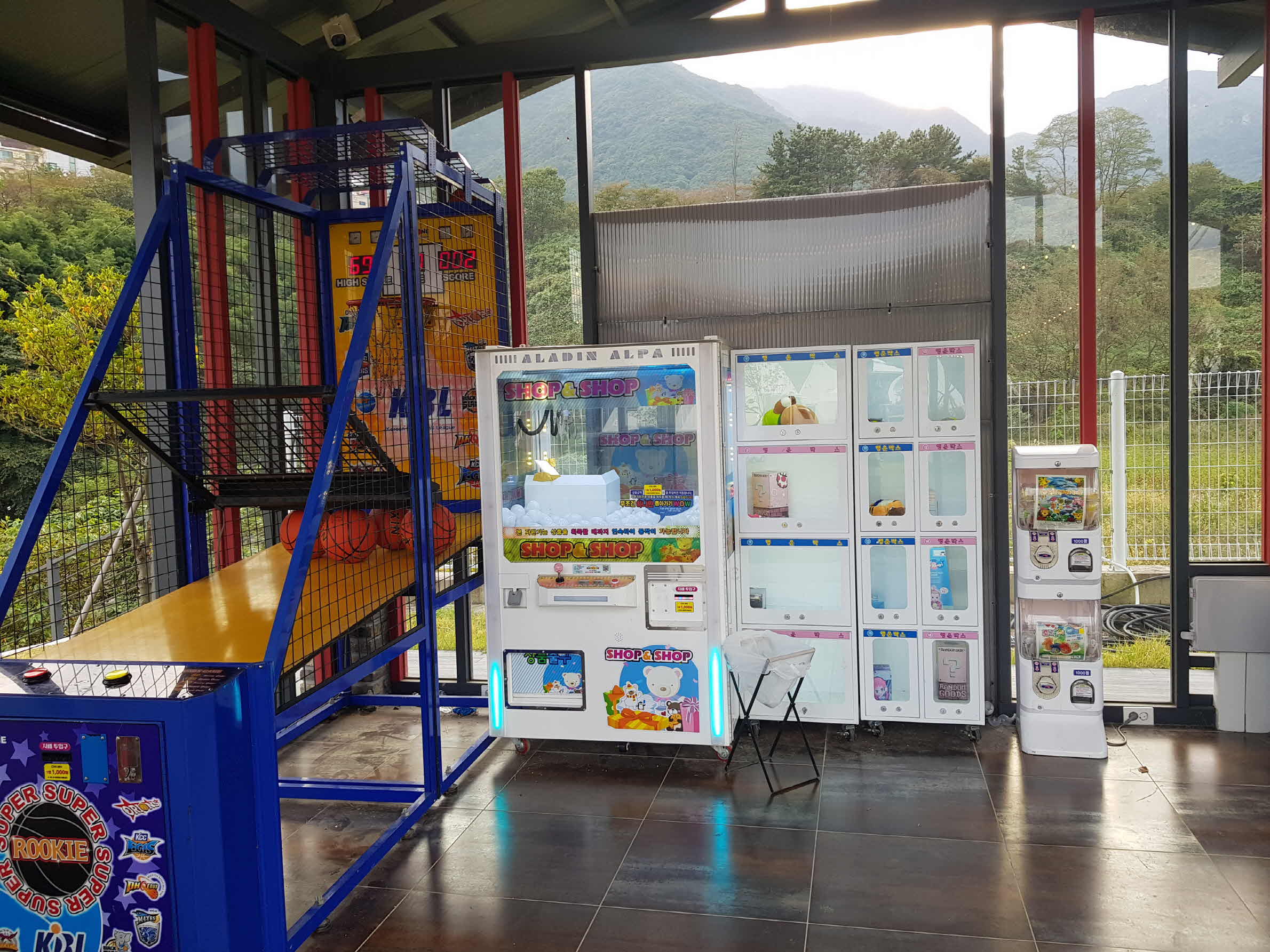 오락실의 규모가 크지는 않지만 농구대와 뽑기가 있다.