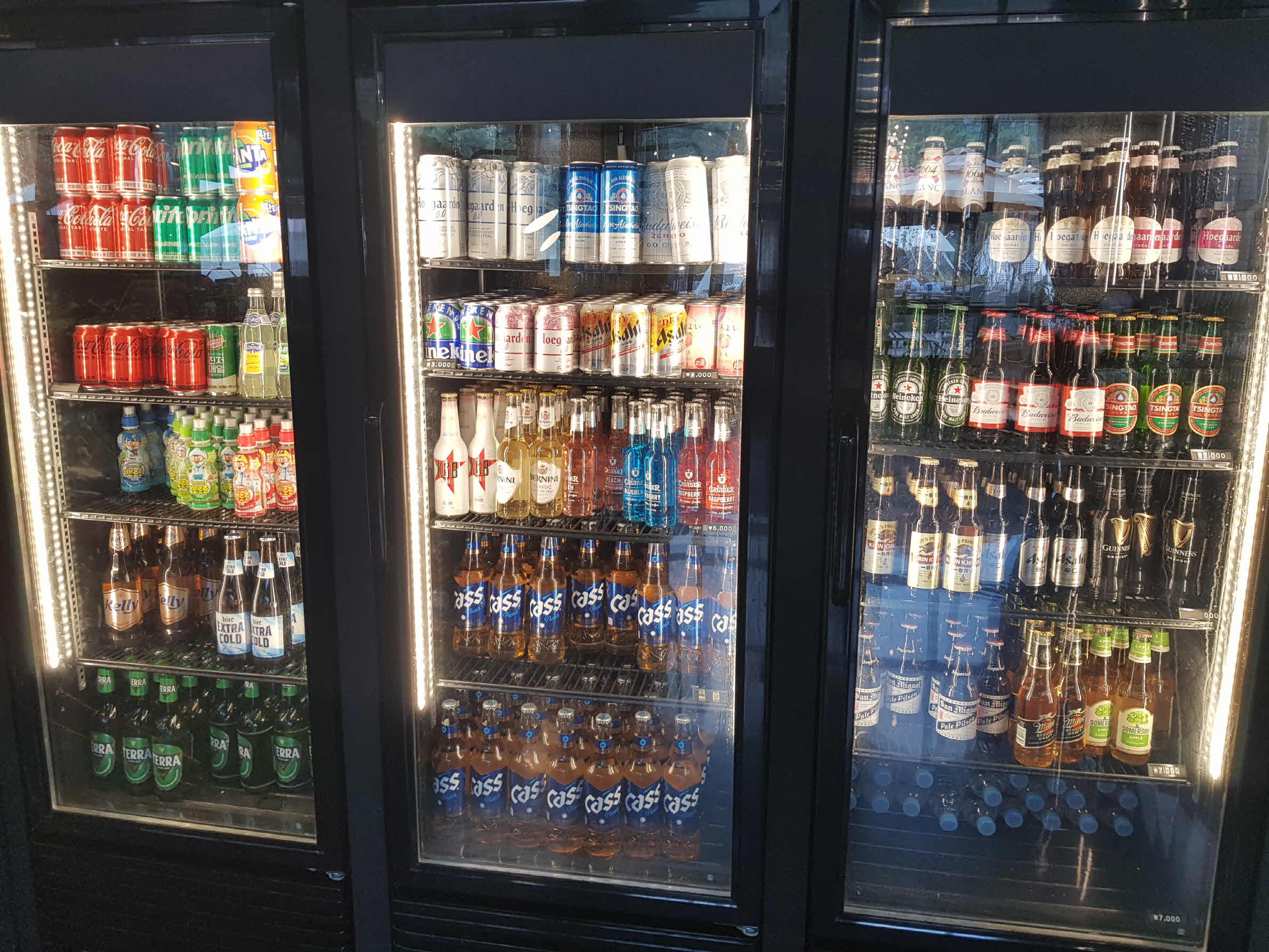 두 건물 앞쪽에는 야외 테이블이 있어 바비큐 음식이나 캠프 세트를 이용하지 않아도 카페에서 음료나 맥주를 사서 마실 수 있다.