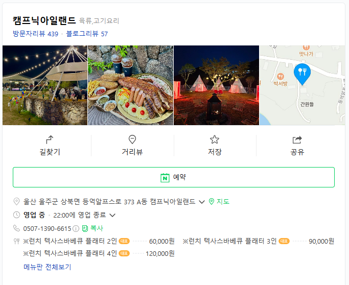 주소: 울산 울주군 상북면 등억알프스로 373 캠프닉아일랜드 / 등억알프스리 399