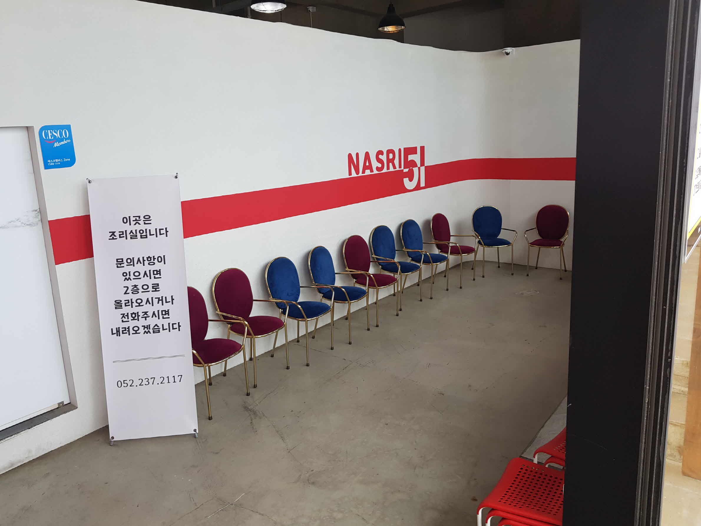 일층의 조리실 앞 공간에 많은 의자가 놓여있었다. 추정해 보건대 주말같이 사람들이 몰리는 날에는 대기실로 쓰이는 듯하다. 필자가 방문했을 때는 평일로 대기 없이 바로 올라갈 수 있었다.