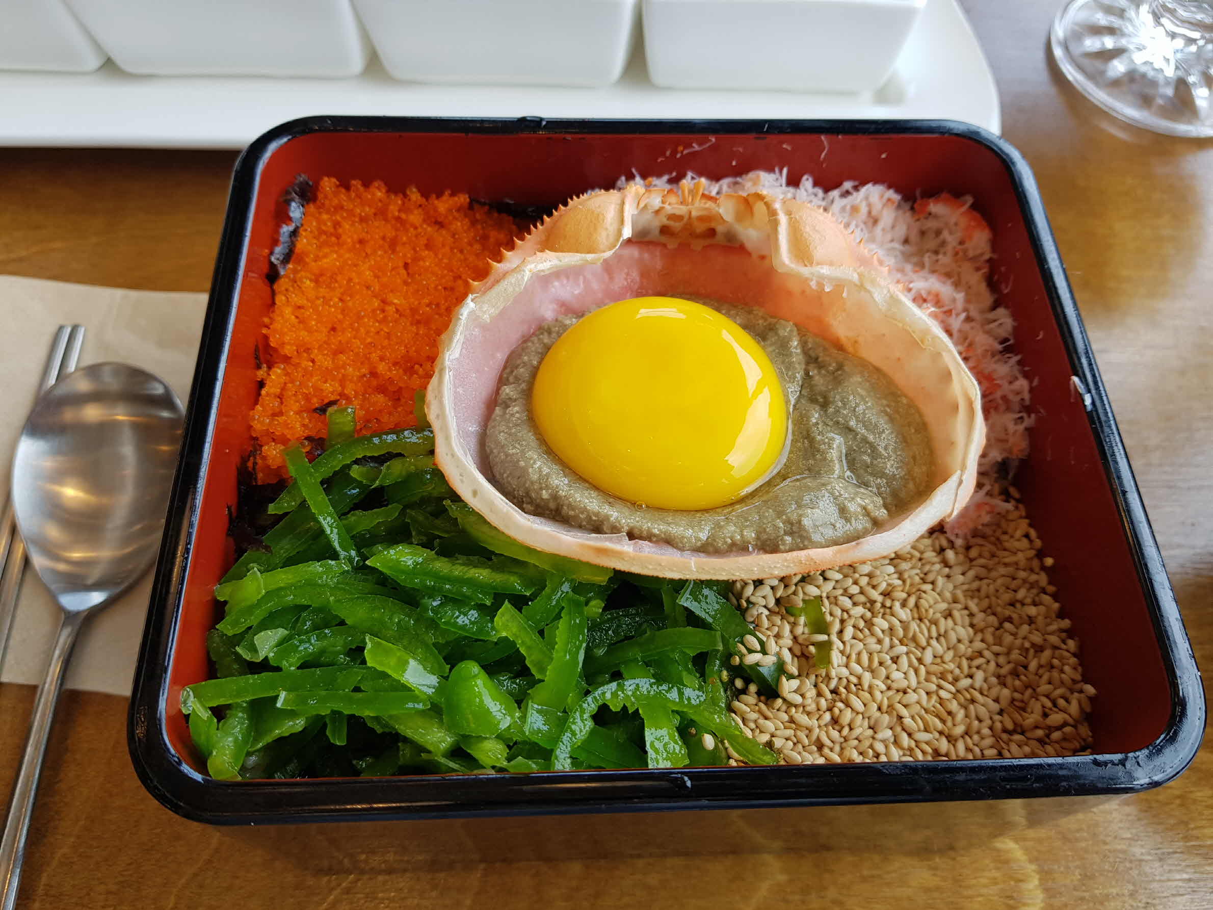 홍게 딱지 안에 게장과 계란노른자가 밥의 가운데 올려져 있다. '맛있겠다'라는 말이 절로 나오는 순간이었다.