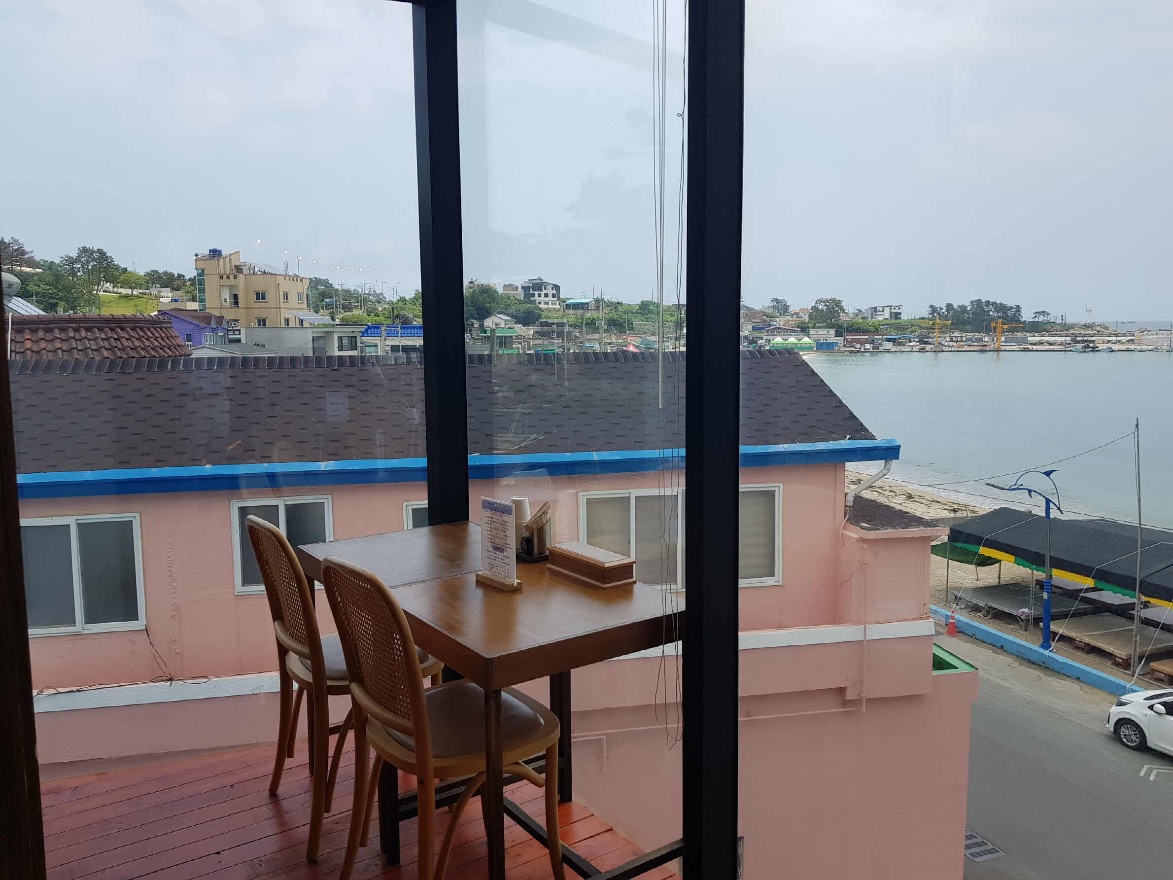 바다가 잘 보이는 창가 쪽에 자리를 잡고 음식을 주문하기로 한다.