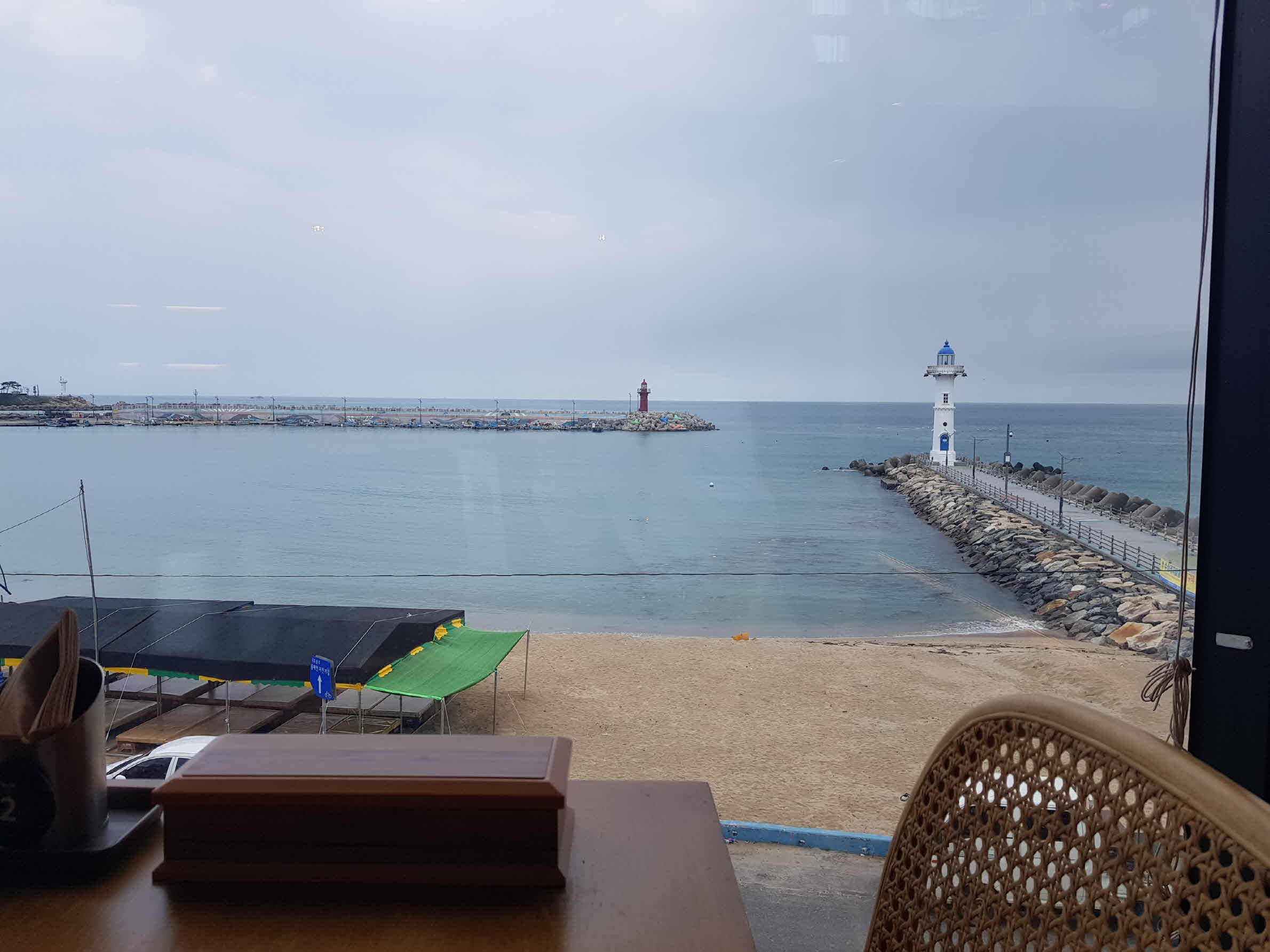 음식을 주문하고선 함께한 아내와 이런저런 얘기를 한다. 테이블에 앉아 바다를 보니 색이 다른 등대가 3개 보인다. 이윽고 주문한 음식이 나온다.