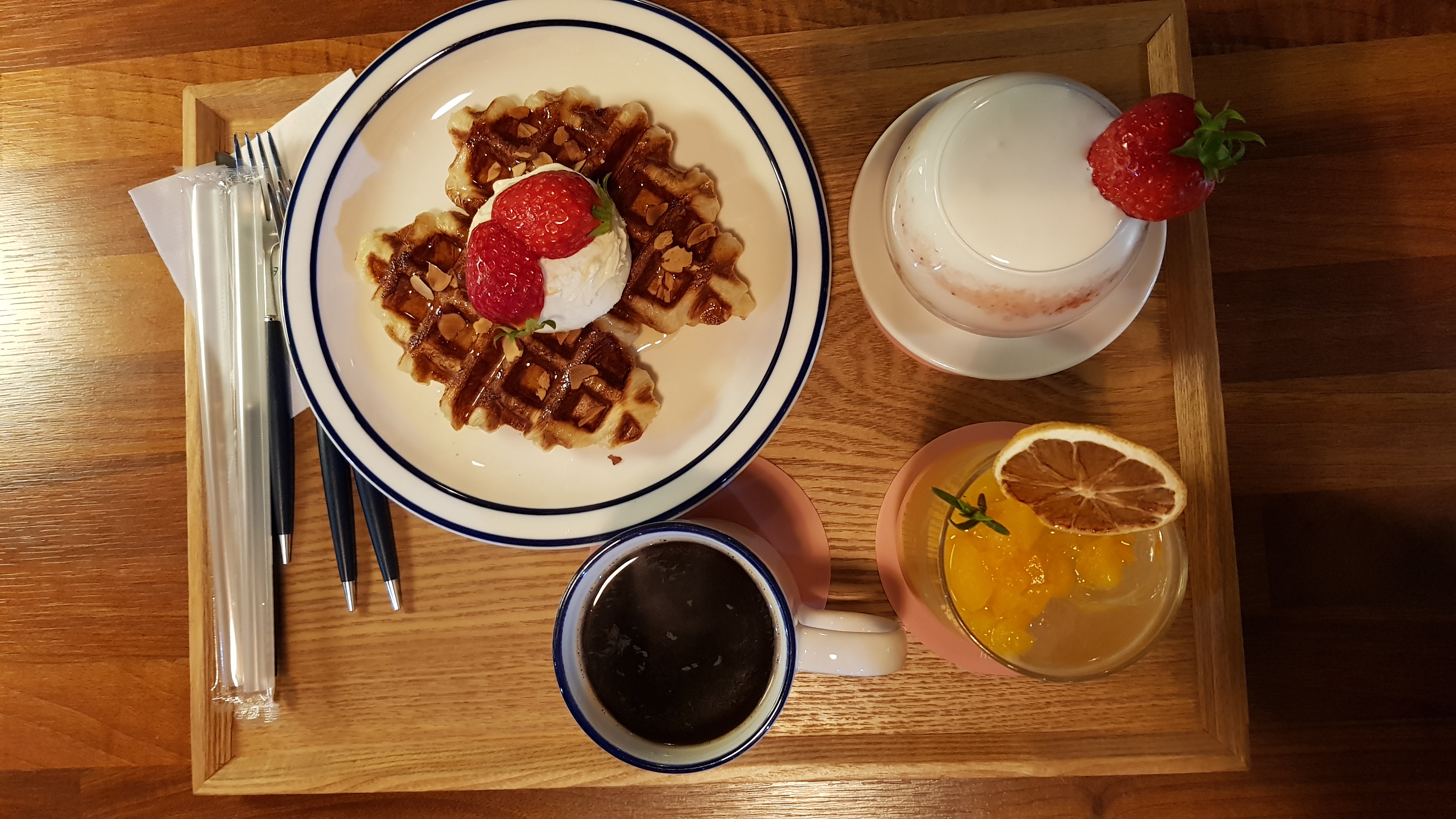 커피와 생딸기라떼, 살구에이드 그리고 이번에도 크로플