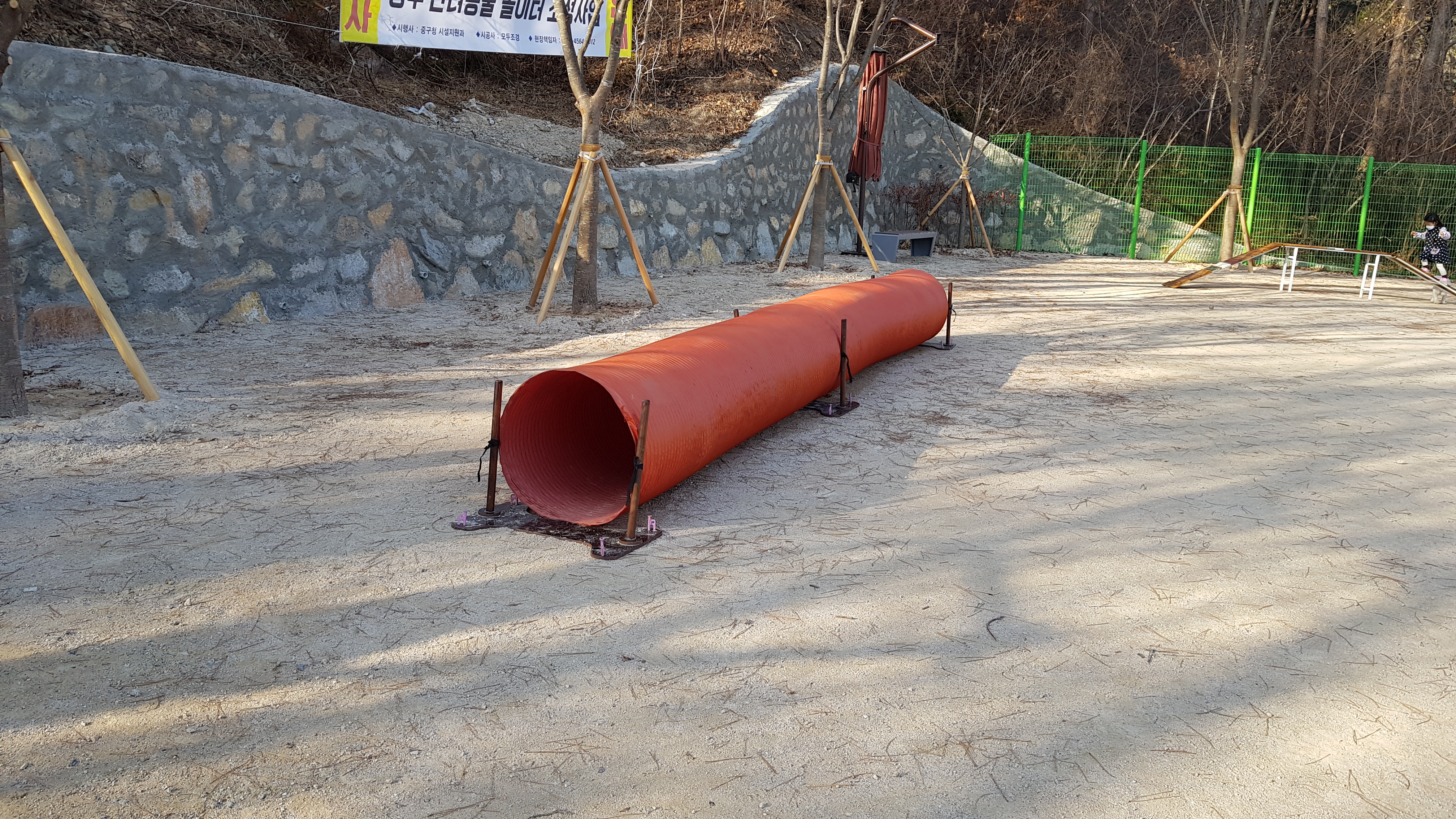 약 한달정도 전에만하더라도 공원 조성 플랜카드만 걸려있어서 오래걸리겠구나 싶었는데 이번에 지나가다보니 펜스도 쳐져있고 부지내에 시설도 구비가 되어있었다.
