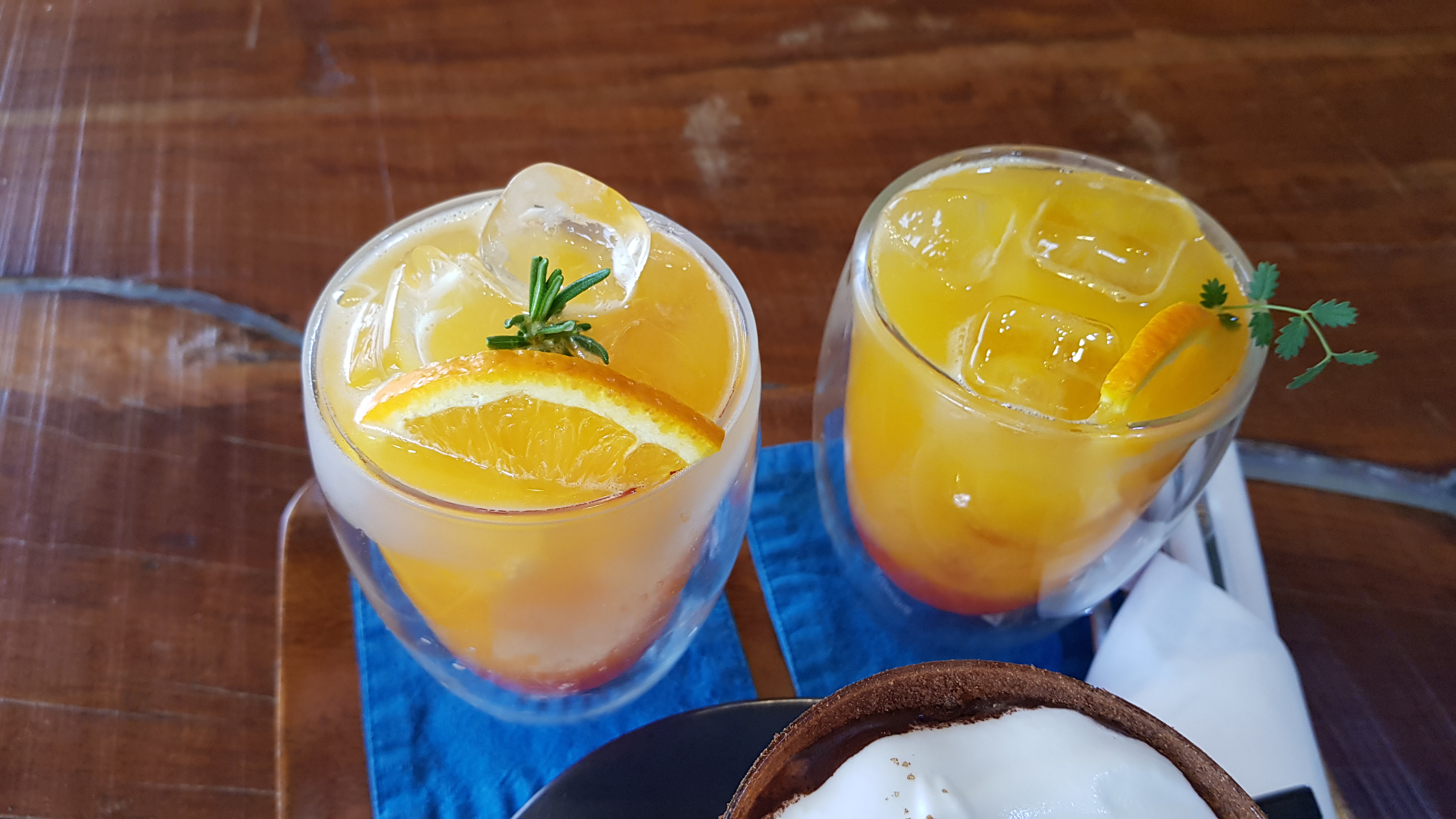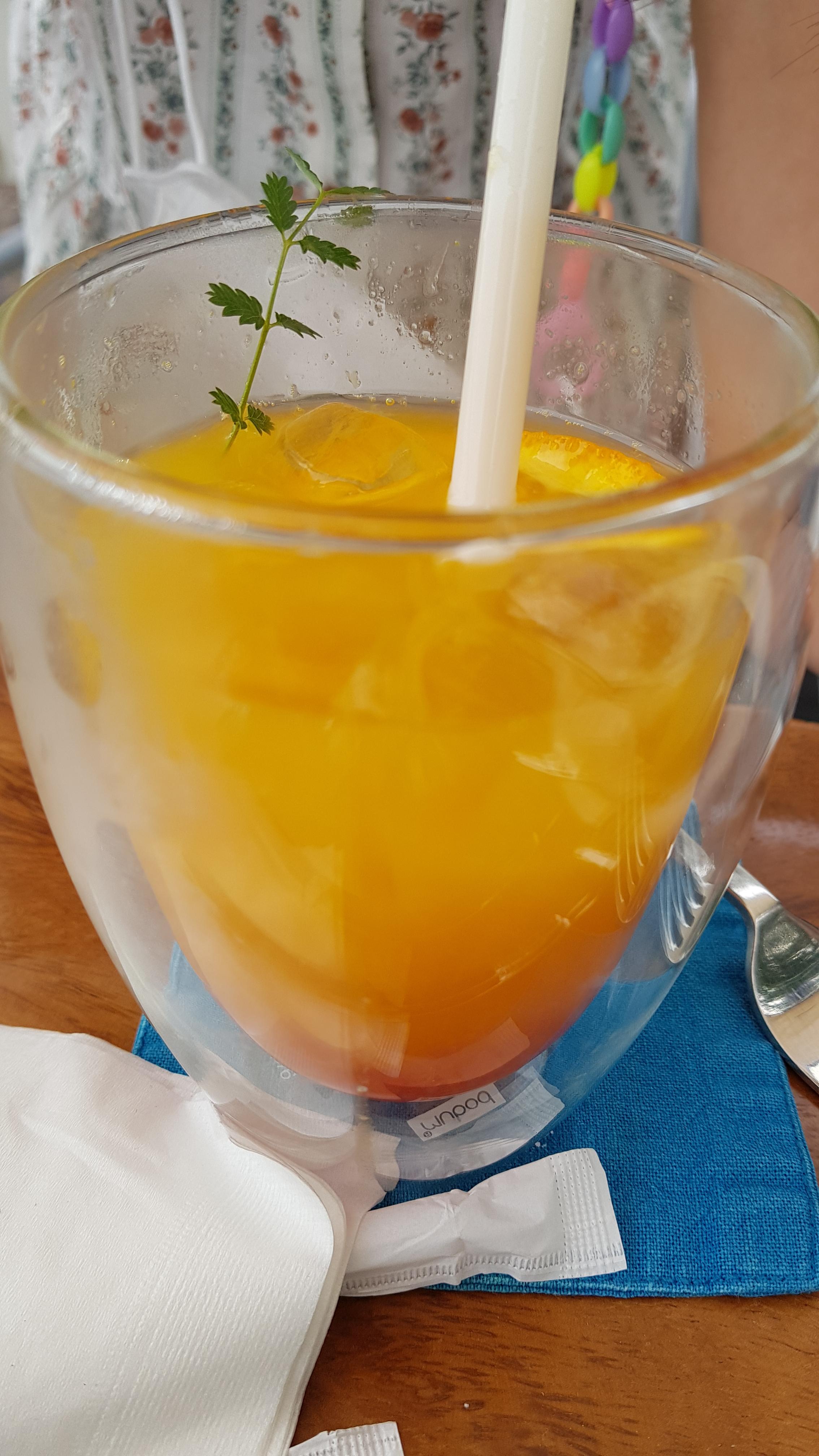 아래쪽에 가라앉아 있는 자몽청이 은은한 붉은 색을 띈다. 딸아이는 신 자몽보다는 달콤한 오렌지 쥬스가 더 입맛에 맞아 빨대를 약간 위로 들어 오렌지 쥬스만 마신다.