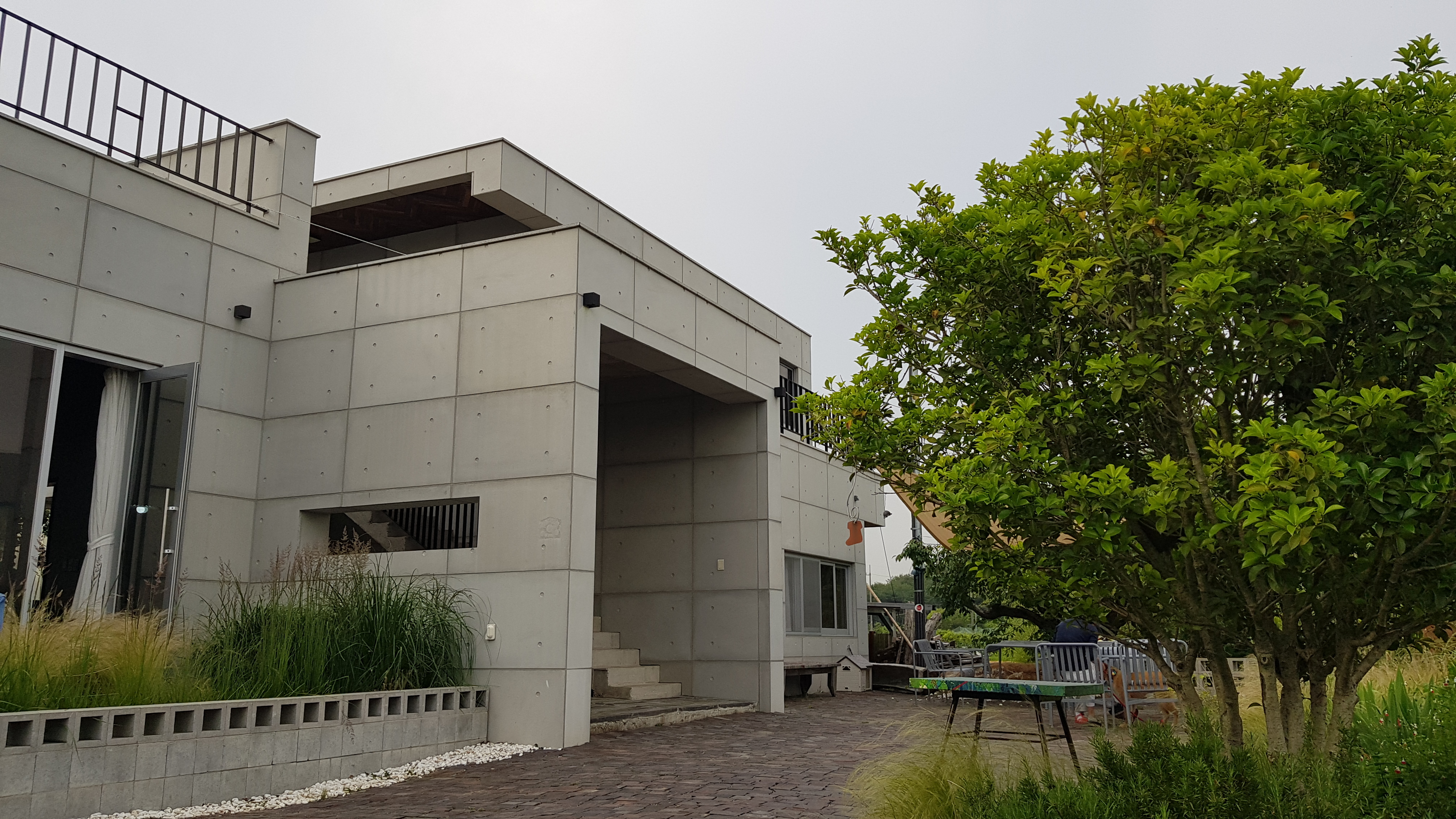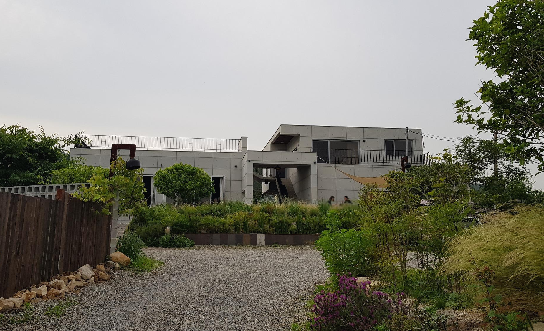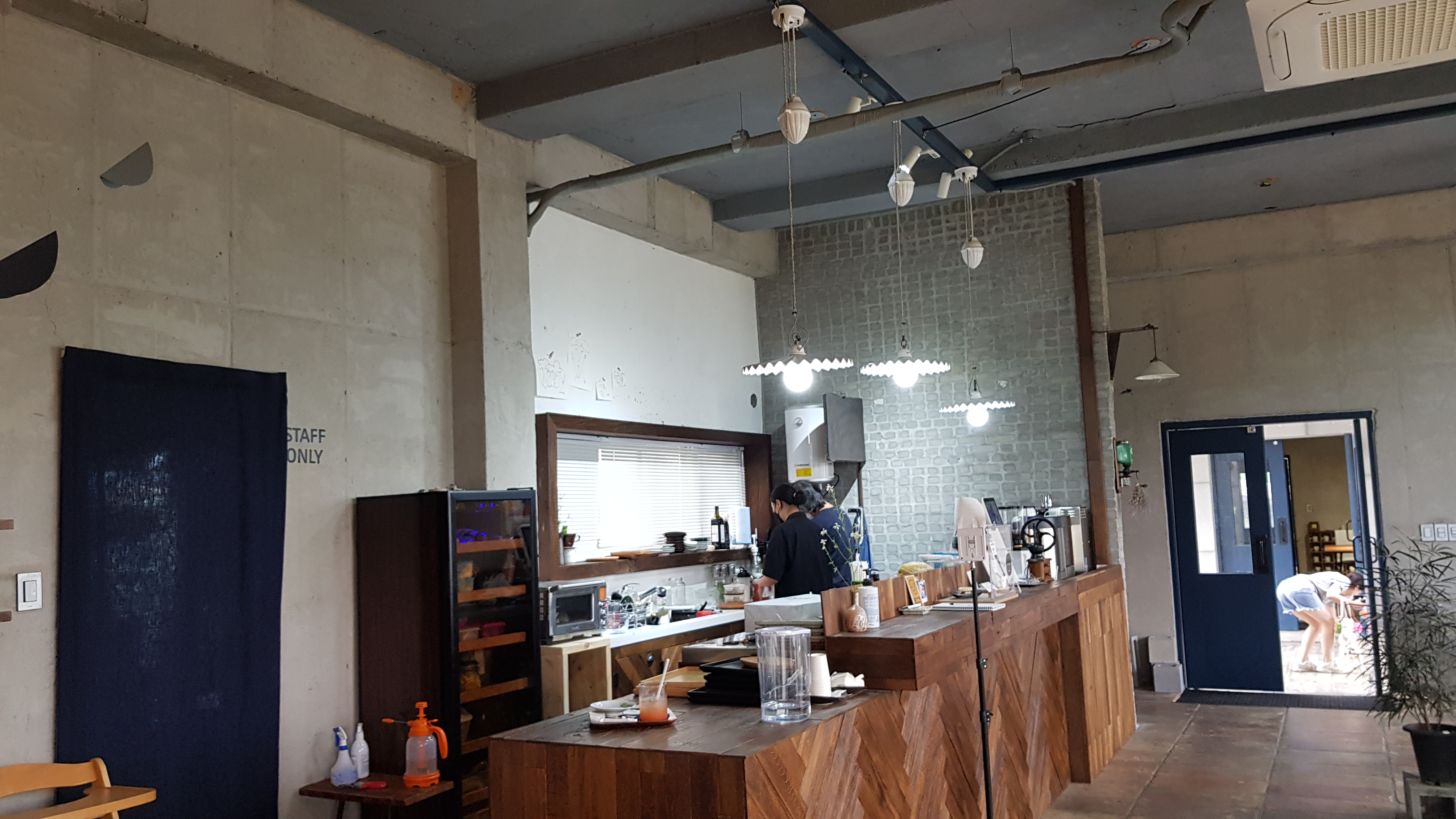 우리가 카페에 도착했을때는 저녁 6시 무렵이었다. 마을은 한적했고 카페에 다다르니 도로변에 차가 두세대정도 주차되어있었다. 카페 입구에 '주차는 좌측으로 부탁드립니다'라는 안내를 보고선 도로좌측에 주차를 했다. 안내 말을 듣지 않고 안으로 들어가면 10대 정도 주차할 수 있는 주차장이 나온다. 찾는이가 많아 붐비더라도 주차할 곳을 찾는건 어렵지 않을 듯 하다. 도로에서 안쪽 카페까지 걸어서 1분정도이니 도로가에 주차해도 불편함은 없다.