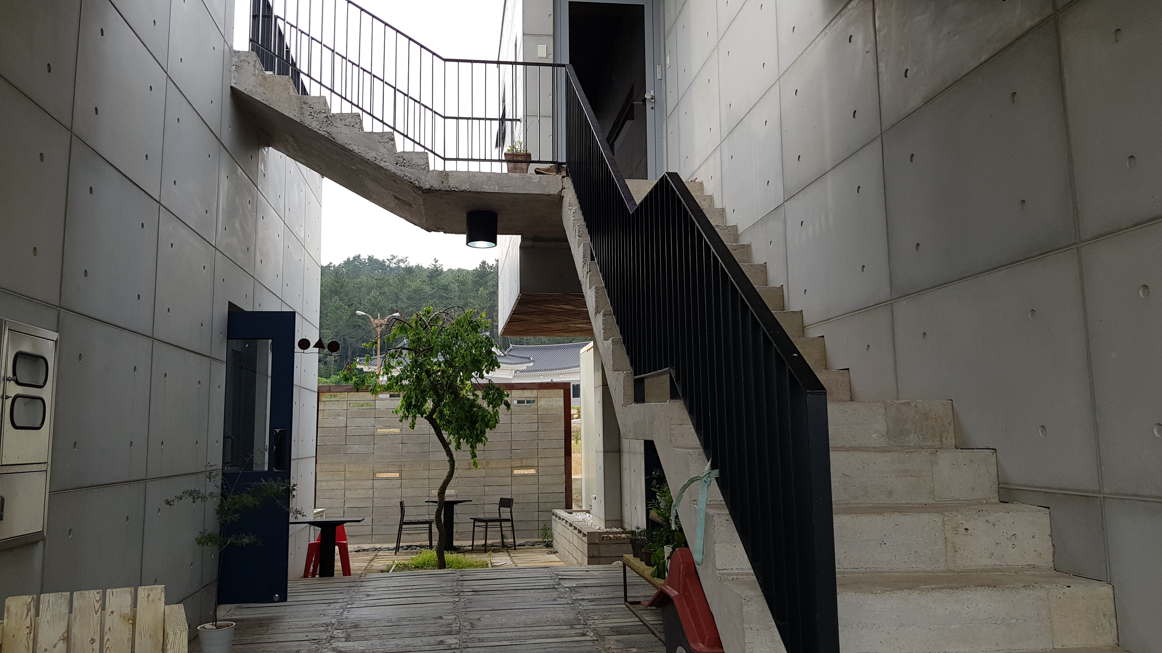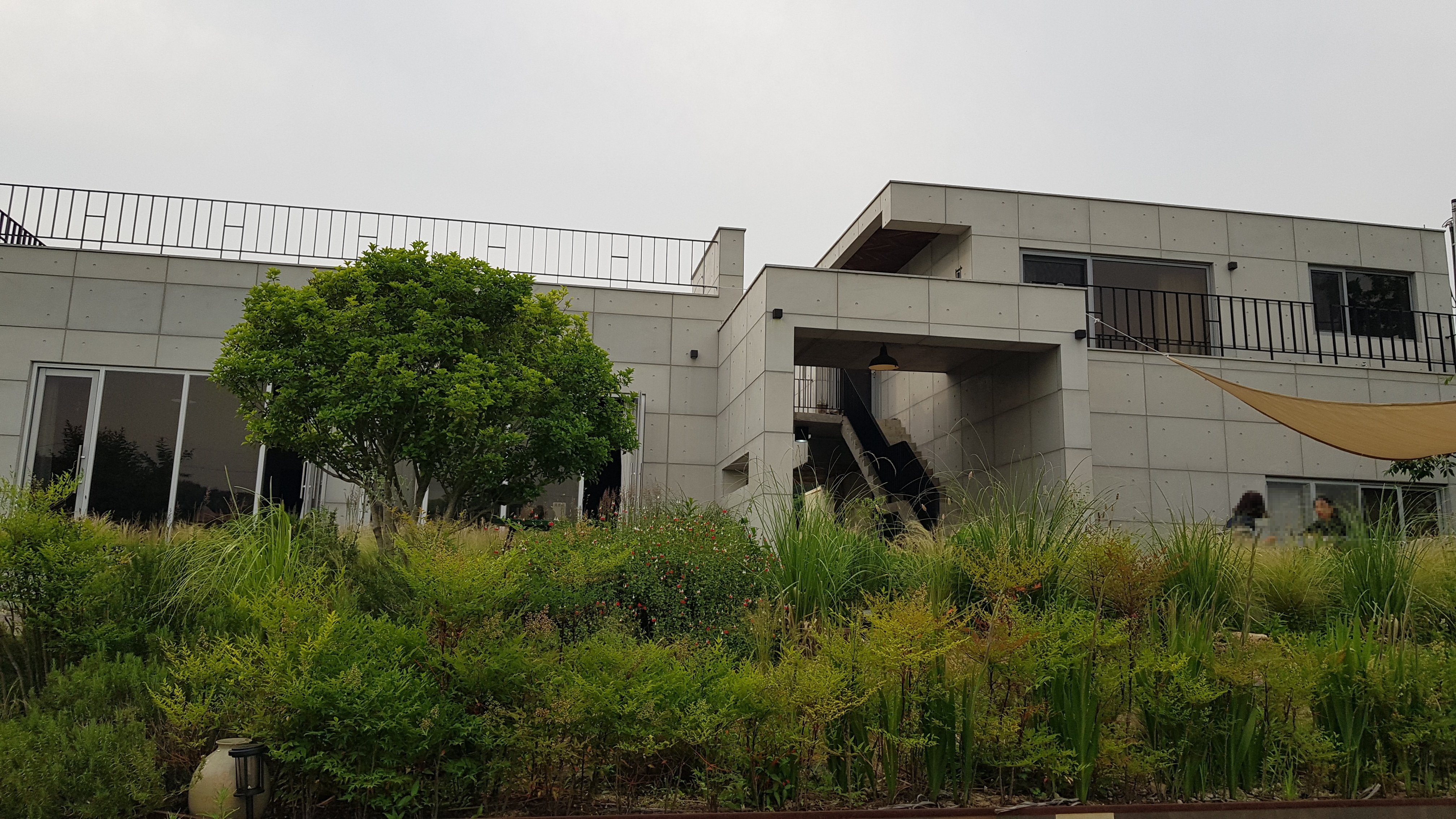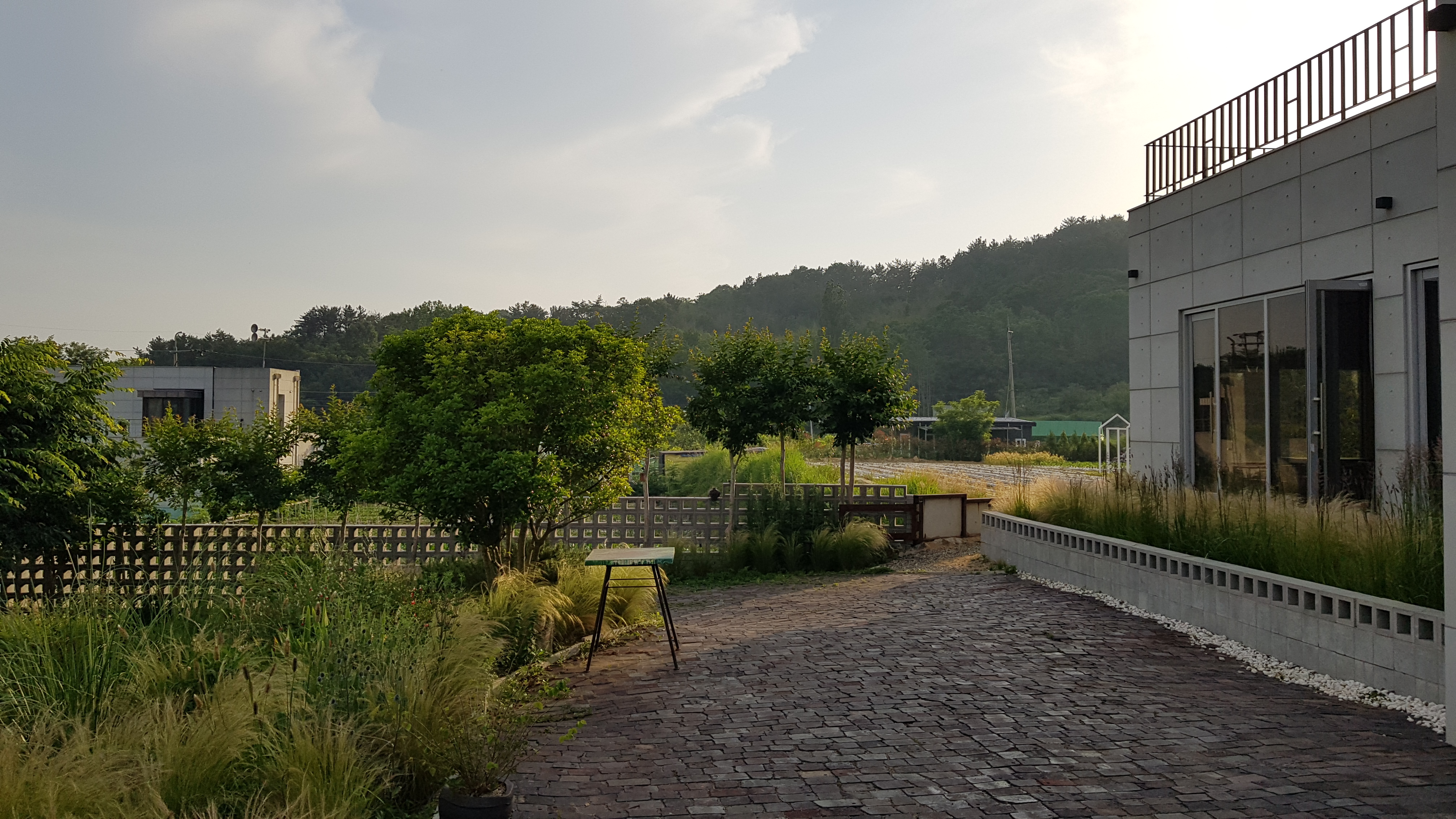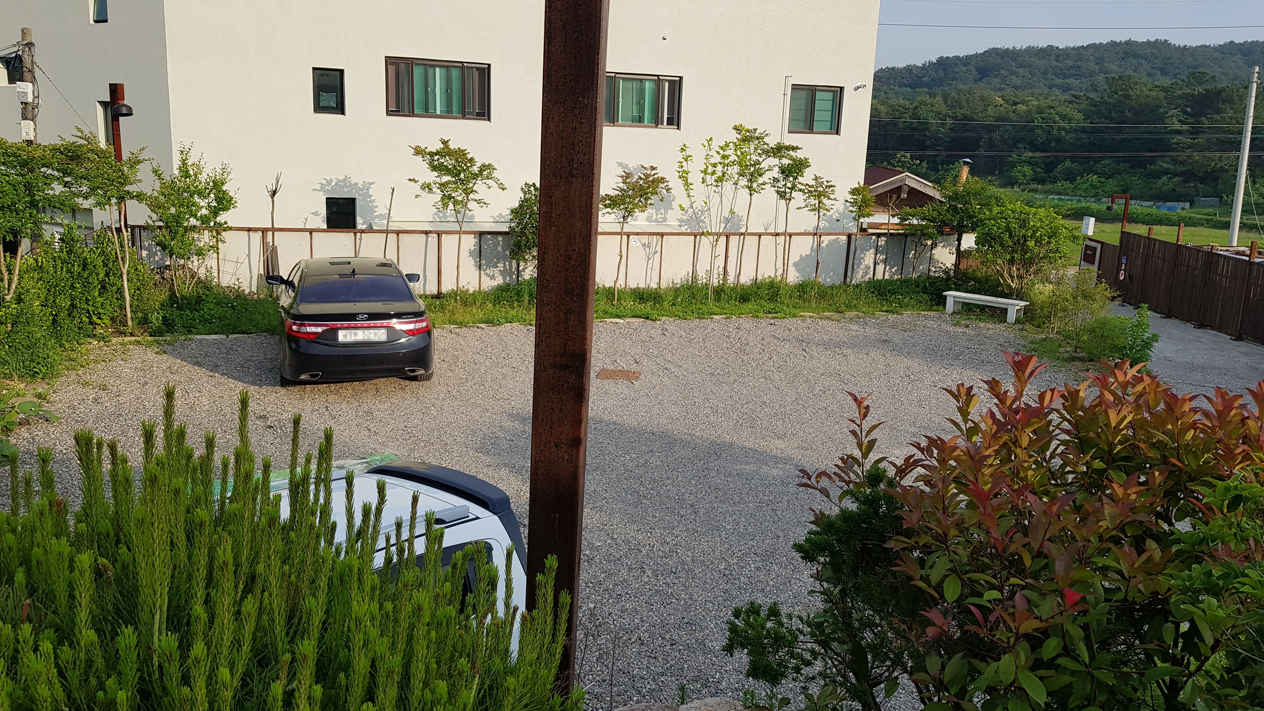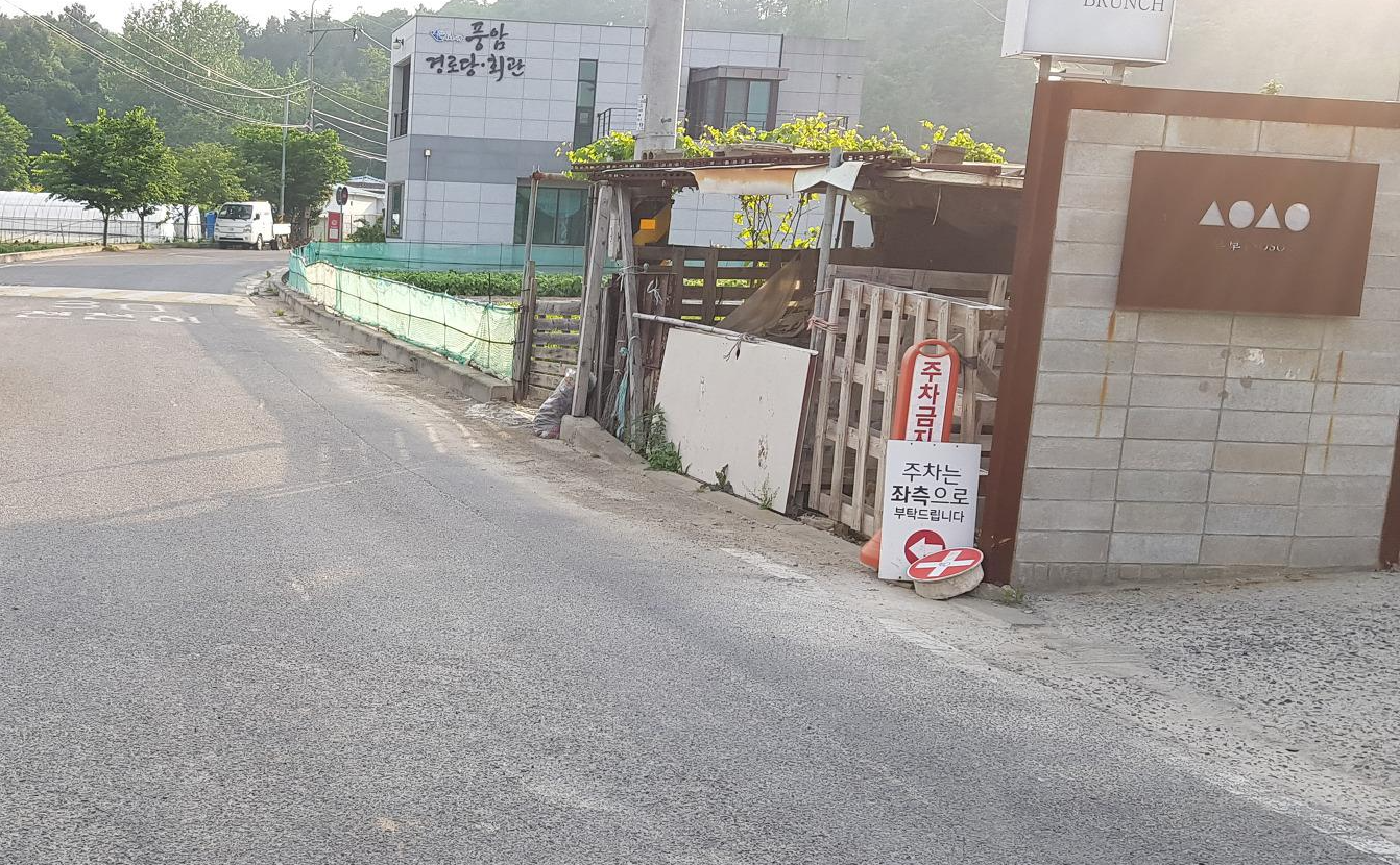우리가 카페에 도착했을때는 저녁 6시 무렵이었다. 마을은 한적했고 카페에 다다르니 도로변에 차가 두세대정도 주차되어있었다. 카페 입구에 '주차는 좌측으로 부탁드립니다'라는 안내를 보고선 도로좌측에 주차를 했다. 안내 말을 듣지 않고 안으로 들어가면 10대 정도 주차할 수 있는 주차장이 나온다. 찾는이가 많아 붐비더라도 주차할 곳을 찾는건 어렵지 않을 듯 하다. 도로에서 안쪽 카페까지 걸어서 1분정도이니 도로가에 주차해도 불편함은 없다.