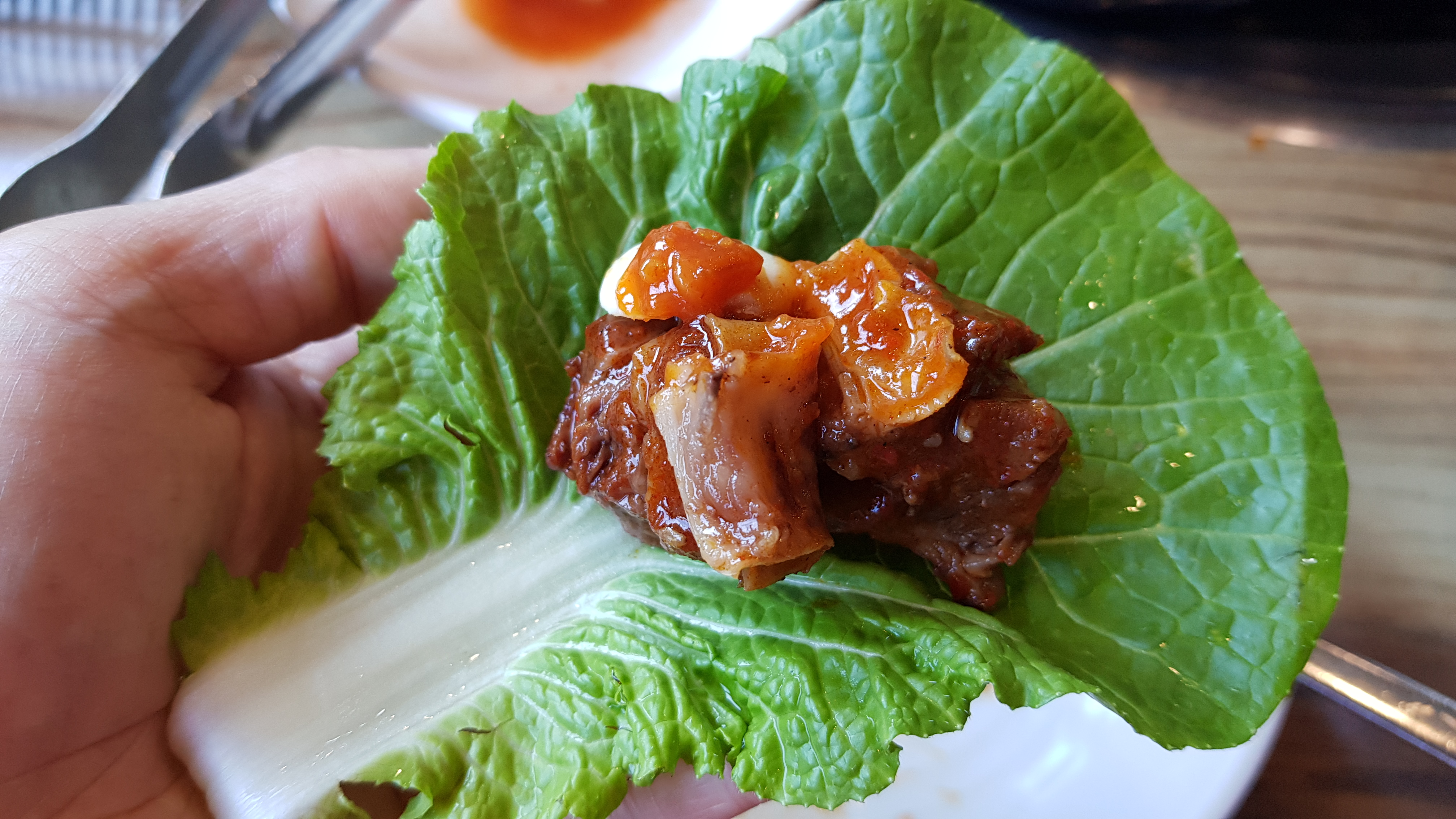 마지막 남은 갈비한점은 나에게로. 아내와 필자는 양이 많은 편이 아니다. 1인분에 300g 이지만 뼈가 포함된 무게이기에 가득담은 공기밥 한공기를 다 먹었음에도 포만감은 들지 않을 정도의 양이었다.