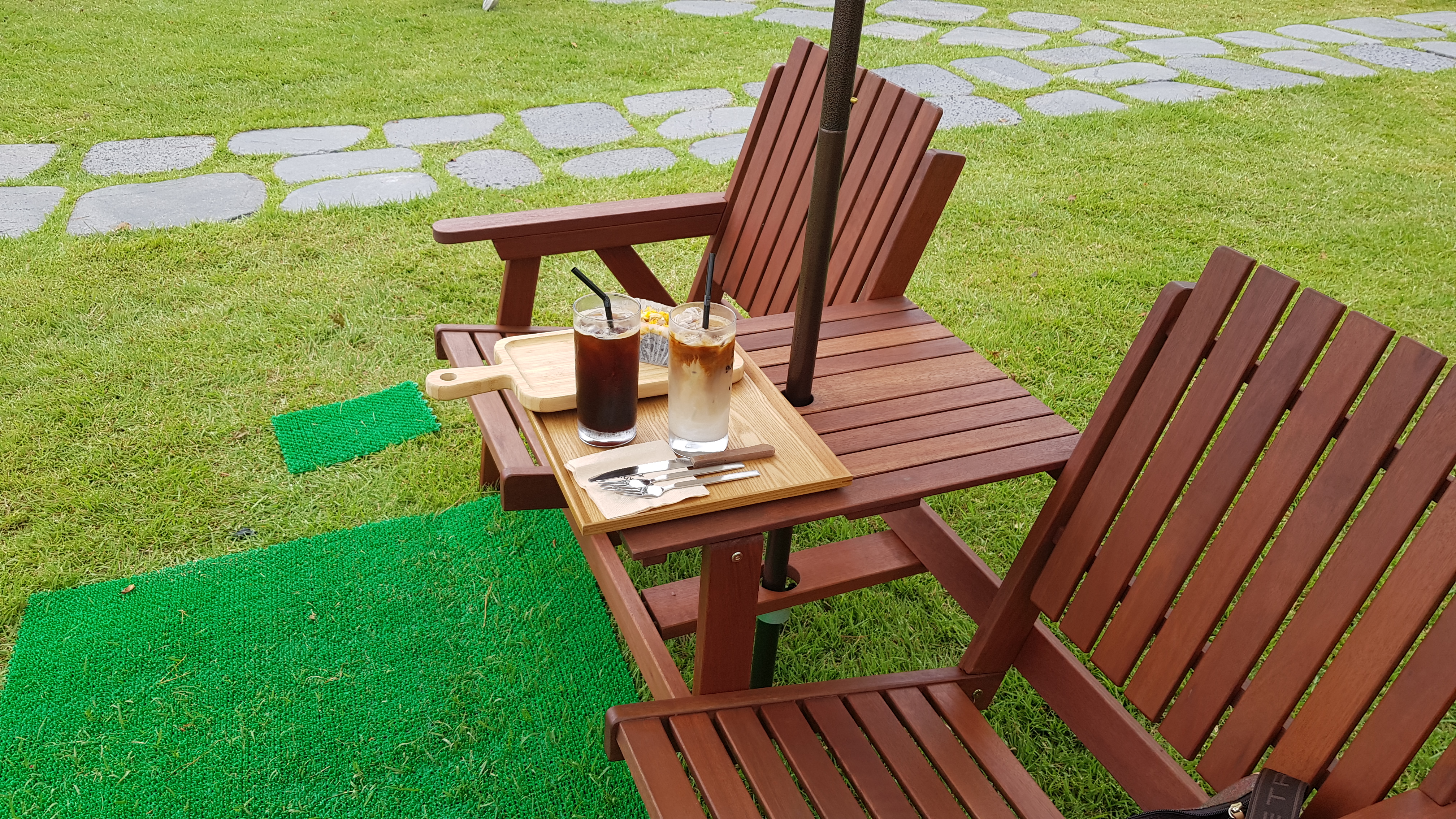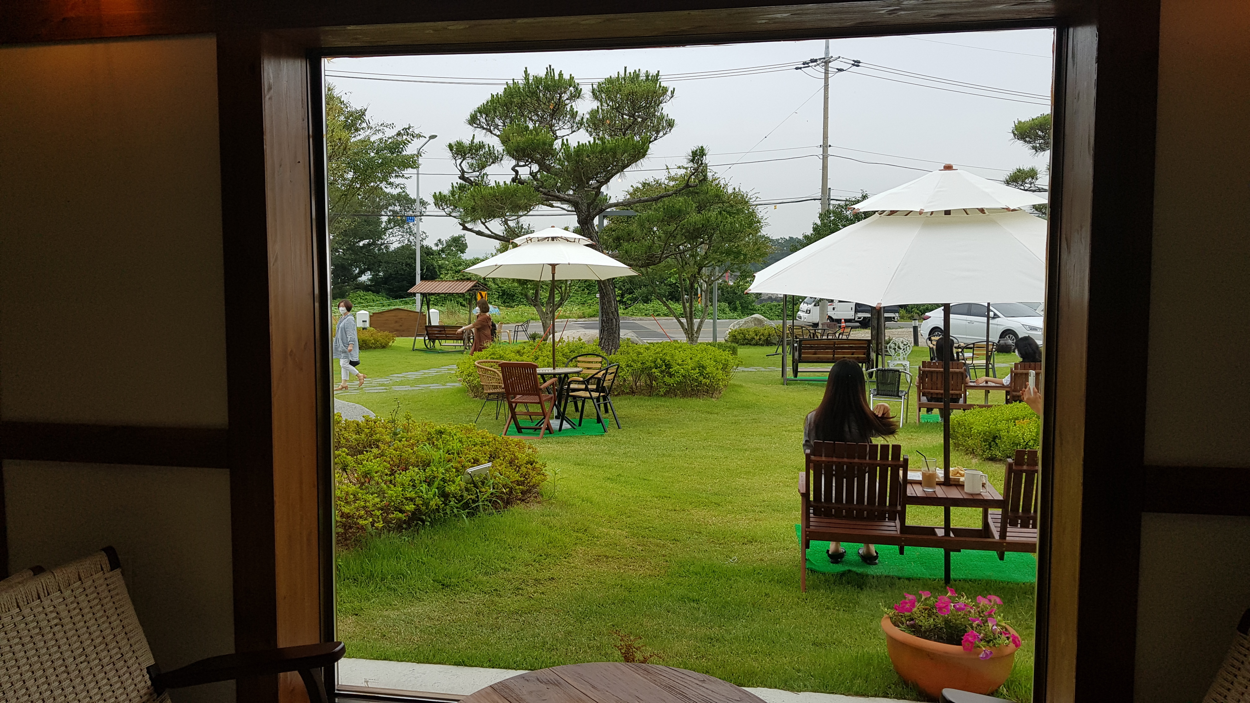 카페 정원에 잔디고 곱게 깔려있고 좋지만 아쉬운 점이 있다. 도로에 바로 접해있어서 야외테이블 어디에 앉던지 주차장에 주차된 차들이 보이고 도로가 보인다. 도로에 차가 지나가면서 엔진소리가 들리고 매연 냄새가 난다. 토곡요 정도의 한적함과 여유를 즐길 수 없는것이 아쉽다.