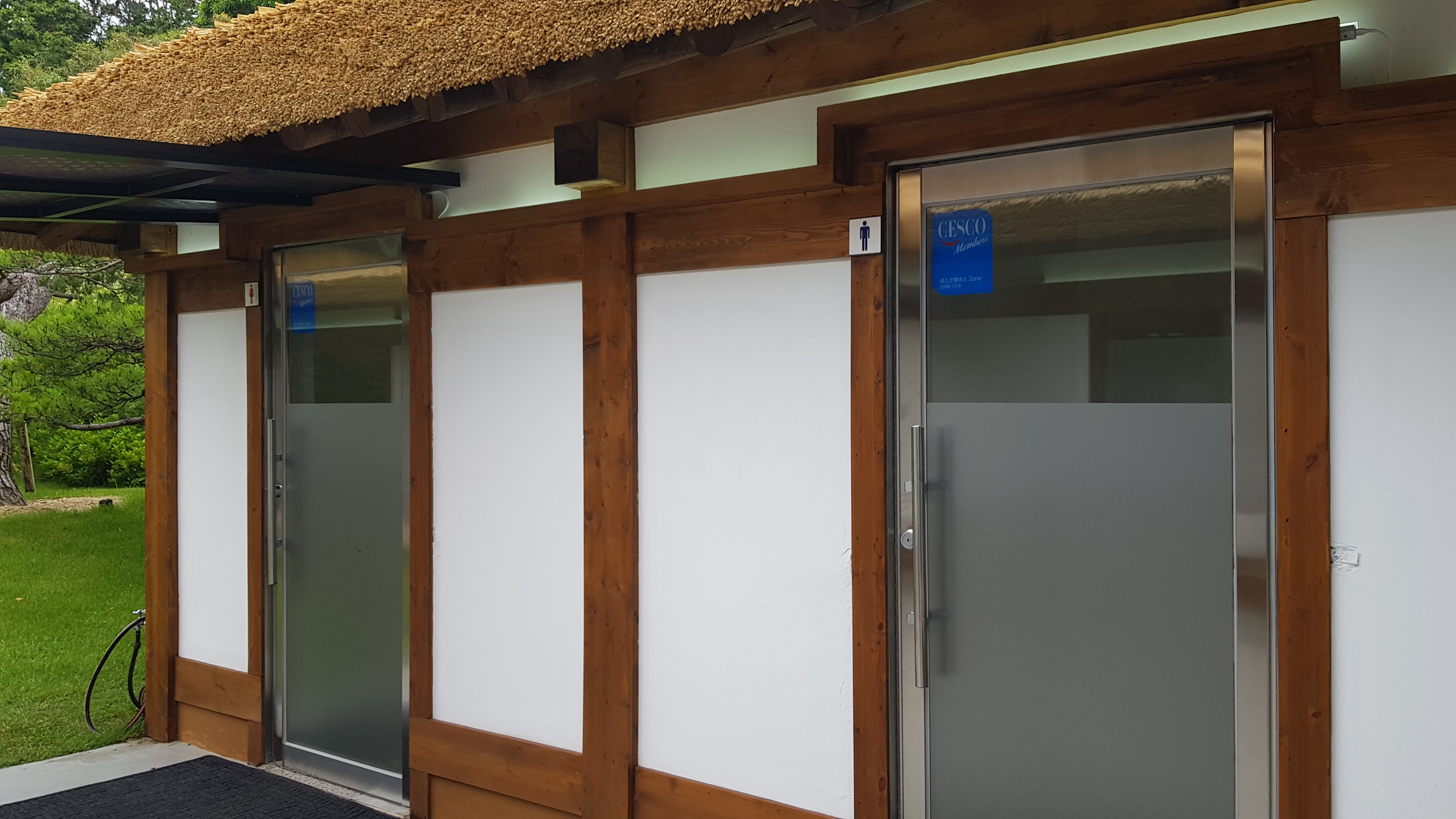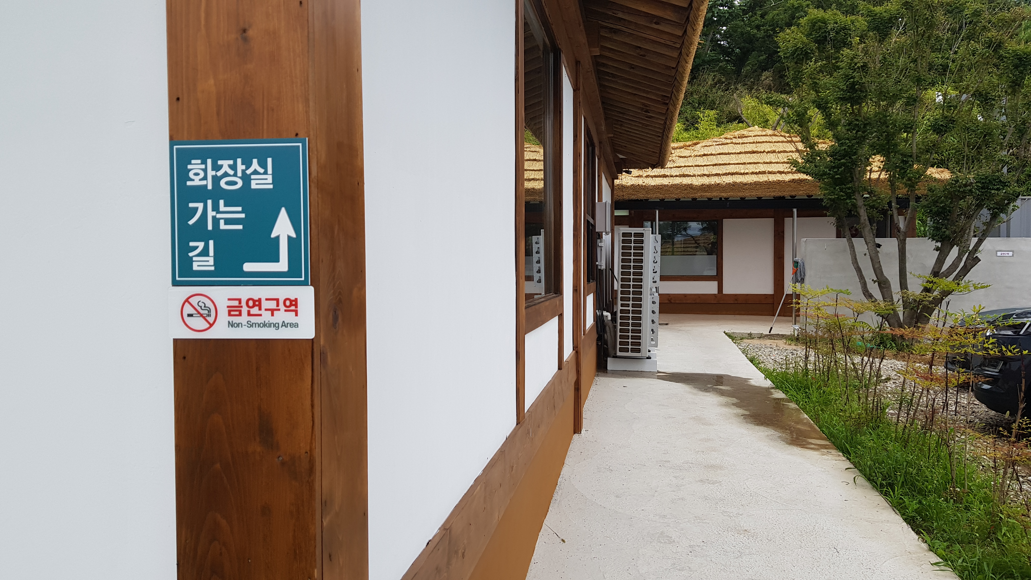 구유림 카페 본관 뒤쪽으로 화장실이 있다. 본관에서는 뒷문으로 나가면 되고 야외테이블에서 화장실에 갈때는 본관건물 오른쪽으로 돌아들어가면 된다.