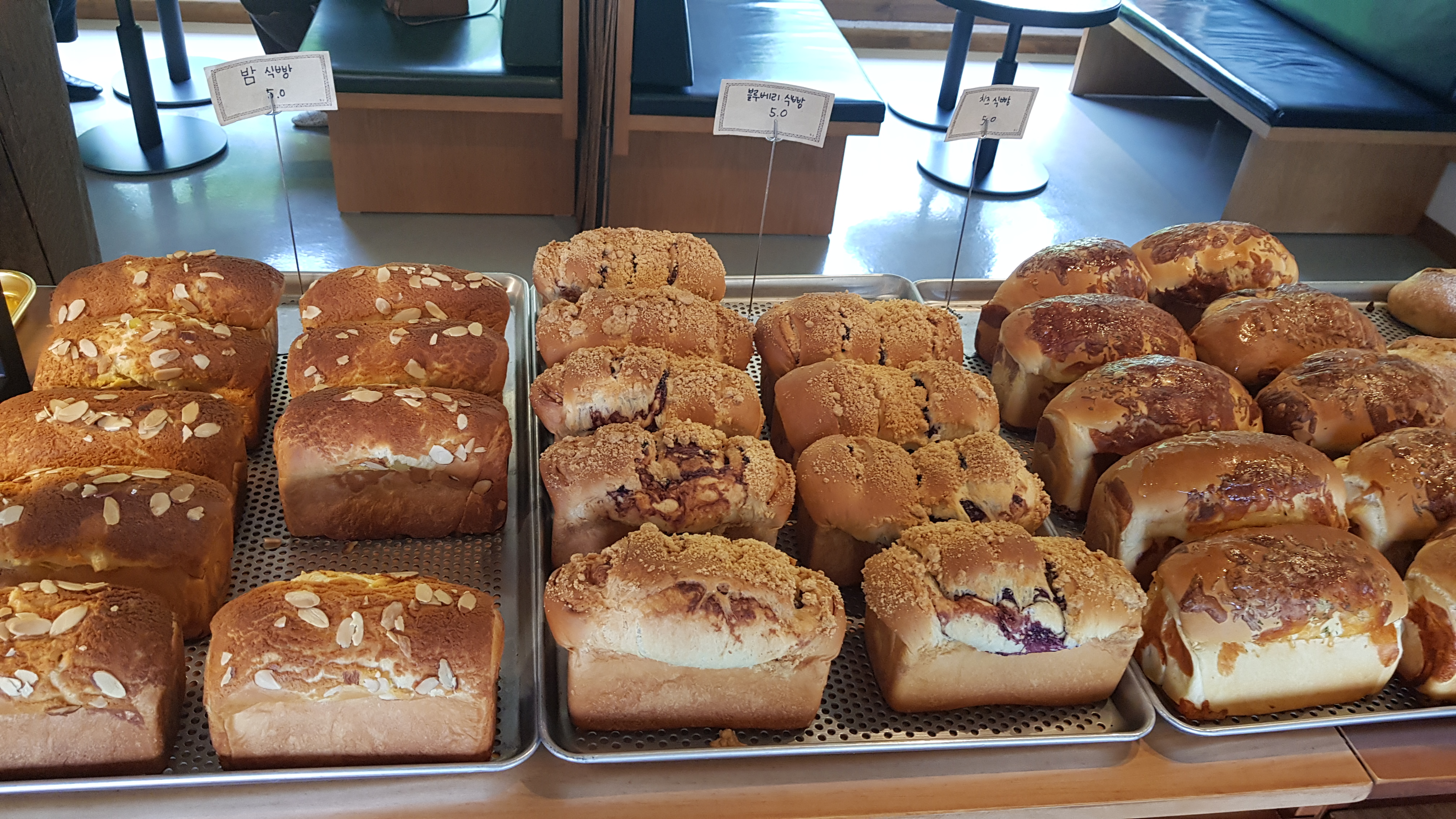 빵을 골라 담고 음료를 주문하러 카운터로 간다.