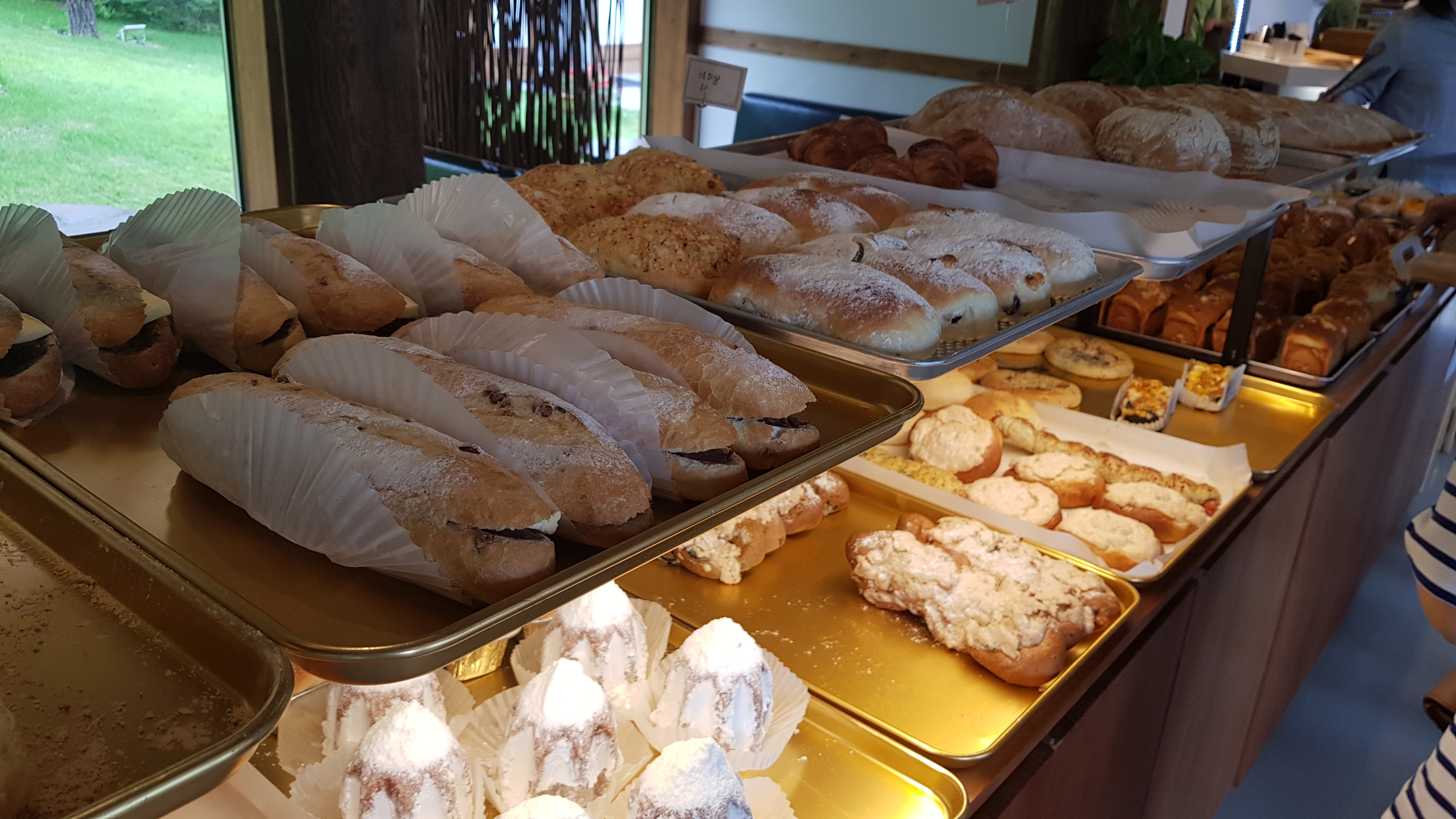 테이블을 골라서 자리잡고 앉으니 잠시 후 전동벨이 울려서 커피와 빵을 가지고 온다.