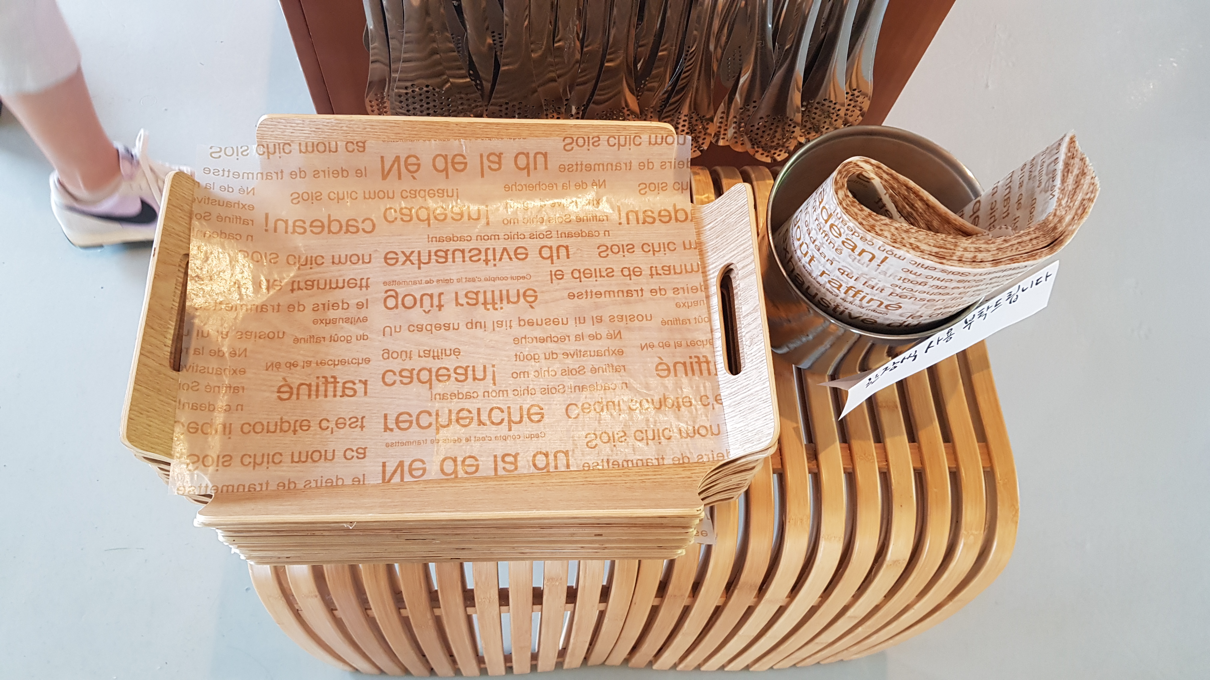 계산을 하고서 전동벨을 받아 건물 밖으로 나왔다. 이날도 비가 예보되어있었던 터라 하늘이 회색빛이다. 그래도 아직 비가 오지 않아서 밖에서 커피를 마시기로하고 앉을 야외테이블을 골라본다.