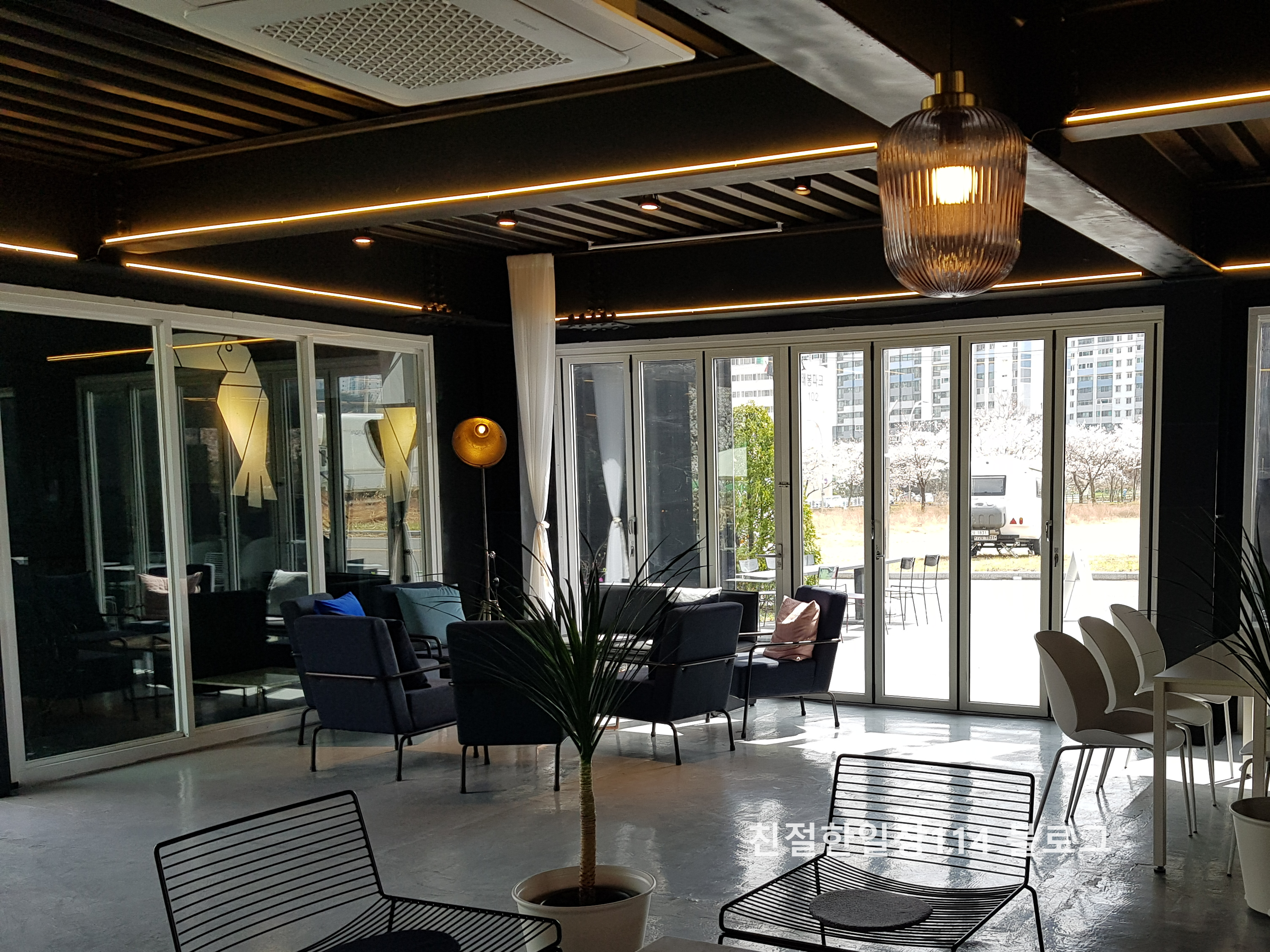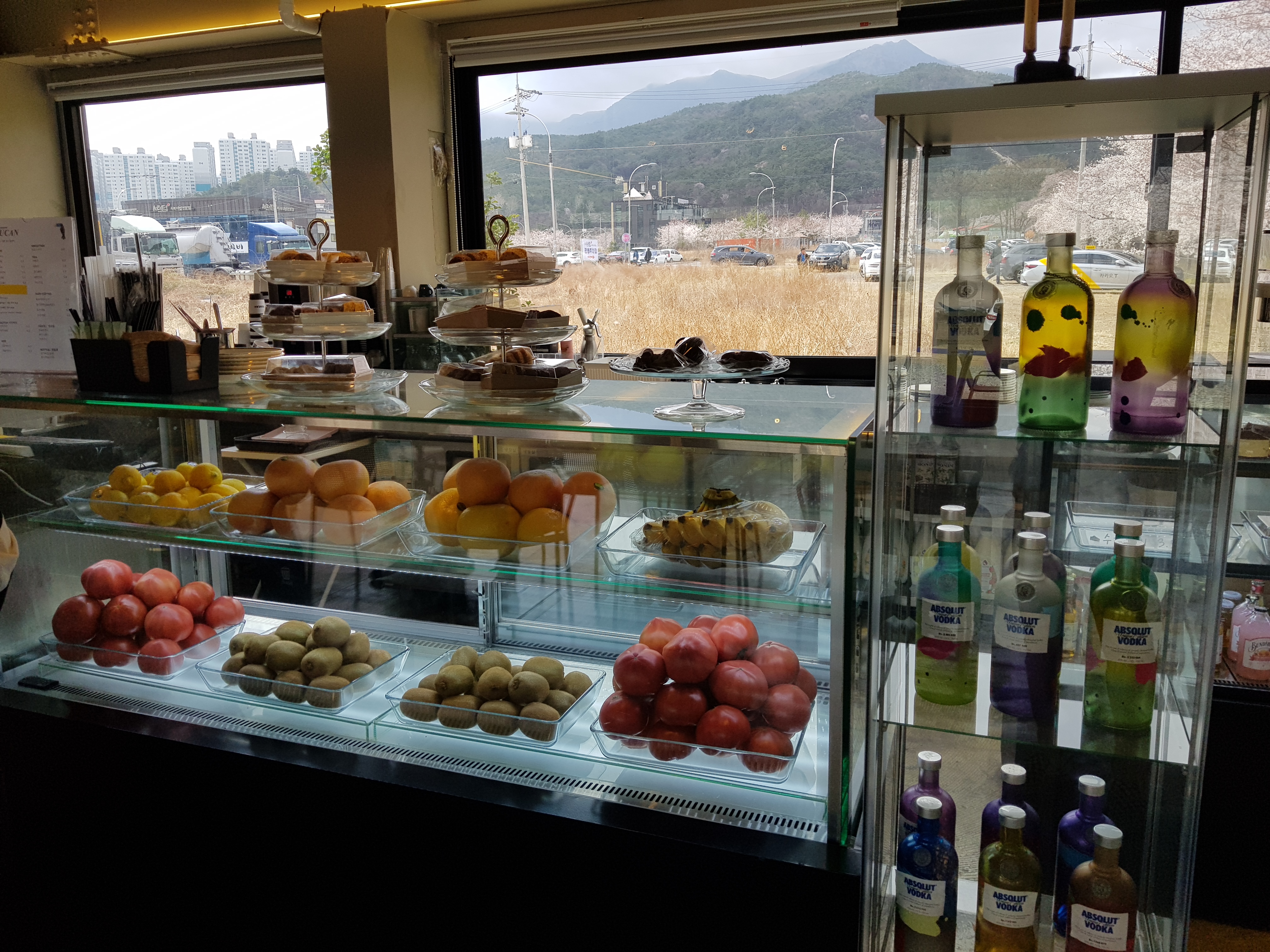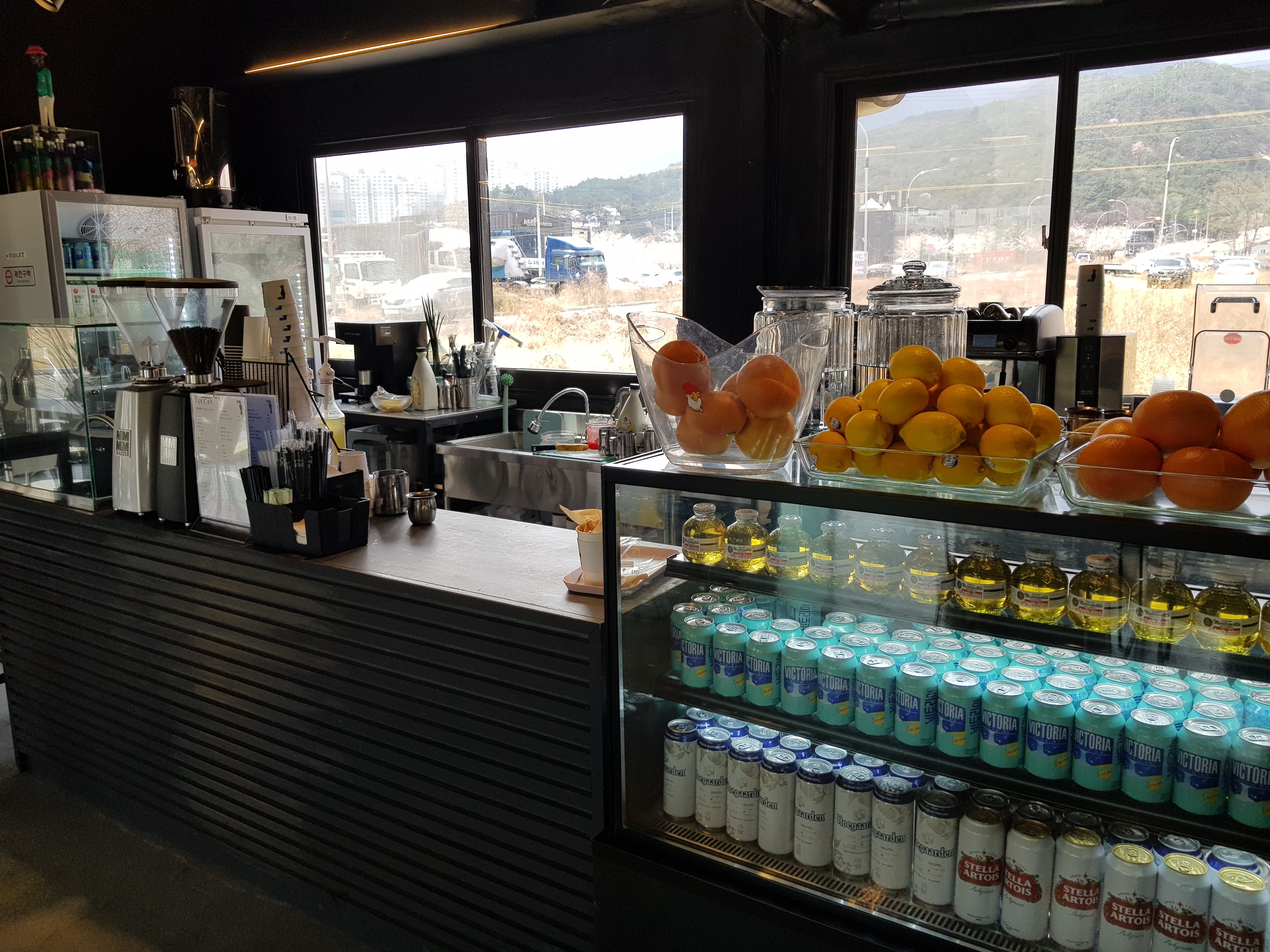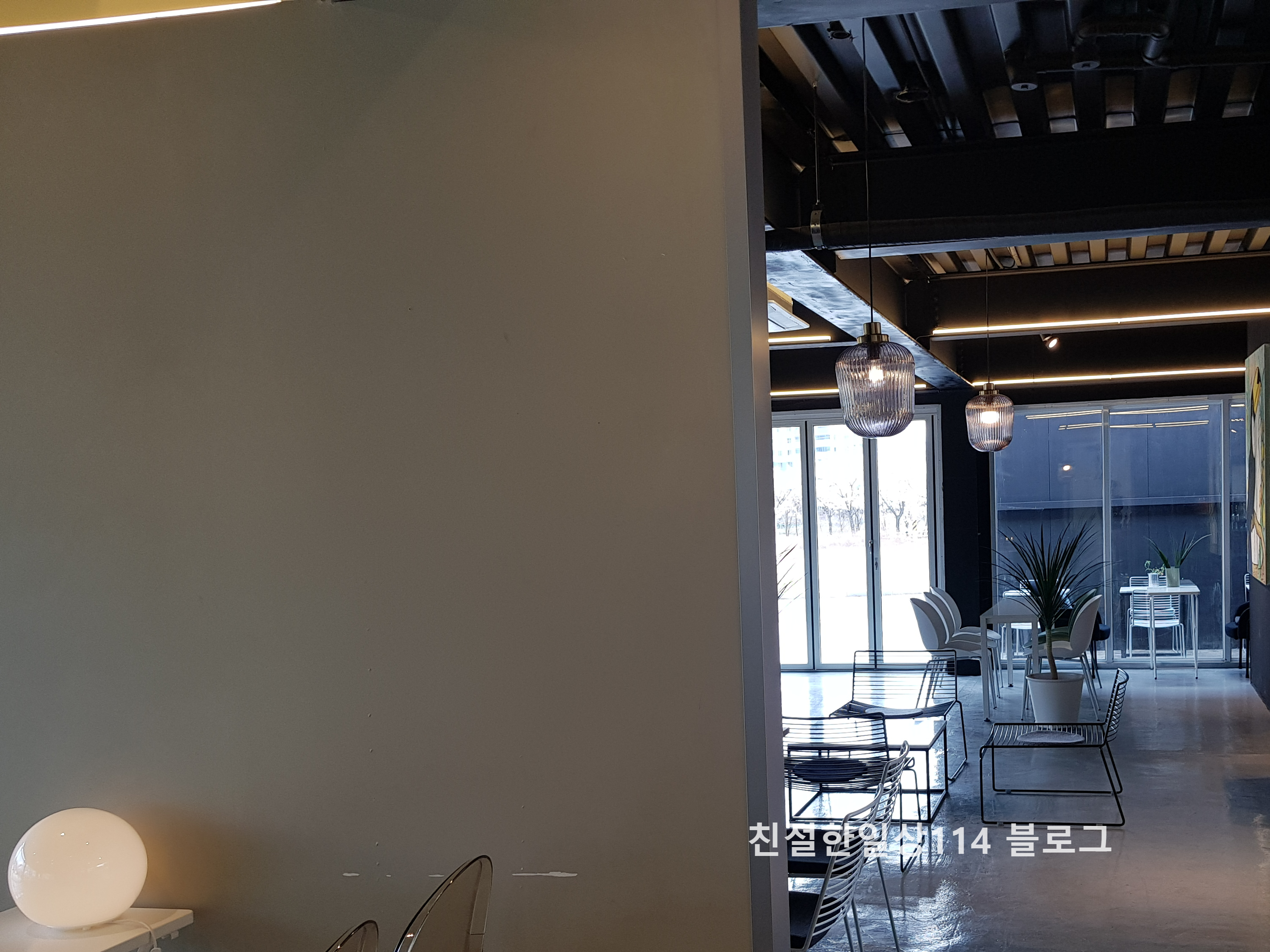 이때는 다른곳에 주차를 하고 걷는 도중에 카페에 들렸었다. 주차장으로 보이는 넓은 공간이 카페 바로 앞에 펼쳐져 있다.