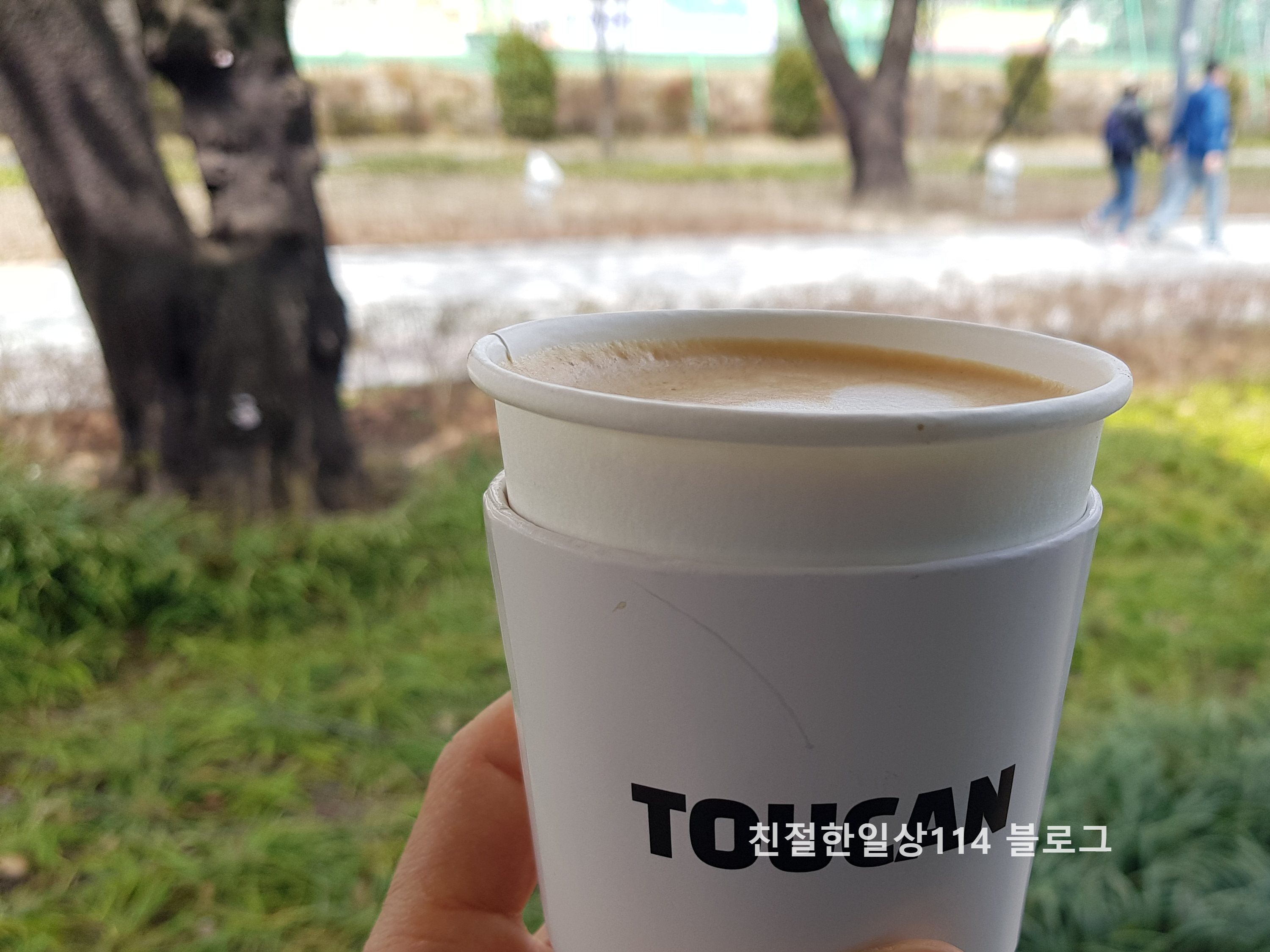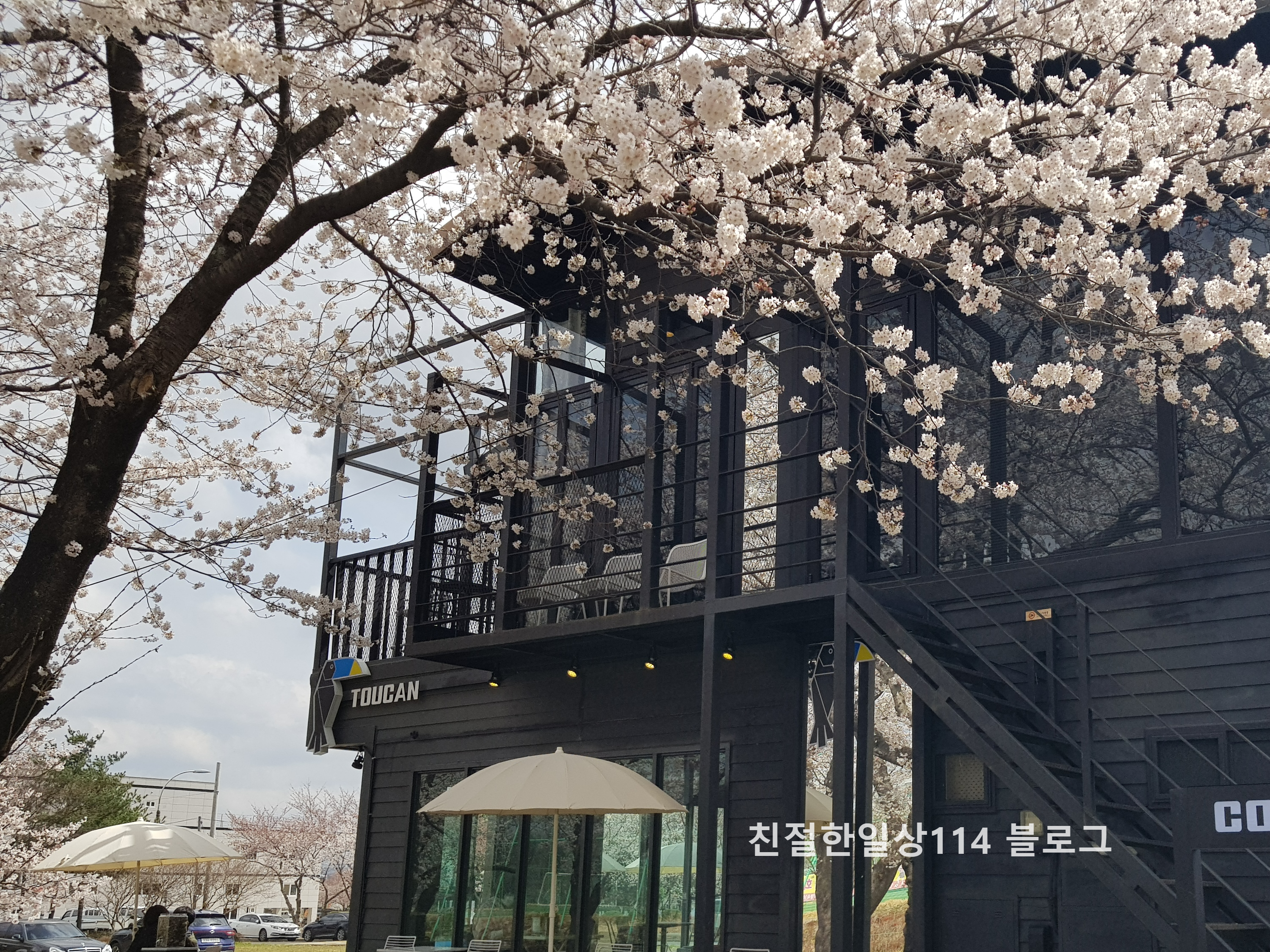벚꽃길을 기분 좋게 걸으며 이 좋은 기분에 커피가 곁들어 진다면 금상첨화일것 같다. 그런 생각이 들 때쯤하여 카페 투칸이 보여 건물로 들어갔다.