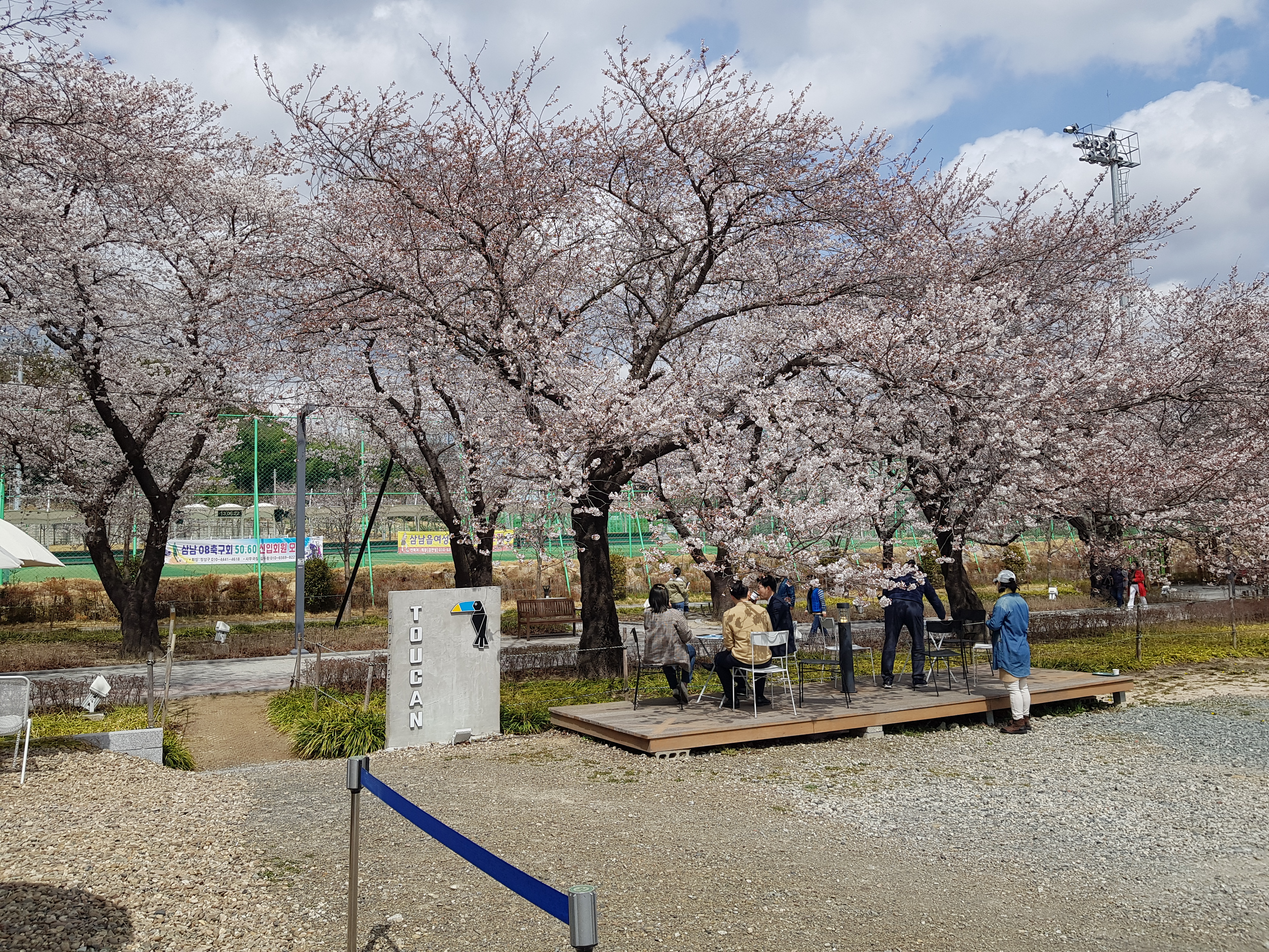 오랜된 벚나무가 만들어낸 벚꽃터널을 걸어가본다. 시원한 바람과 하늘거리는 벚꽃이 잘 어울리며 기분을 좋게 만들어 준다. 기분이 좋은 상태로 조금 걸었다 싶을 때쯤 투칸 건물을 볼 수 있다.