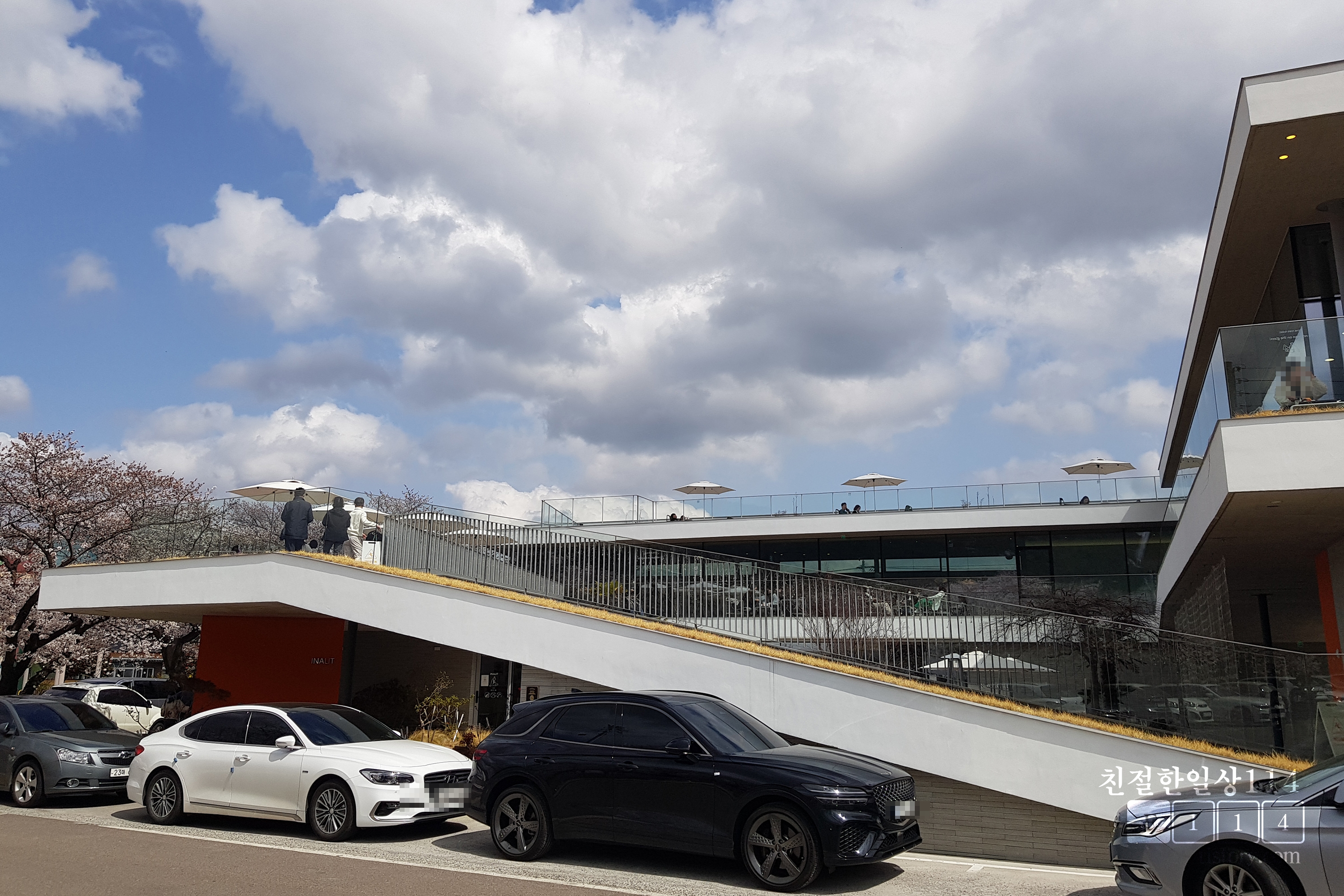벚꽃이 개화하기 전부터 작천정을 몇차례 지나다니며 이너리트의 커다란 건물과 넓은 주차장이 눈에 띄어 호기심을 자아냈었다. 그렇지만 벚꽃 구경을 하고는 작천정을 지나 등억알프스로 위쪽에 있는 카페들을 검색해 찾아다녔었다.