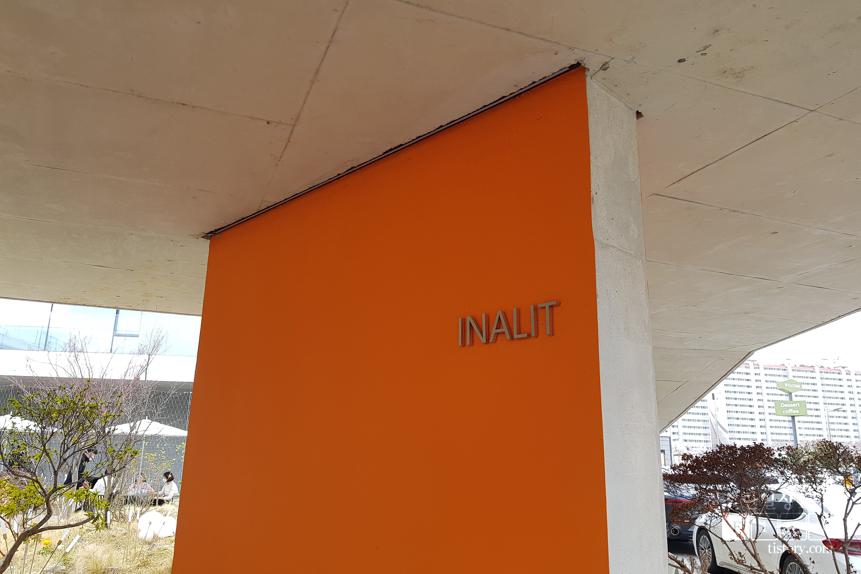 수남벚꽃길 쪽에 있는 이너리트 출입구, 그리고 색감이 좋은 벽기둥에 이너리트 이름이 새겨져 있다.