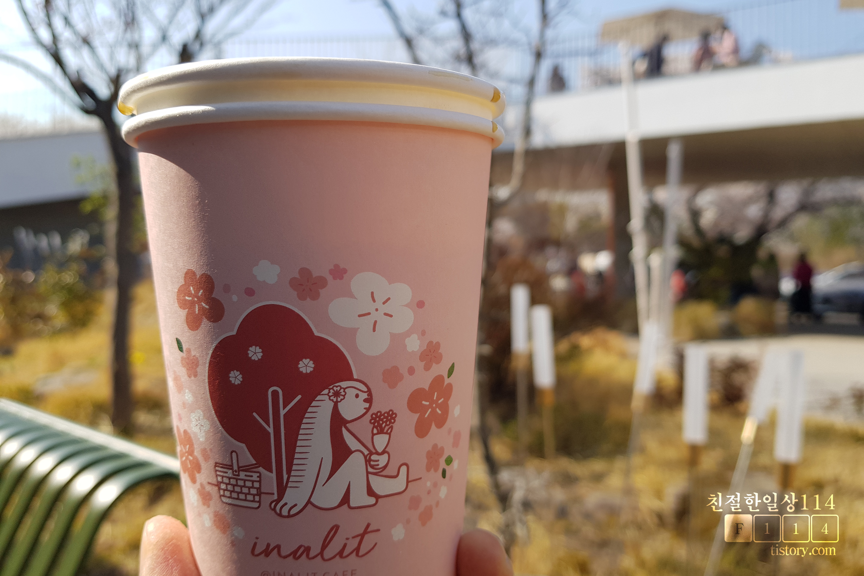 카페 이너리트에 갔을때는 주말이었다. 주말에다 벚꽃이 남아있던 시기라 손님이 정말 많았다. 주차장이 잘 되어 있어서 많은 사람에 비해 주차는 어렵지 않게 할 수 있었지만 이너리트에서 주문하고 빈 테이블을 기다리는데 시간이 걸렸다. 커피 맛은 특별한걸 느끼지 못 했지만 넓은 주차장과 넓은 건물, 그리고 벚꽃길 가까이 있다는 이점은 충분히 누릴 수 있었다. 주차하기 어려울때나 벚꽃길 가까이서 커피도 마시고자 한다면 이너리트 방문이 상당히 매리트가 있다.