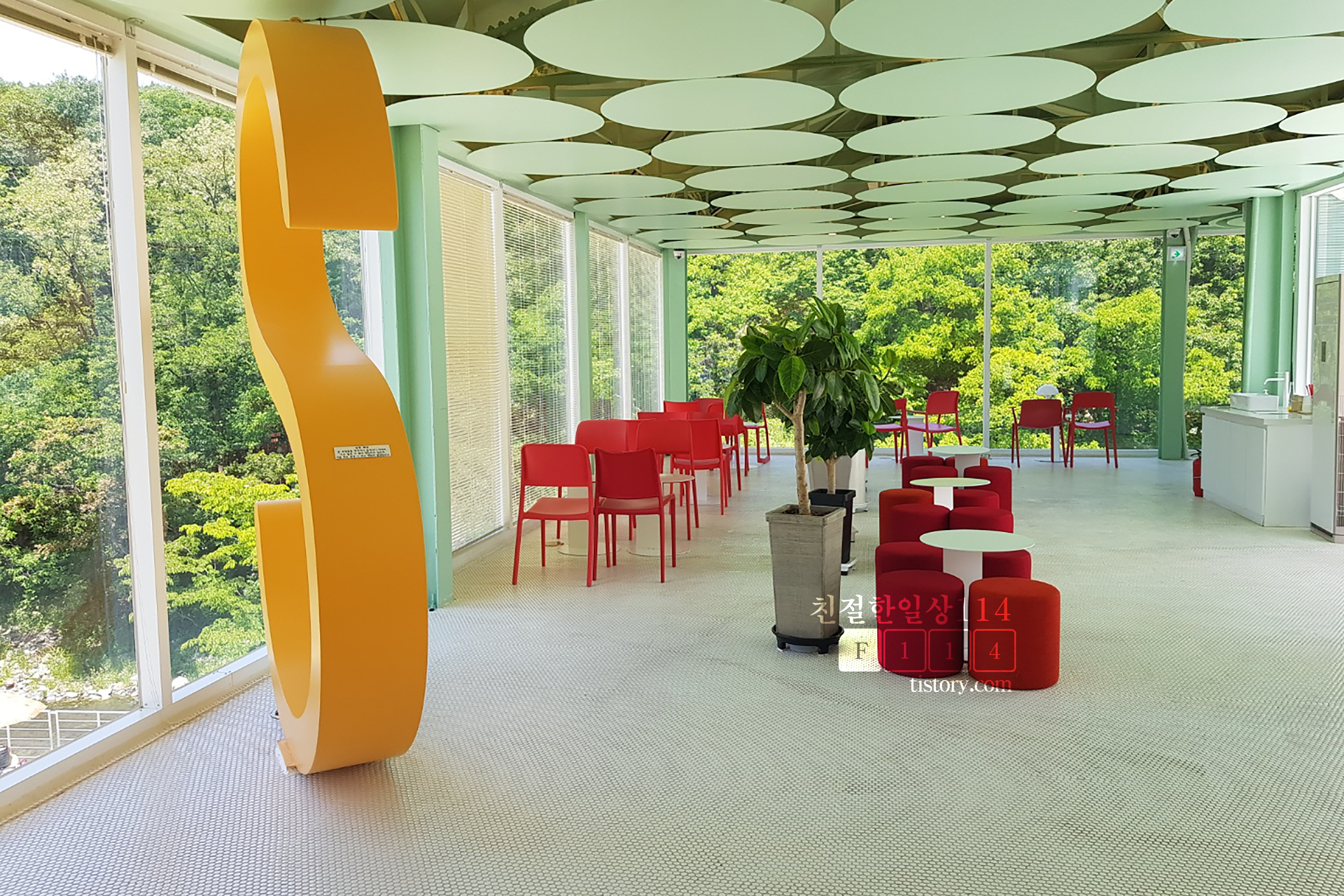 계곡쪽에는 큰 통창으로 되어있어 계곡을 시원하게 내려다 볼 수 있다.