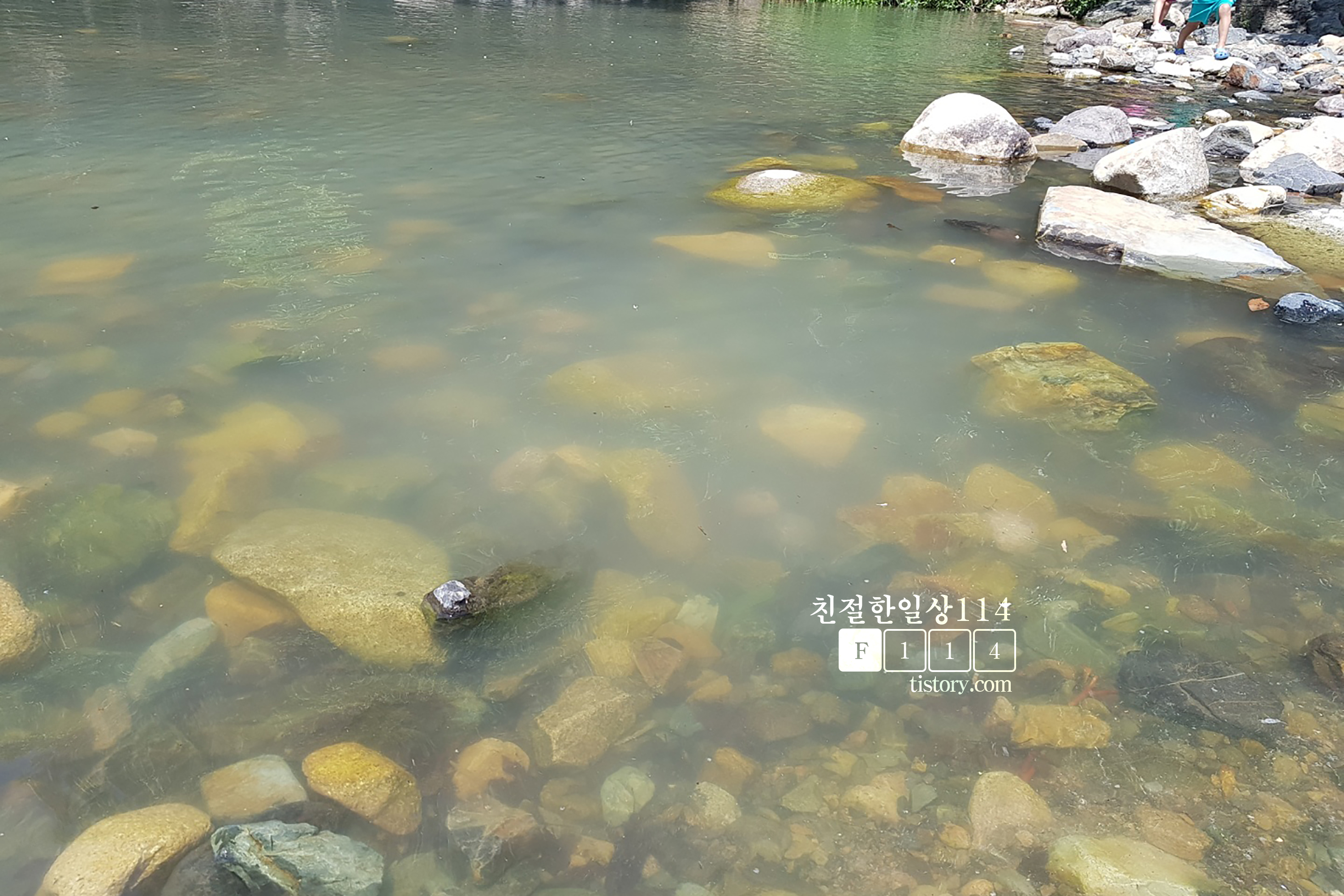 계곡 물깊이는 깊지 않아서 가장 깊은 곳이 50~60cm 정되 될 듯 하다.