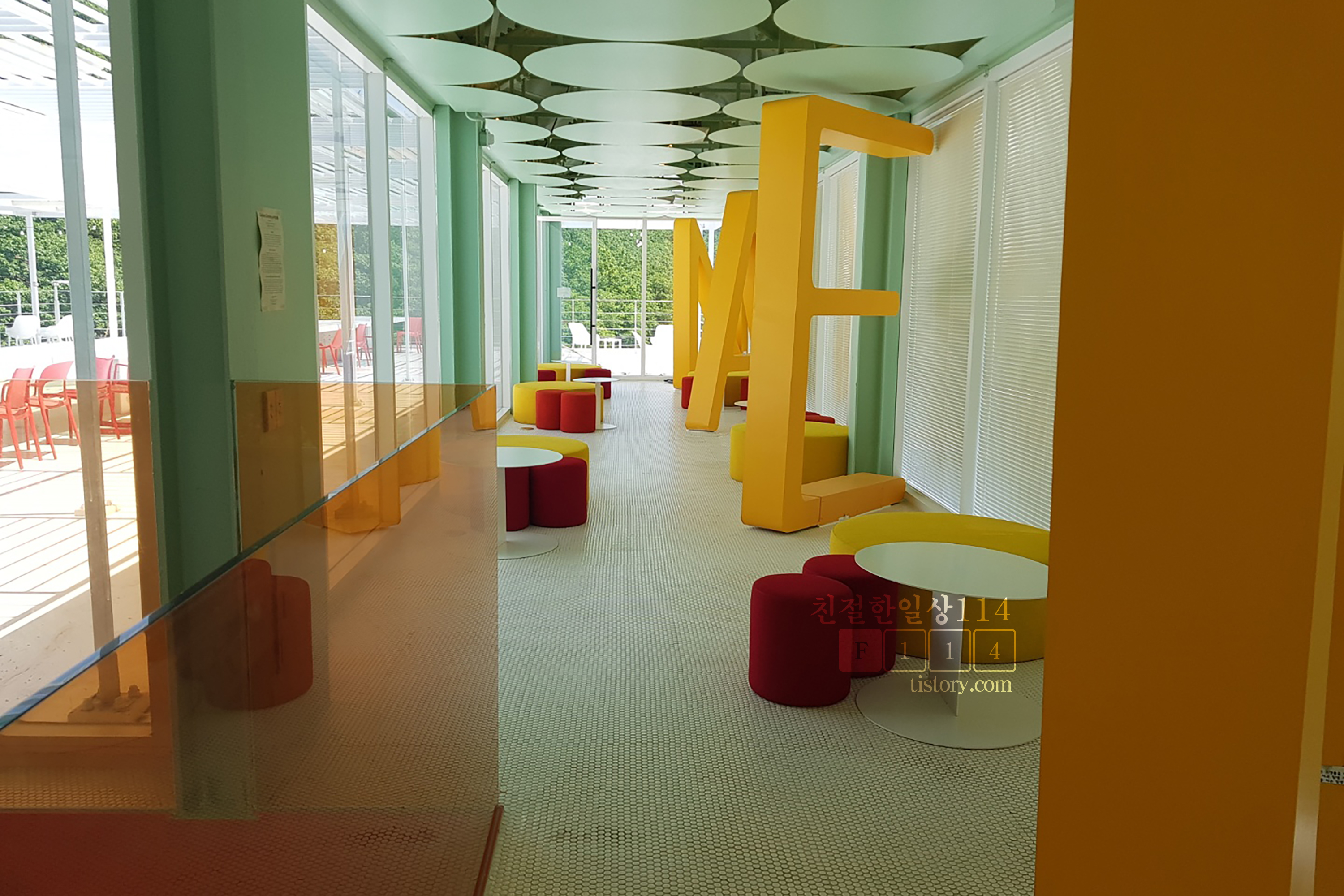 마당과 카페 통로 바깥쪽에 있는 뽑기. 2000원 ~ 5000원까지 있다. 어린이 뽑기 치고 가격이 비싼편이다. 카페에서 판매되는 먹을거리와 유료 즐길거리는 조금 비싼듯 하다.