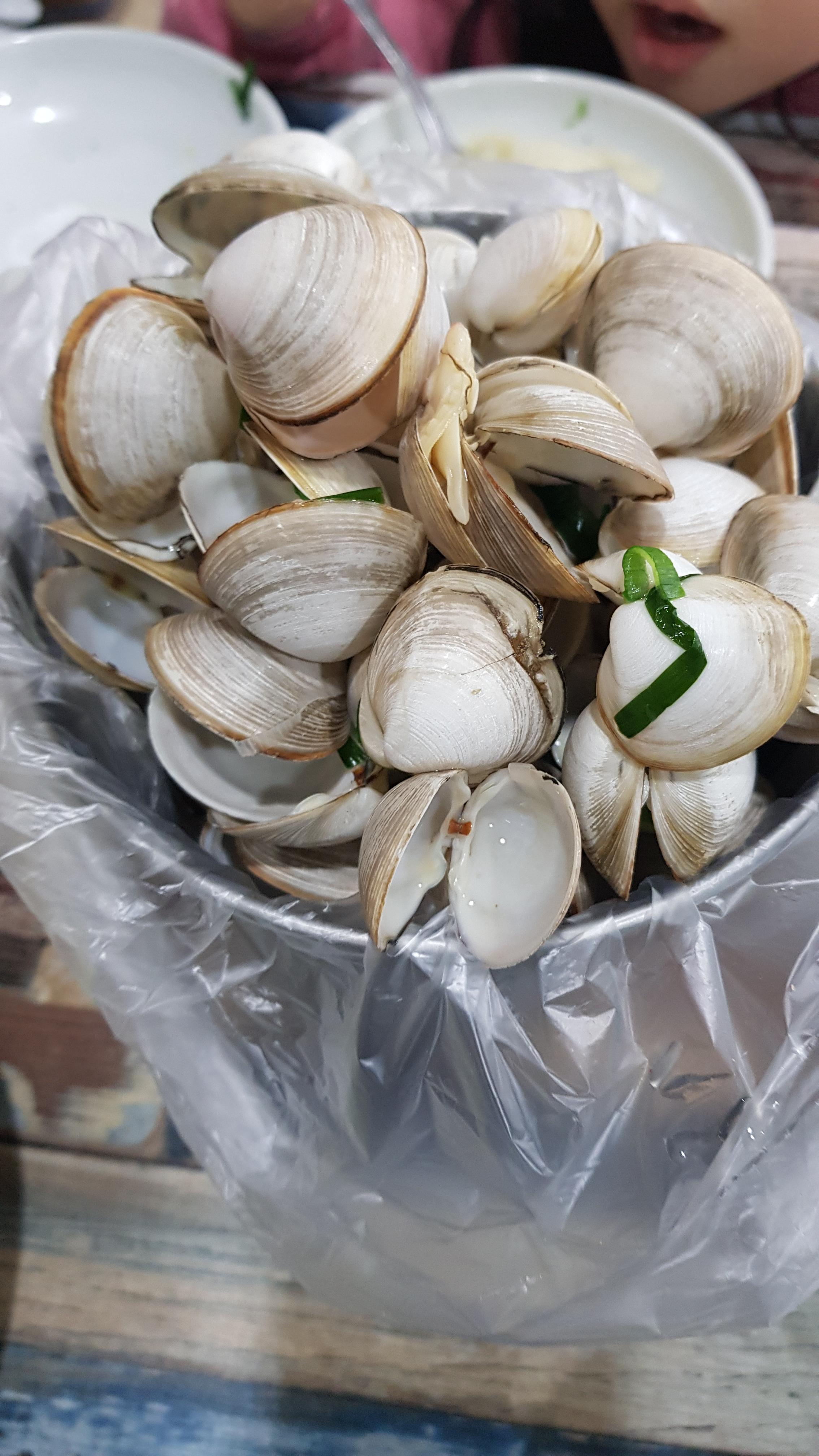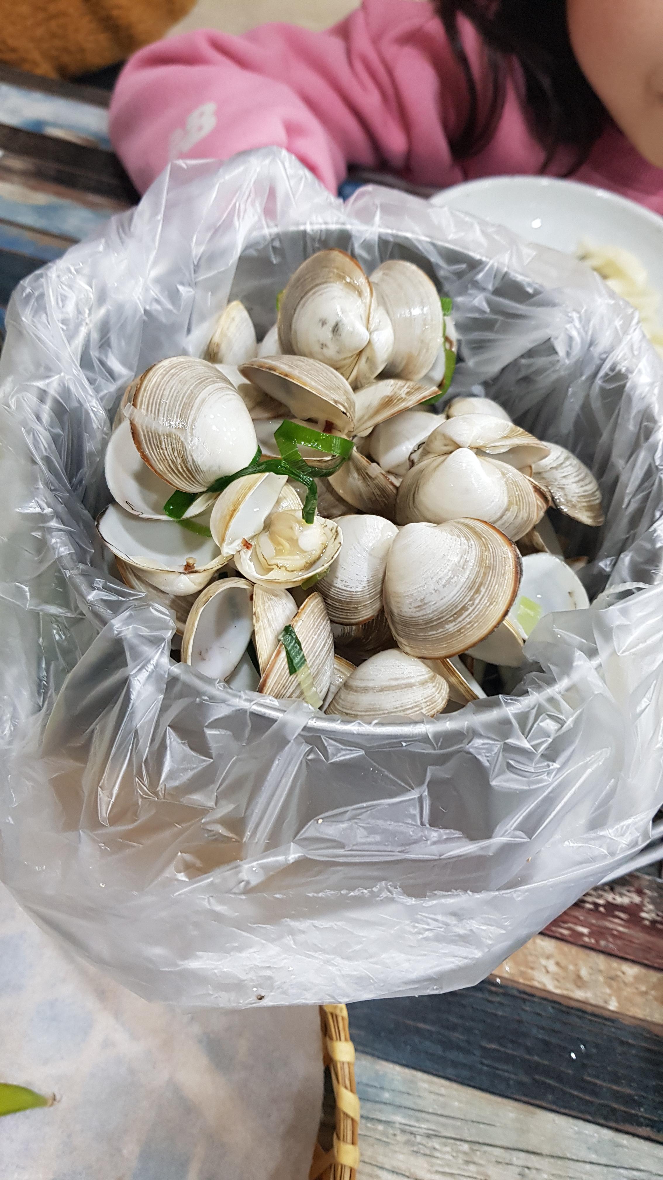 조개 살을 발라내고 먹는 도중에 찍어봤다. 먹다보면 숨어있는 조개들이 나온다.