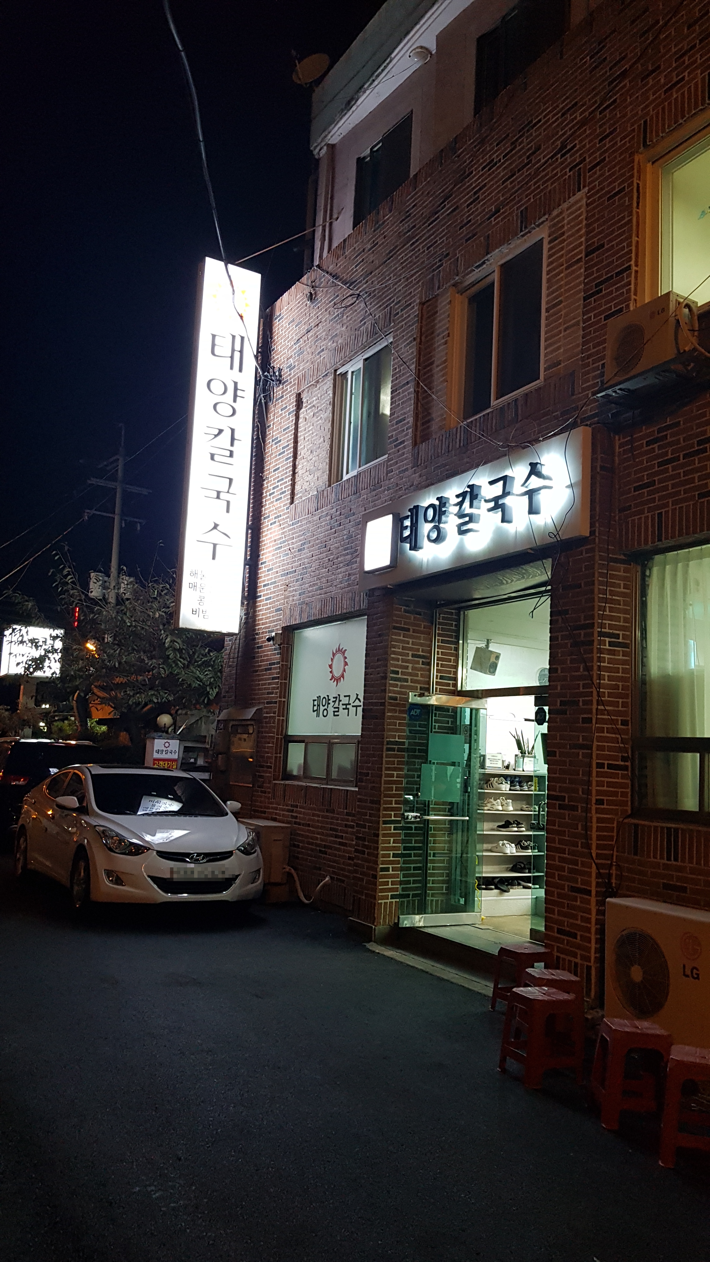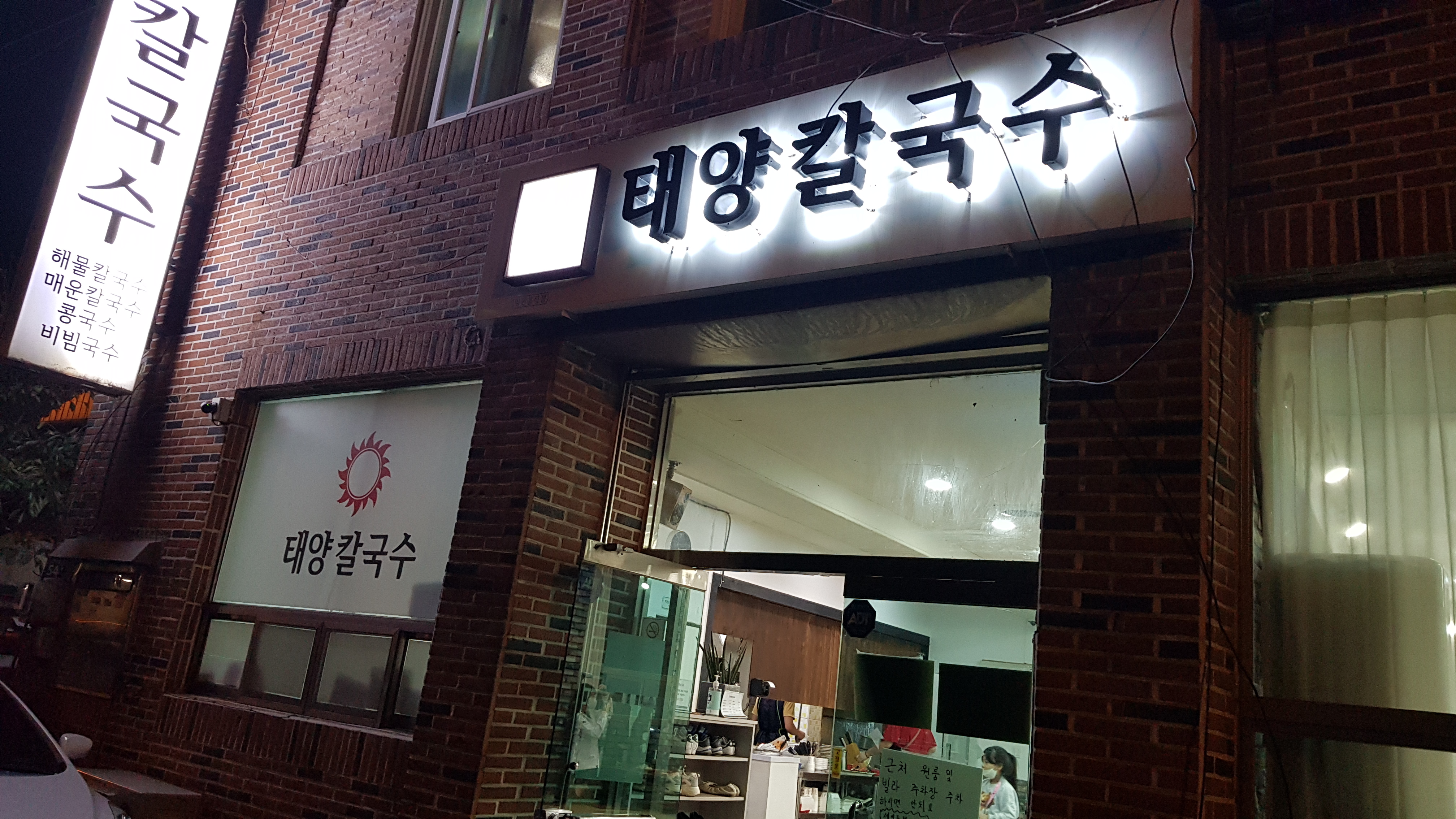 우리가 태양칼국수에 저녁을 먹어려고 방문했던 시간은 저녁 7시 30분 즈음이다. 저녁식사 시간이 지났지만 워낙 유명한 식당이라 대기가 길지 않을까 걱정했었다. 태양칼국수는 이번이 재재방문으로 3번째인데 예전 낮에 왔을때는 대기하며 30분 기다렸던 경험이 있어서 이번에 걱정하면서 식당에 가면서도 대기 줄이 길면 다른 곳에 갈 생각으로 들렸었다.