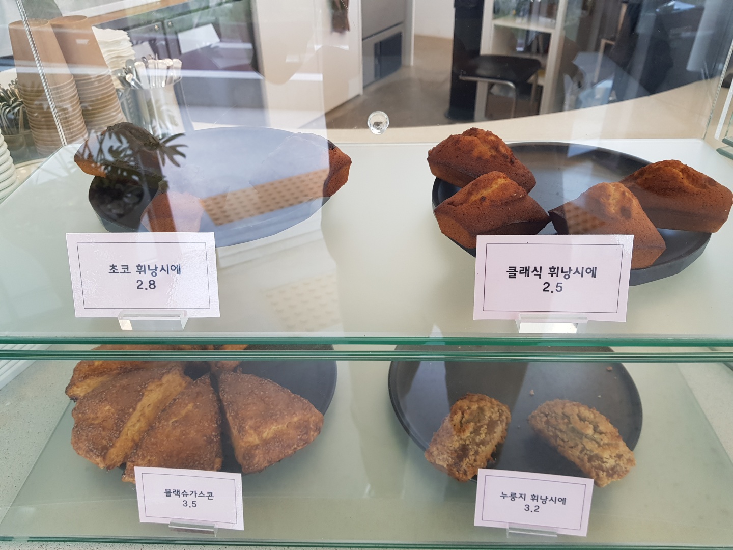 커피와 음료 외 베이커리와 쿠키류는 옆 쇼케이스에서 메뉴와 가격을 확인 할 수 있다.