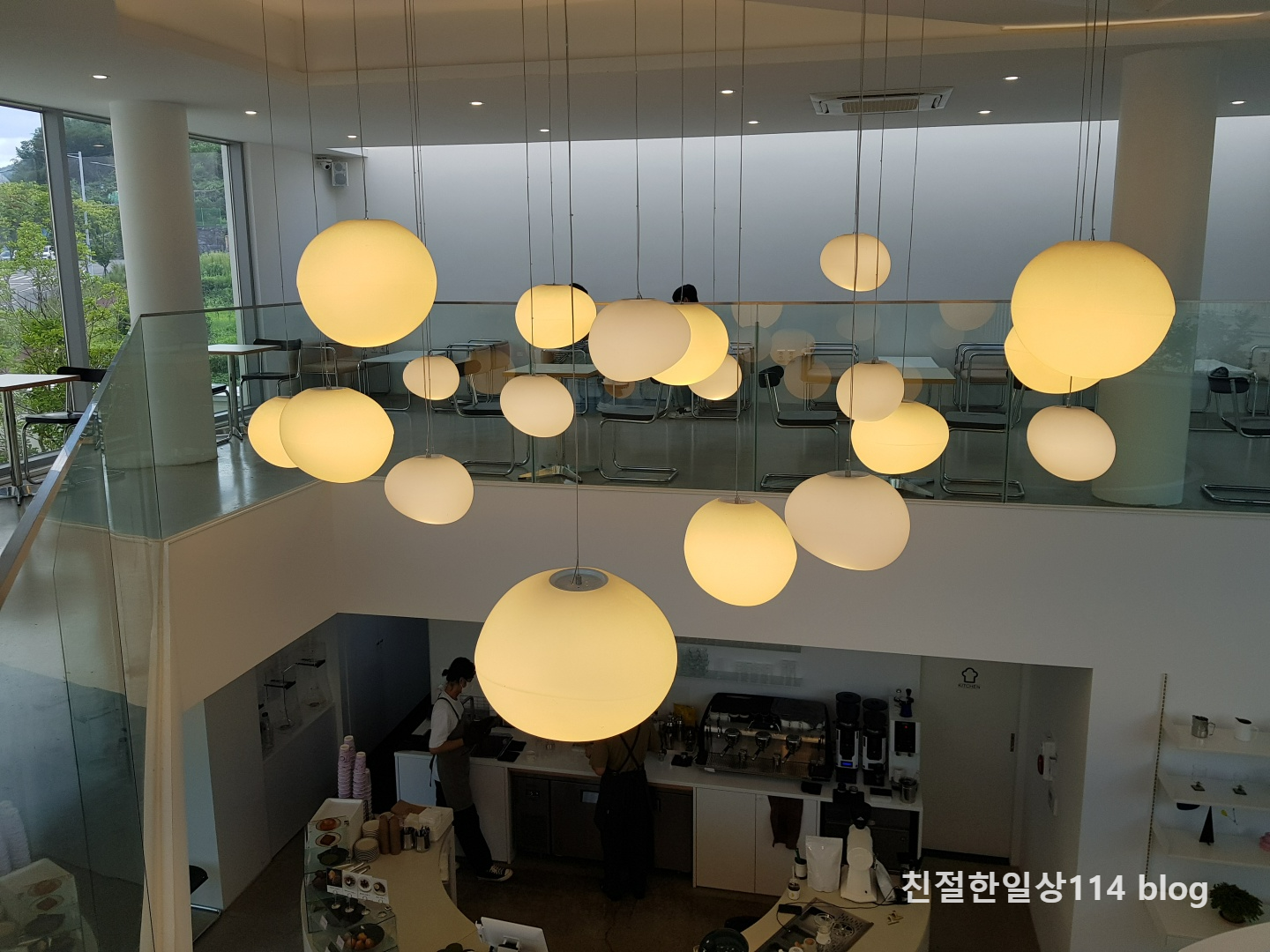 중정을 지나 카운터를 찾아내고 주문을 한다. 그리고 자리를 찾아 이층으로 올라가는 도중에 보이는 풍등 같은 조명이 보인다.